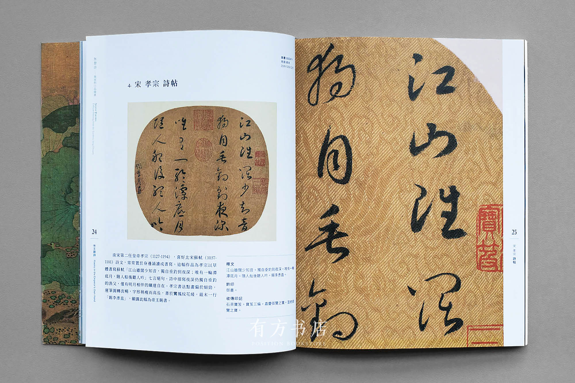 第一部分“帝王题诗”强调南宋皇室重视艺文涵养,擅长书法,熟稔诗词名作。皇帝对于诗画创作积极参与,帝王书写的诗词见于宫廷画家作品之中。