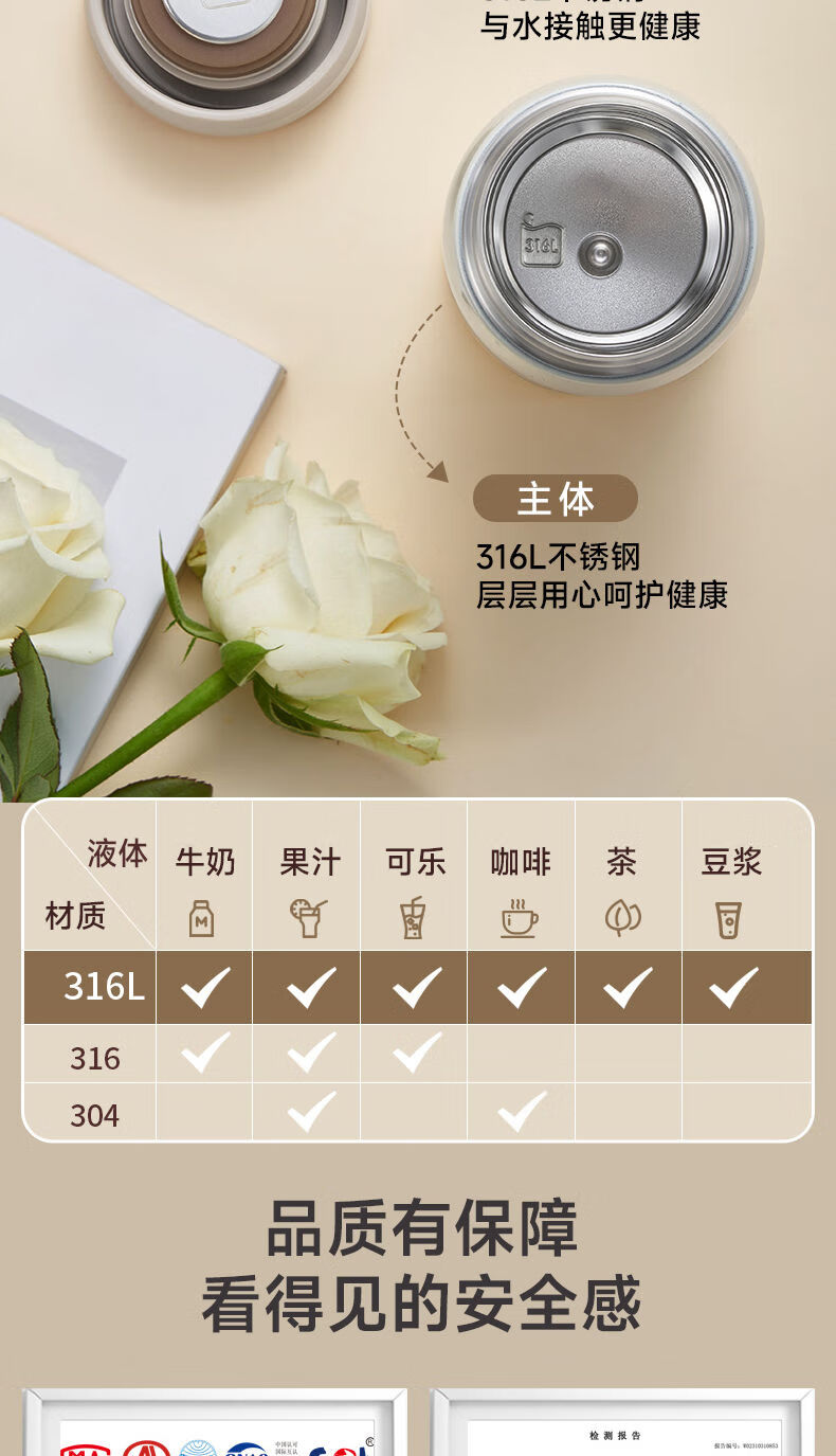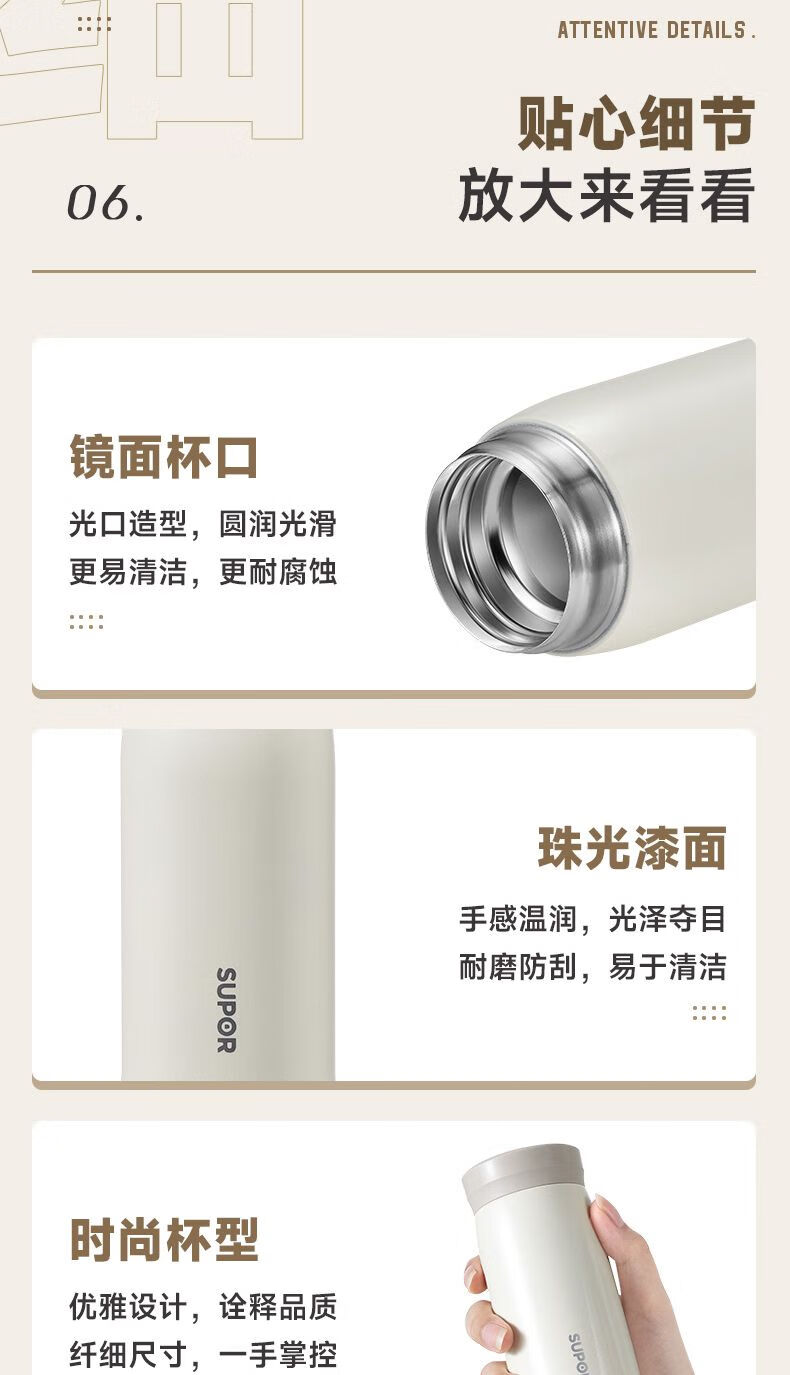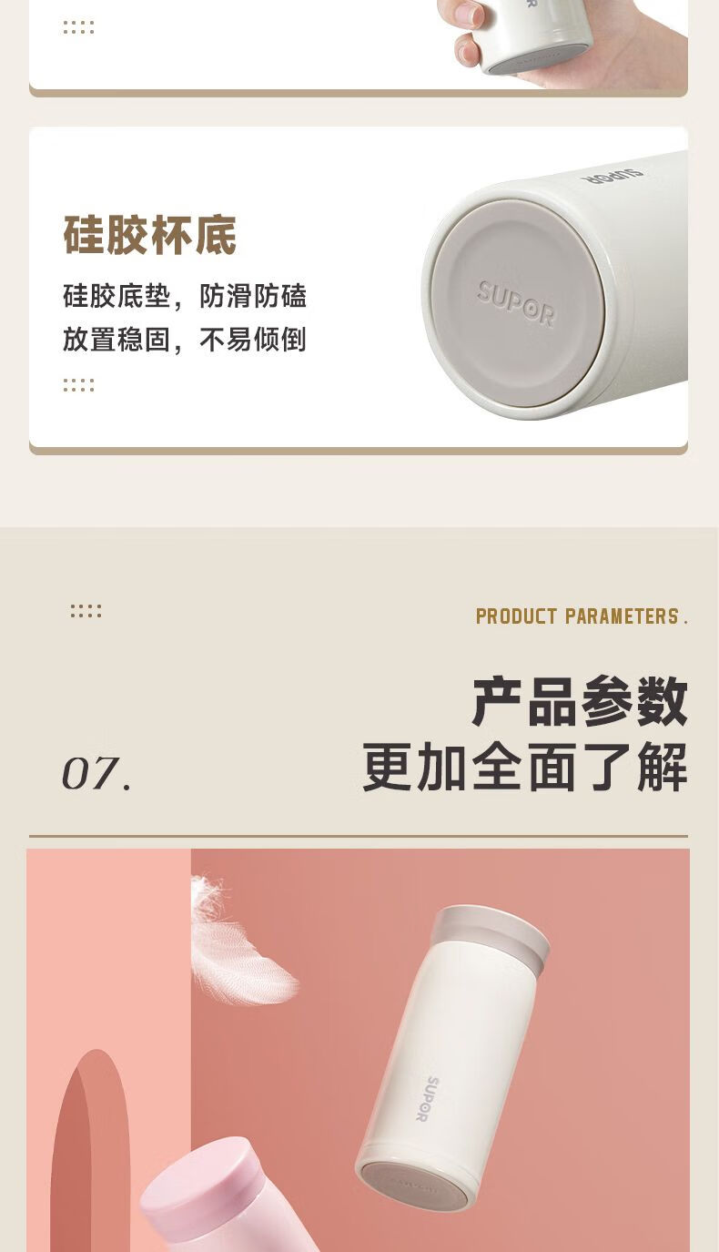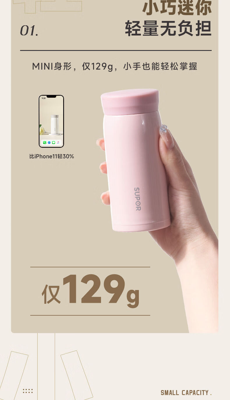 SUPOR 苏泊尔保温杯316不锈钢男女士水杯儿童杯子200ml迷你便携KCV20AK10白/粉