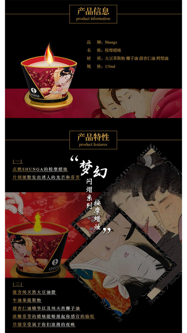 【新品来袭】加拿大SHUNGA春画 低温按摩香熏蜡烛前戏调情情趣油170ml