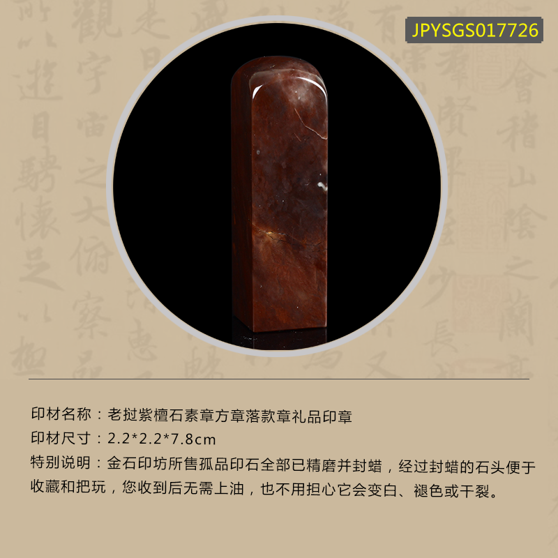 孤品17726老挝紫檀石素章方章落款章礼品印章-2.2*2.2*7.8cm