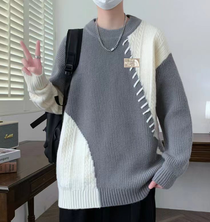 套头毛衣 超有质感的一款糕级气质撞色拼接针织衫 都市气质风格 百搭魔力效果 不会过时的及简风 软糯又舒适 复古又慵懒的味道 柔软有弹性~光泽柔和 质地jing致细腻 不扎皮肤 纯永不过时 随意搭配