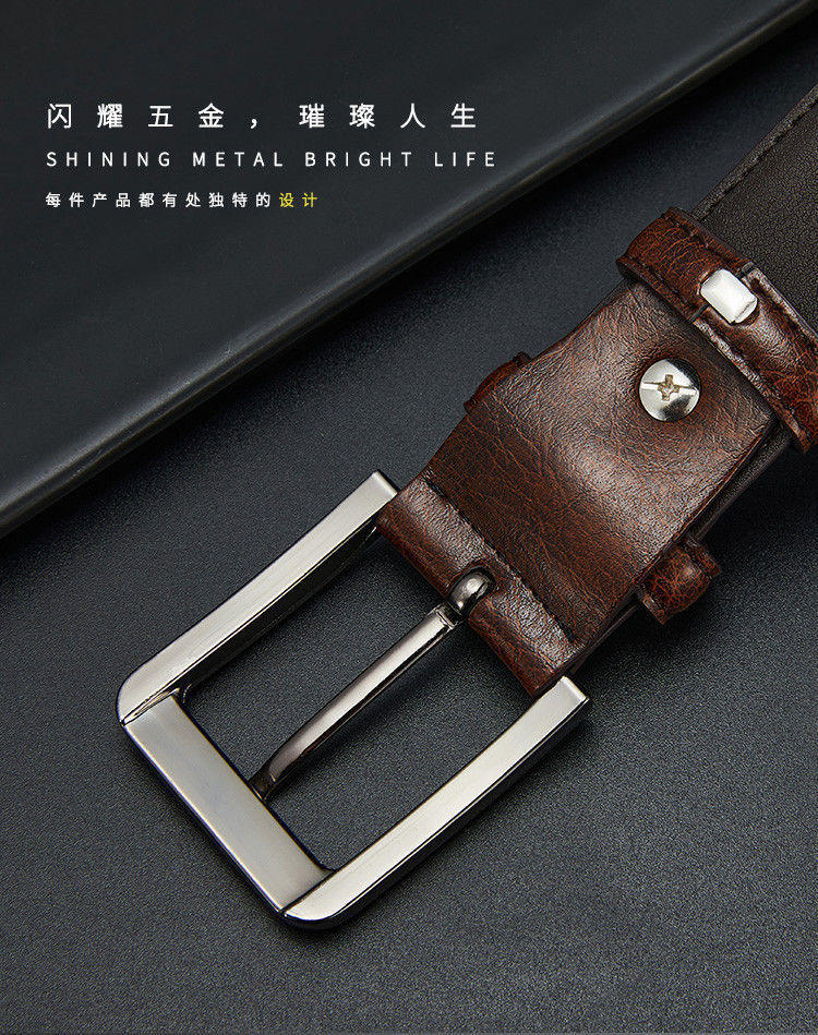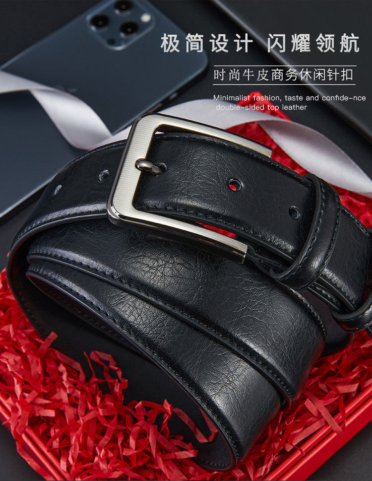 【精美礼盒❗复古真牛皮腰带】时尚牛皮商务休闲针扣,处独特的设计,闪耀五金,商务休闲男潮流百搭送男友老公爸爸父亲节礼物QQ