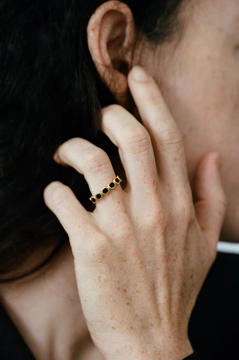ABOAB|SOLAR Ring [ 珐琅戒指 银红 / 金黑 ]【ETERNITY】