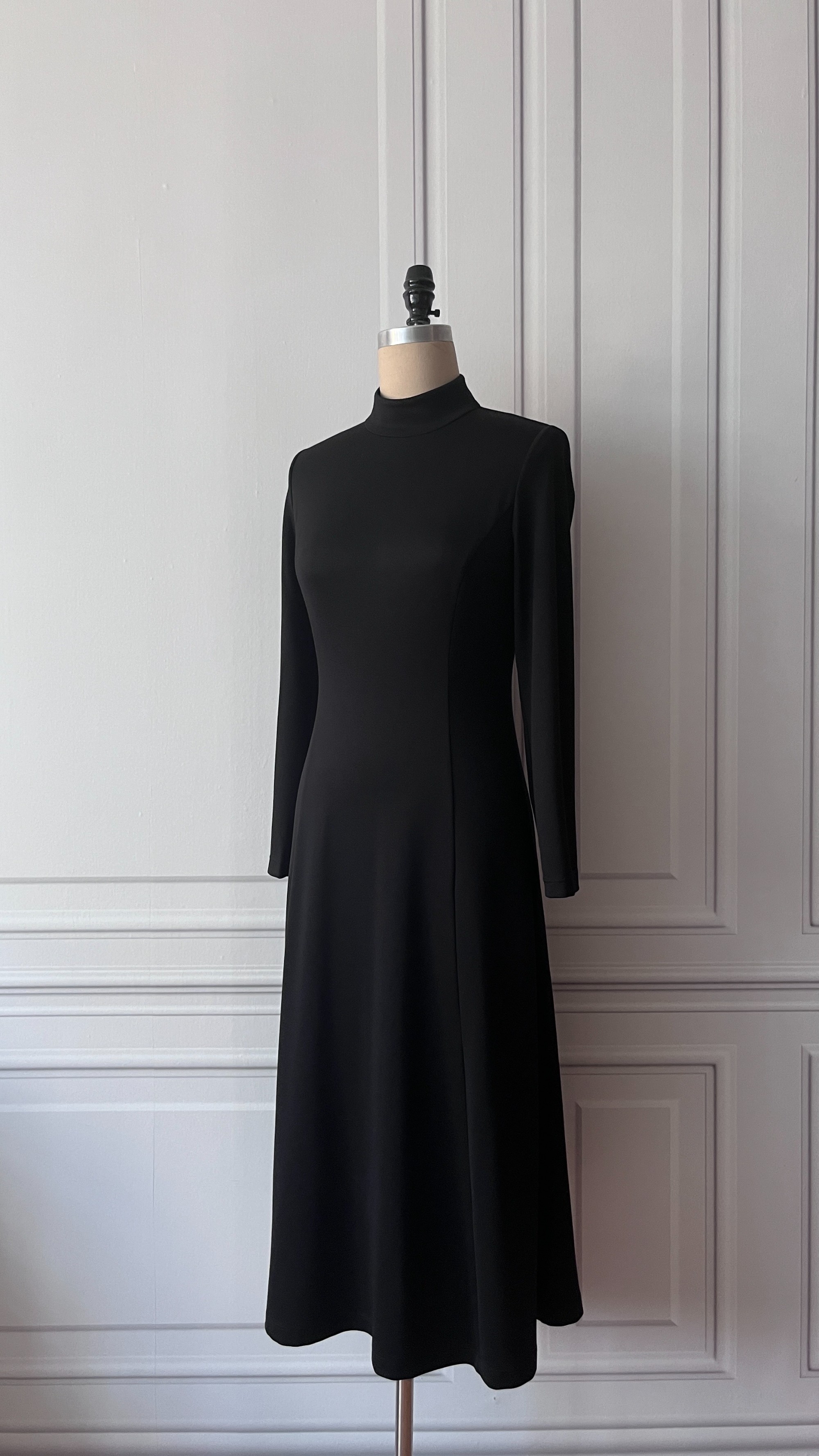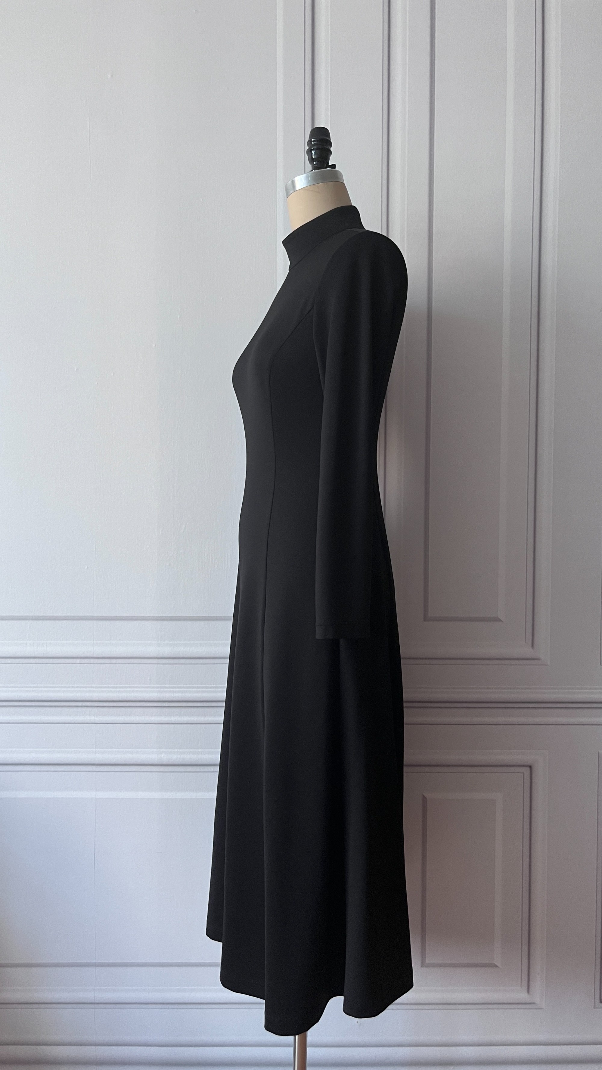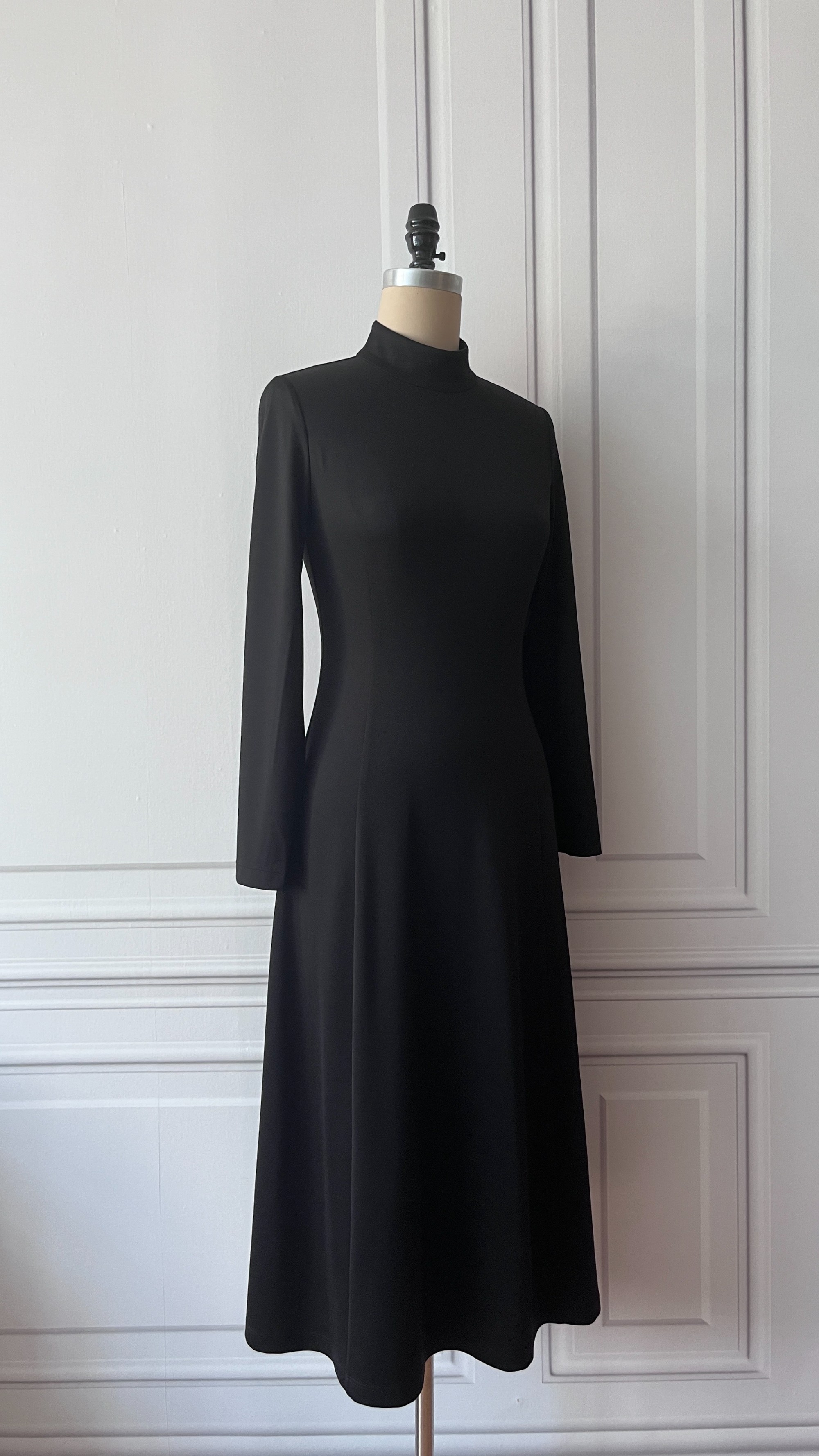 黑色圆舞曲—舒适极简半高领修身长裙 - 优雅通勤连衣裙 2201100
