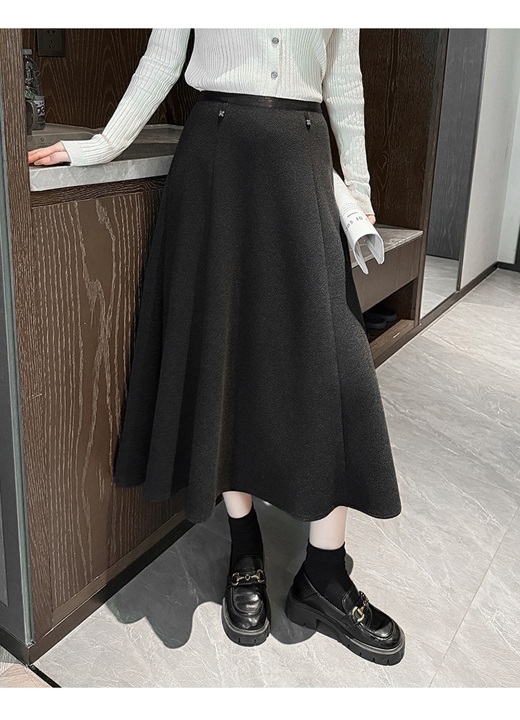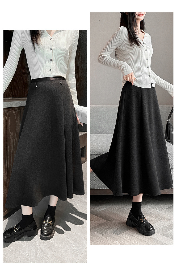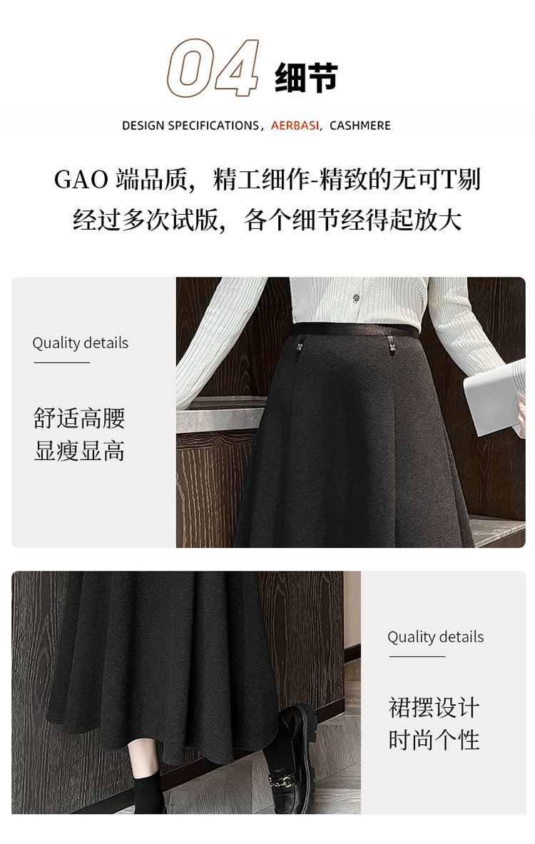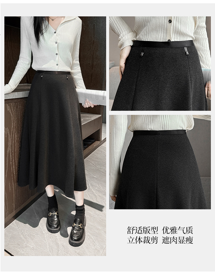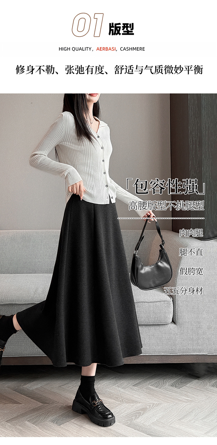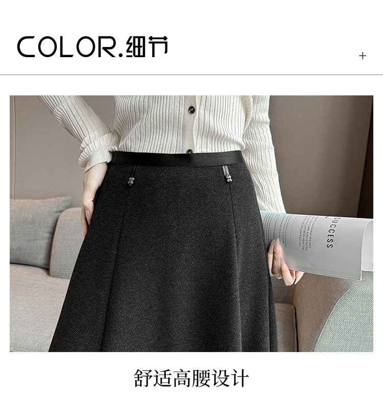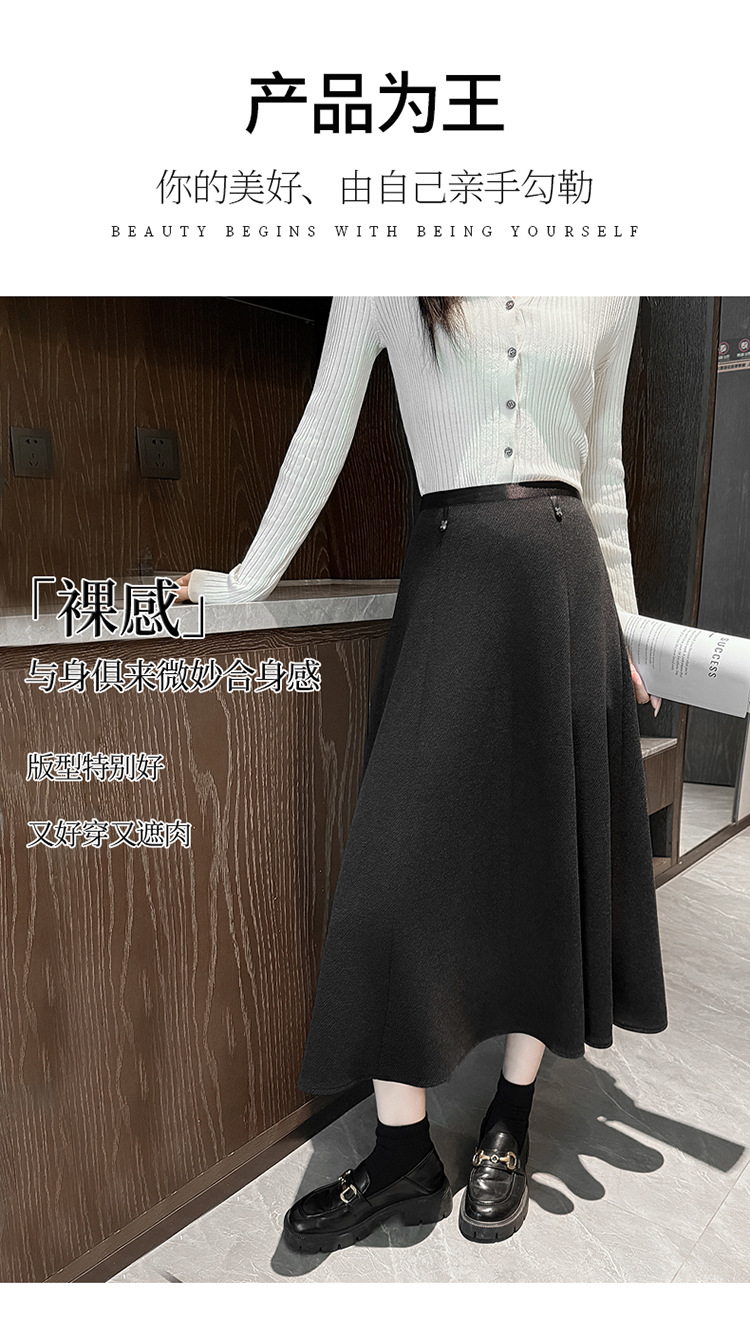 QYM M268-Y毛呢半身裙高腰A字裙厚款大摆长裙 商品图3