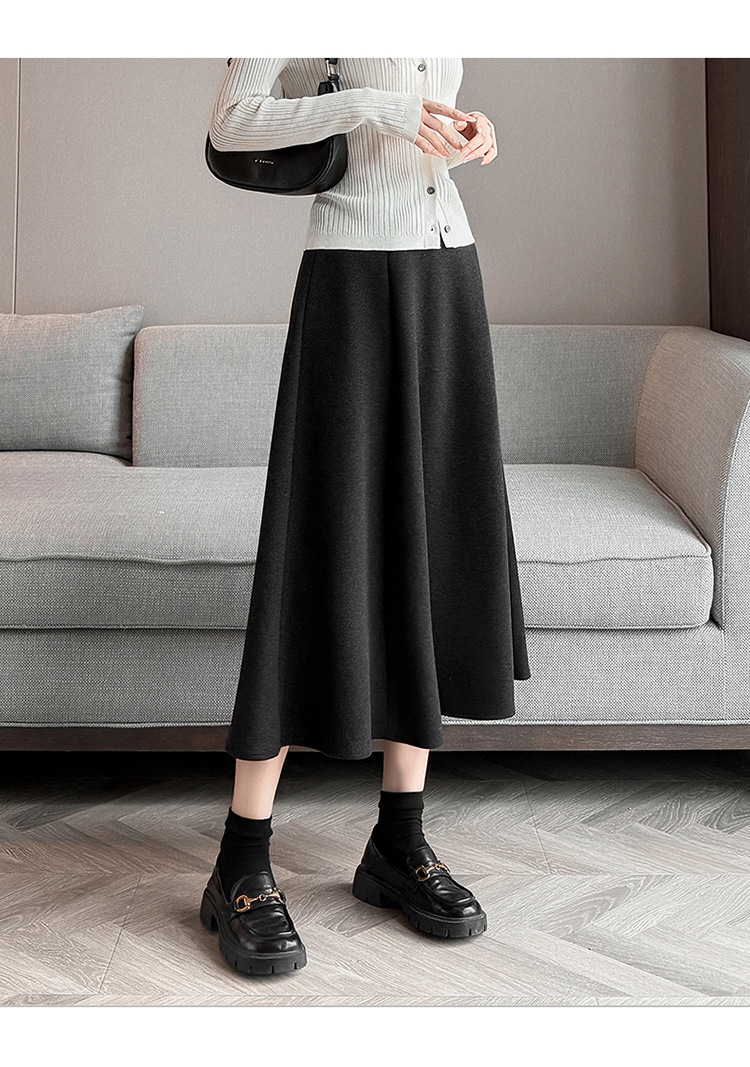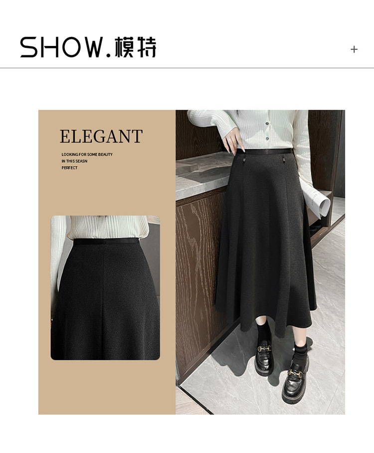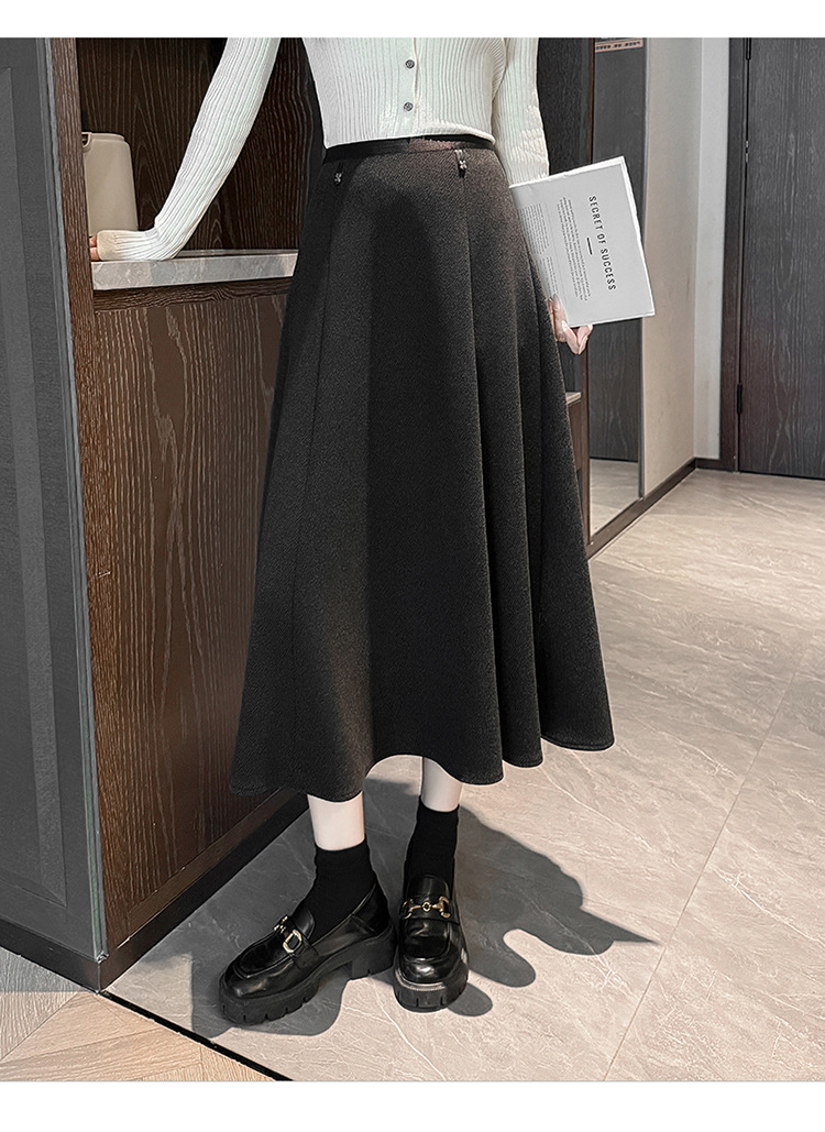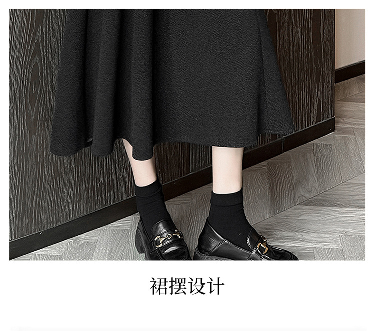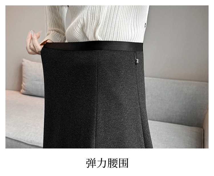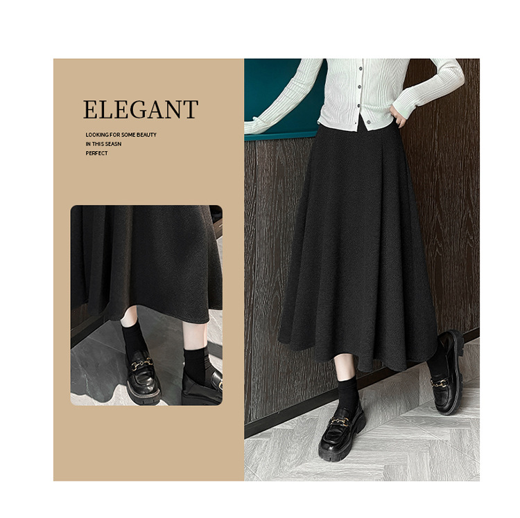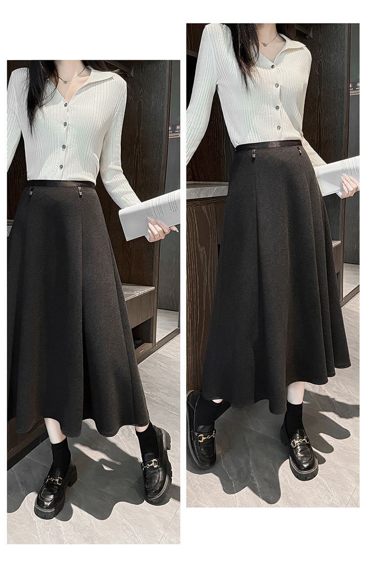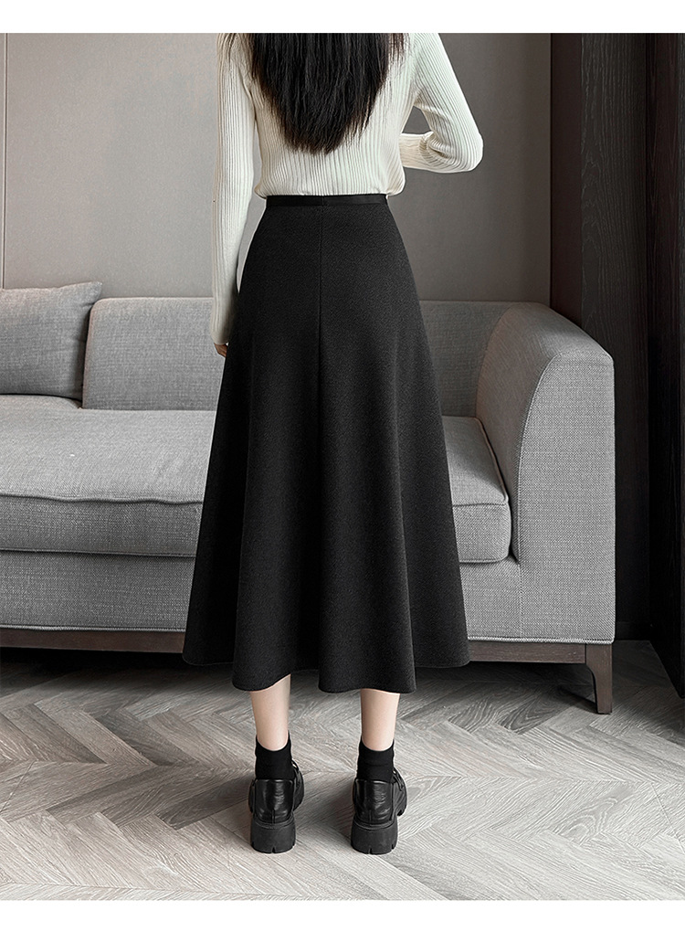 QYM M268-Y毛呢半身裙高腰A字裙厚款大摆长裙 商品图3