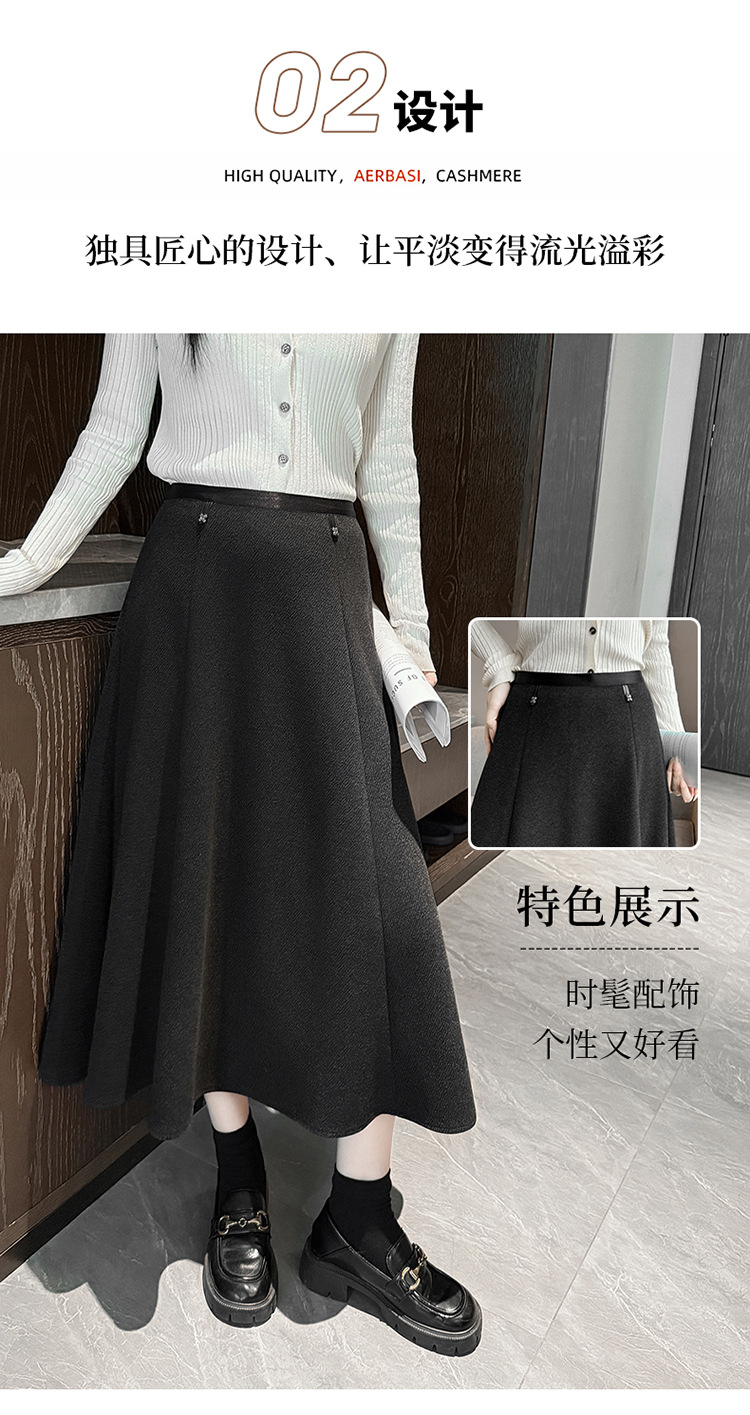 QYM M268-Y毛呢半身裙高腰A字裙厚款大摆长裙 商品图2