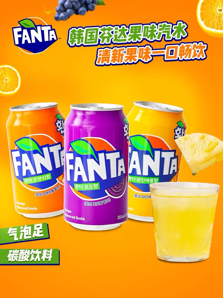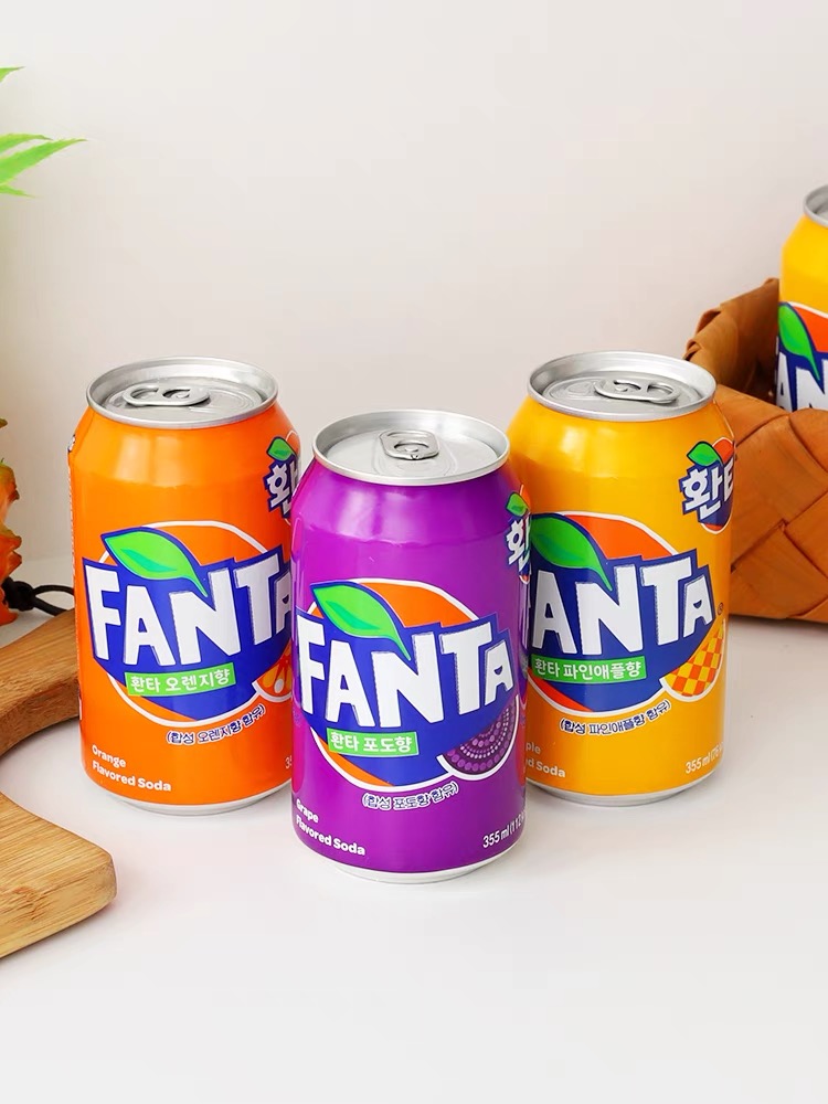 환타포도/파인애플/오렌지 355ml 芬达葡萄/菠萝/橘子碳酸饮料