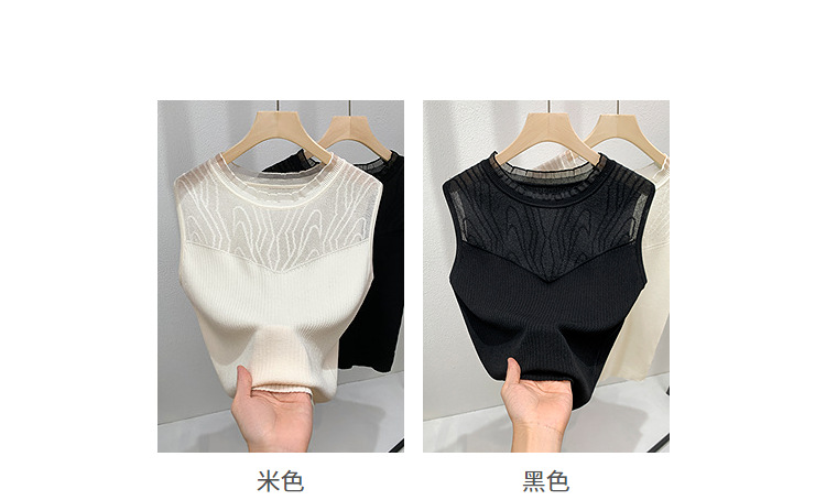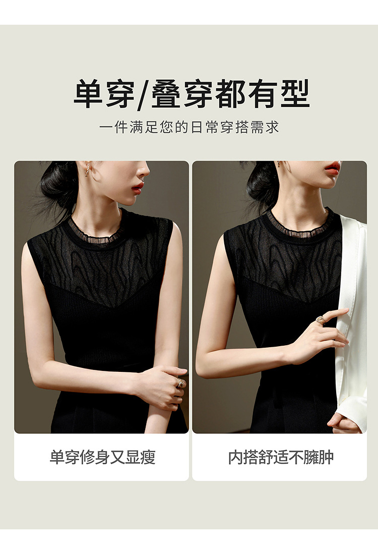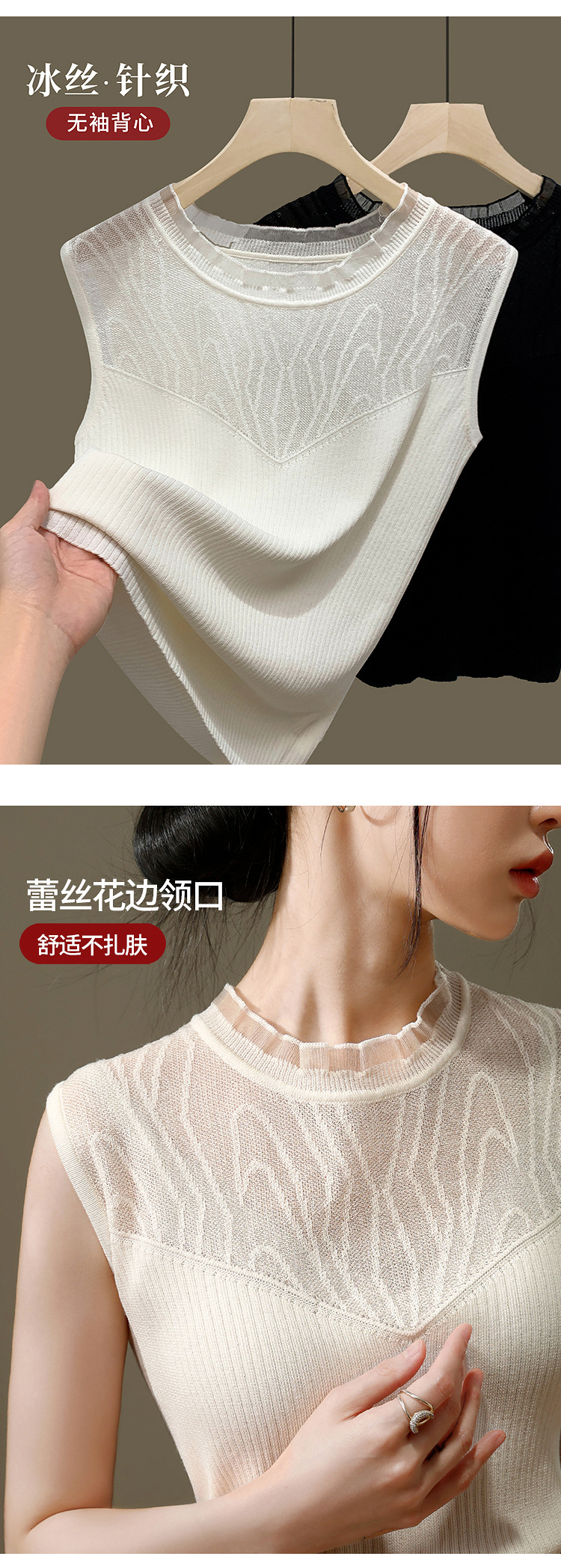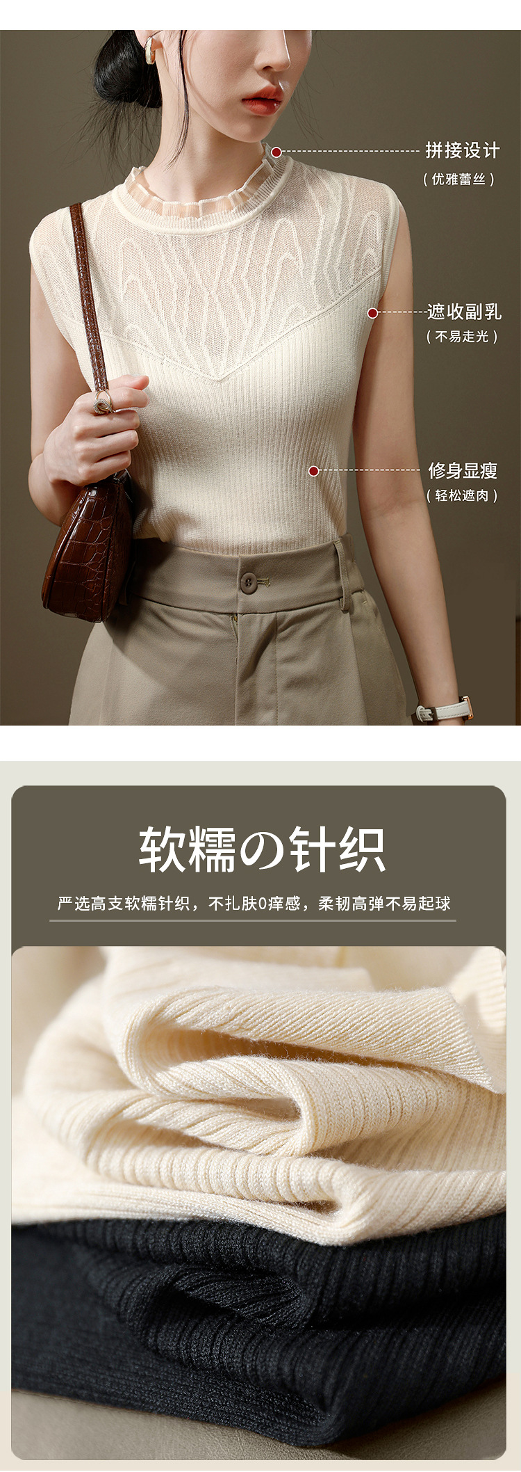 X5Q2605-CS针织背心女2025新款女装精致荷叶领拼接打底衫无袖内搭显瘦上衣