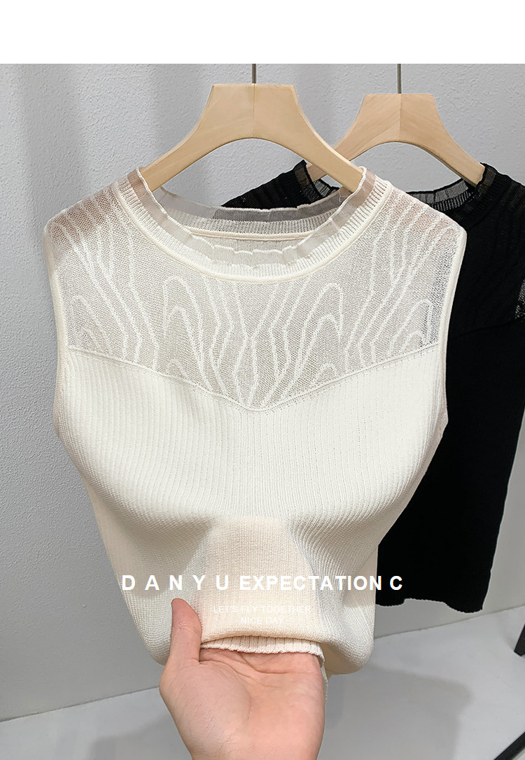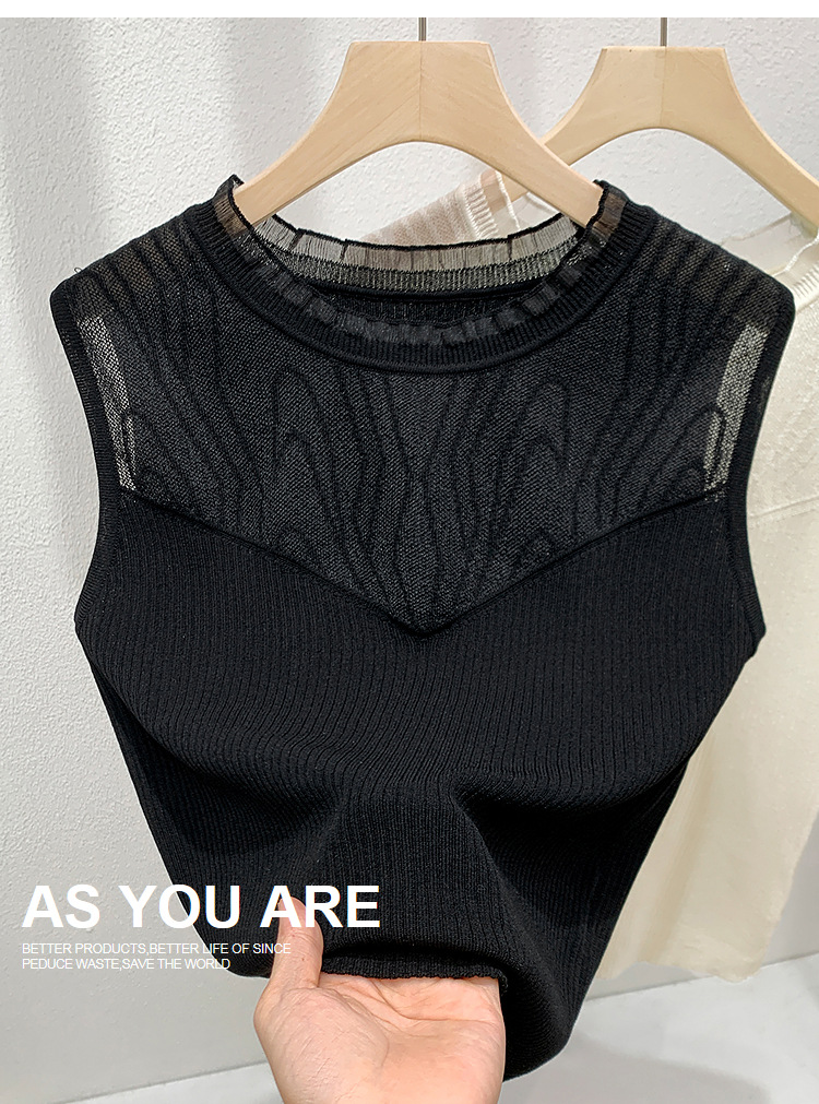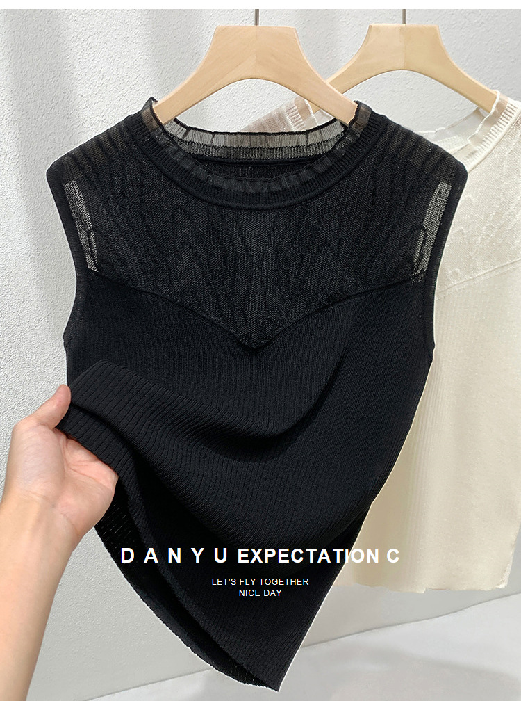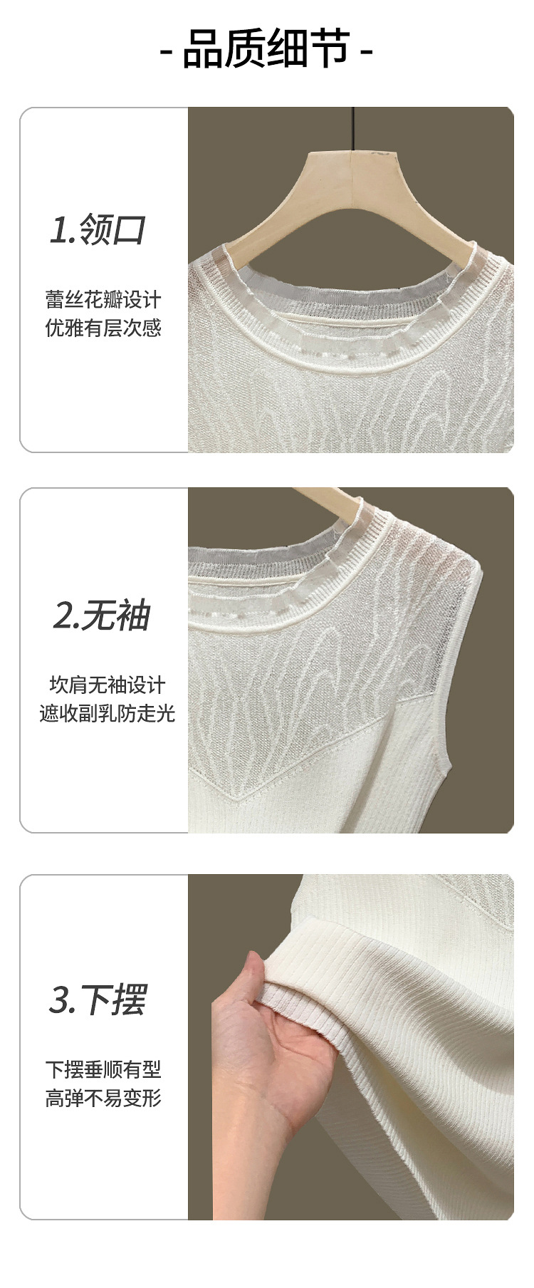X5Q2605-CS针织背心女2025新款女装精致荷叶领拼接打底衫无袖内搭显瘦上衣