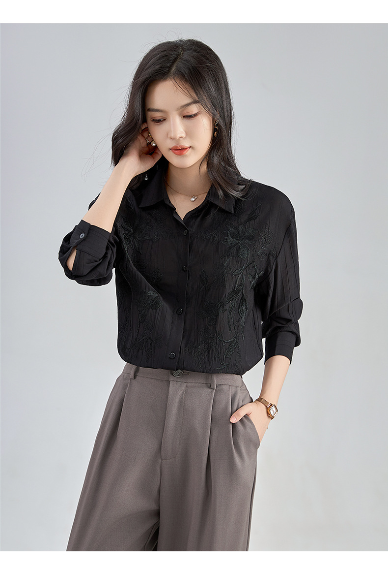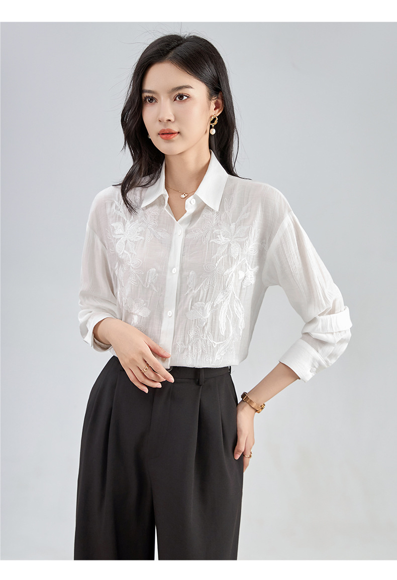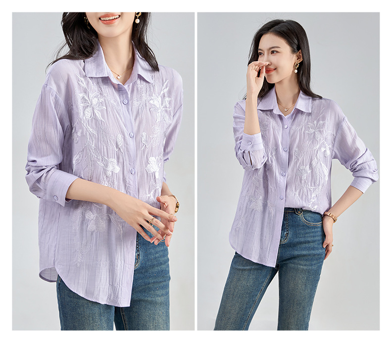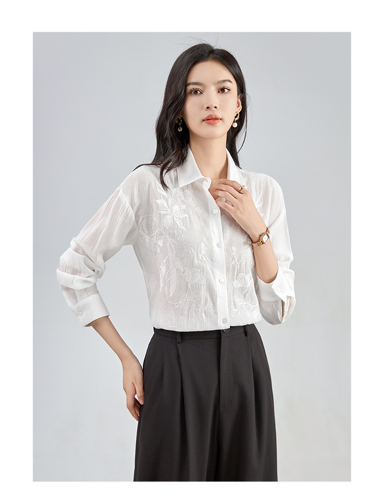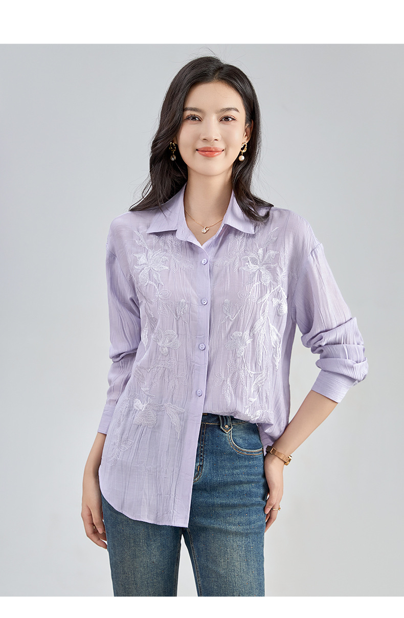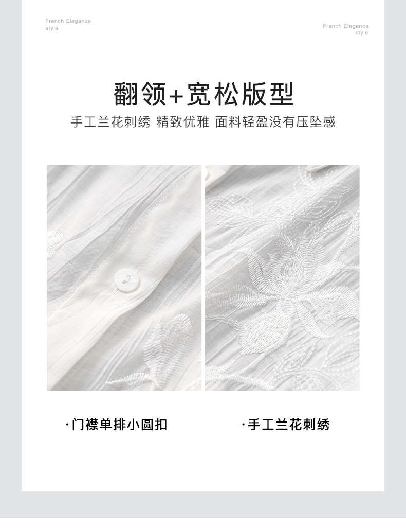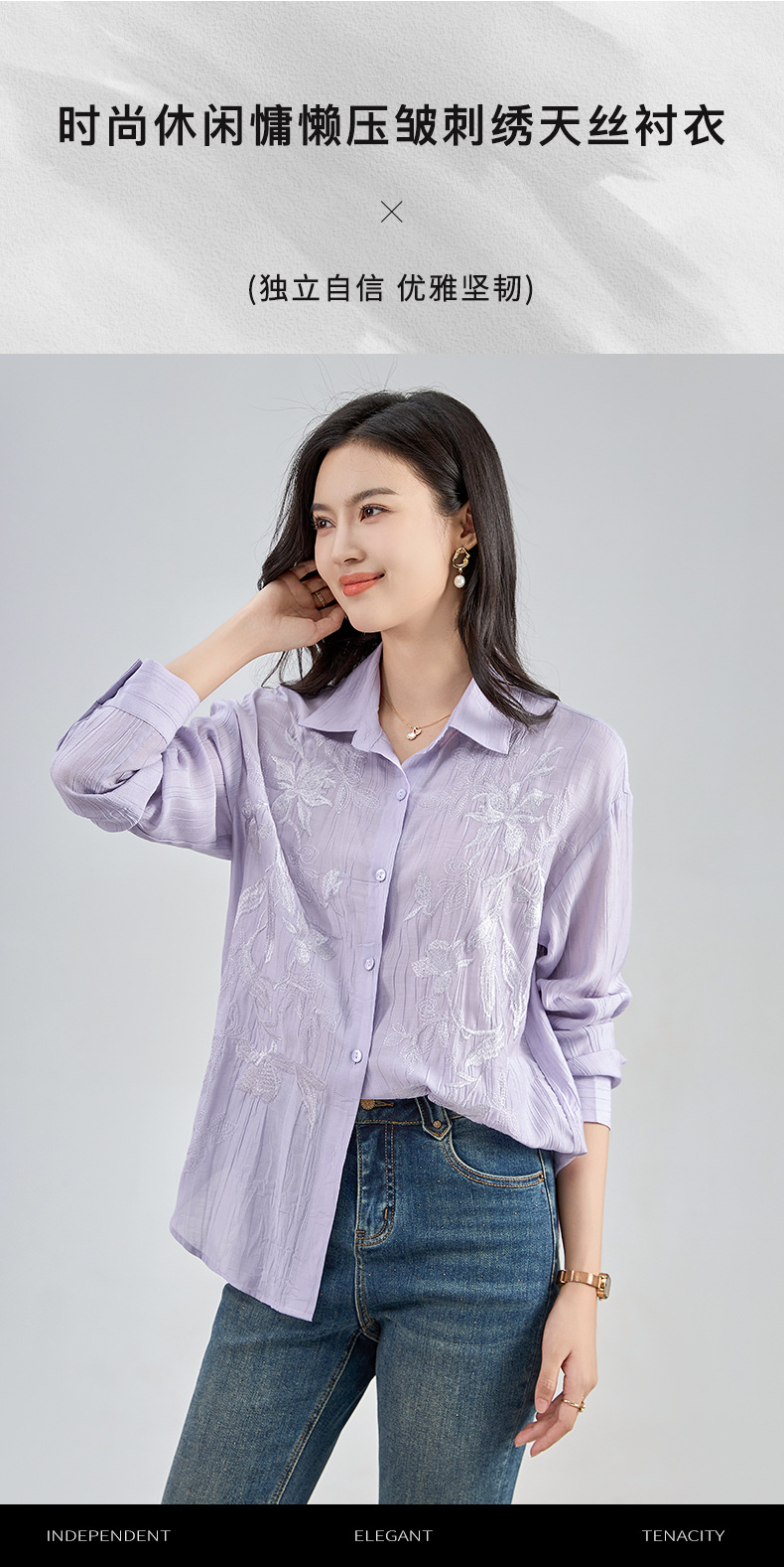 【高货wl】全新升级【铂金会员247/天猫329/差价82】(12043) 洛诗琳早秋原创压皱刺绣天丝衬衫女慵懒轻薄宽松长袖上衣