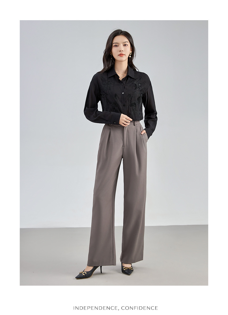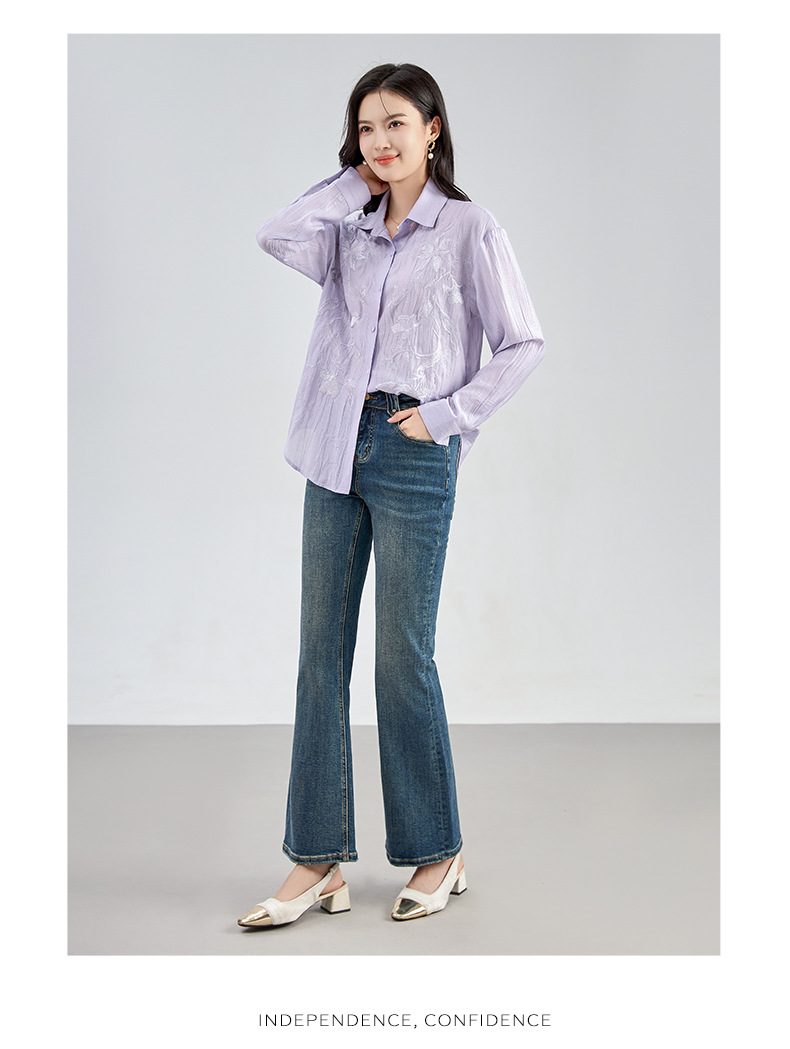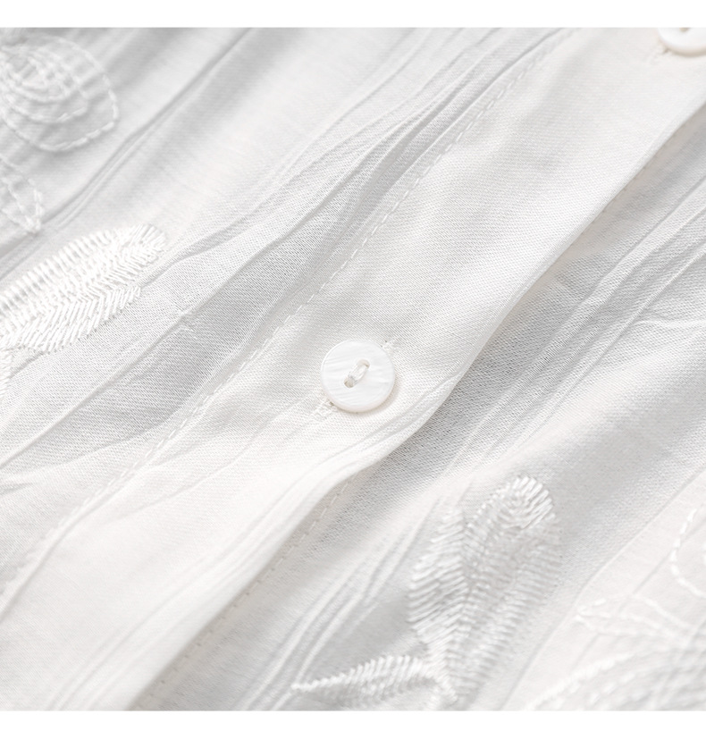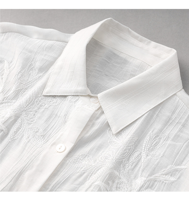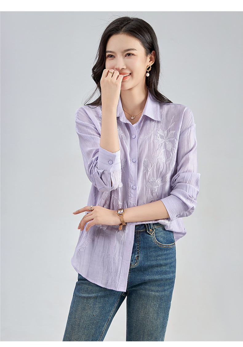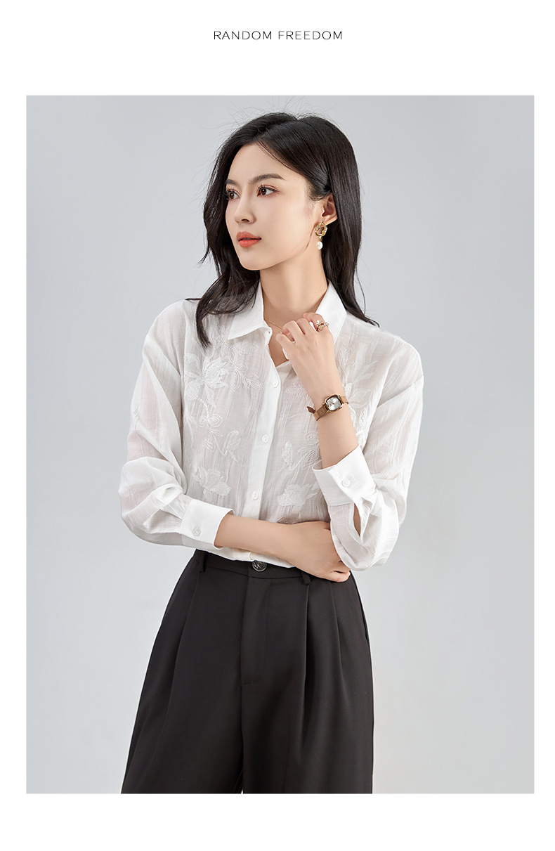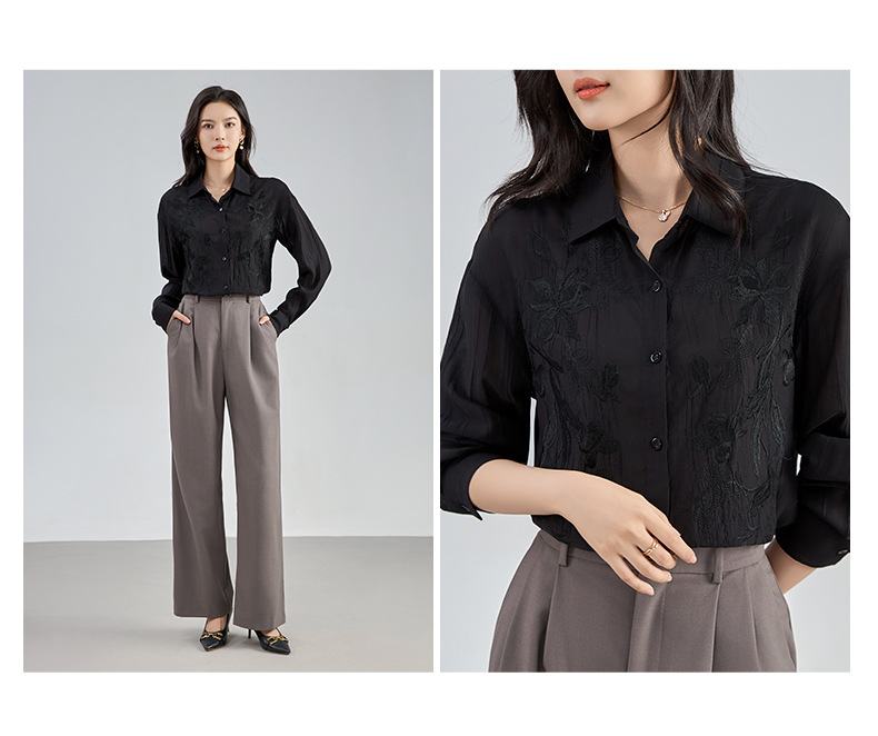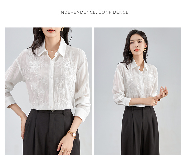 【高货wl】全新升级【铂金会员247/天猫329/差价82】(12043) 洛诗琳早秋原创压皱刺绣天丝衬衫女慵懒轻薄宽松长袖上衣