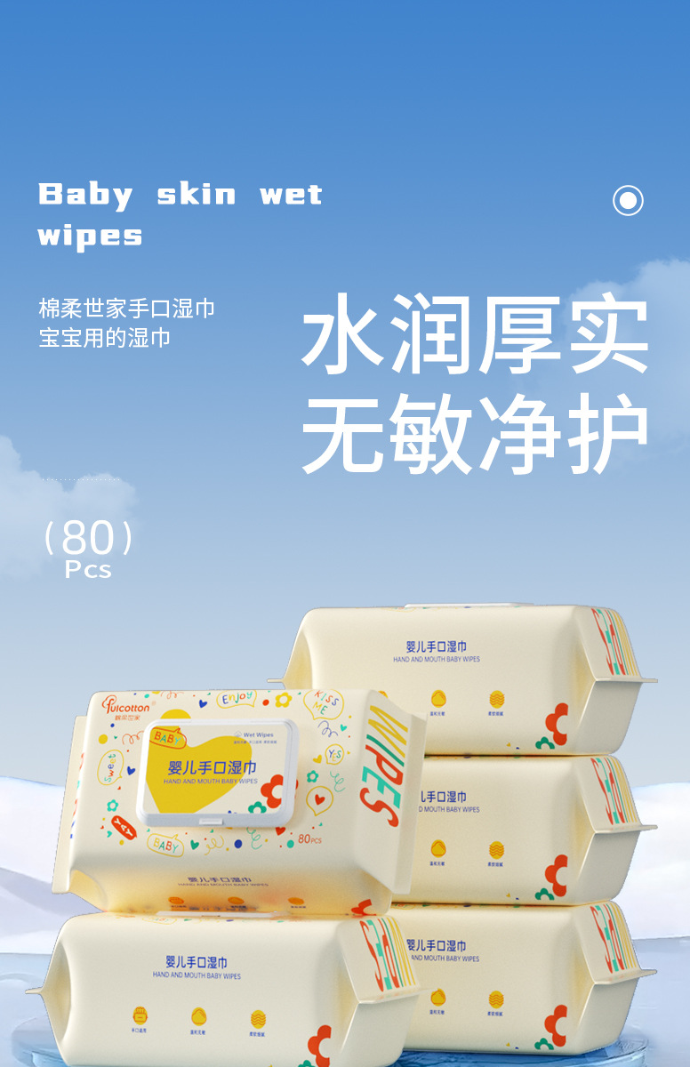 【水润厚实,无敏净护!】三包装!婴儿湿巾大包80抽 手口擦脸清洁湿巾 母婴专用加厚 一次性儿童湿巾纸-QA