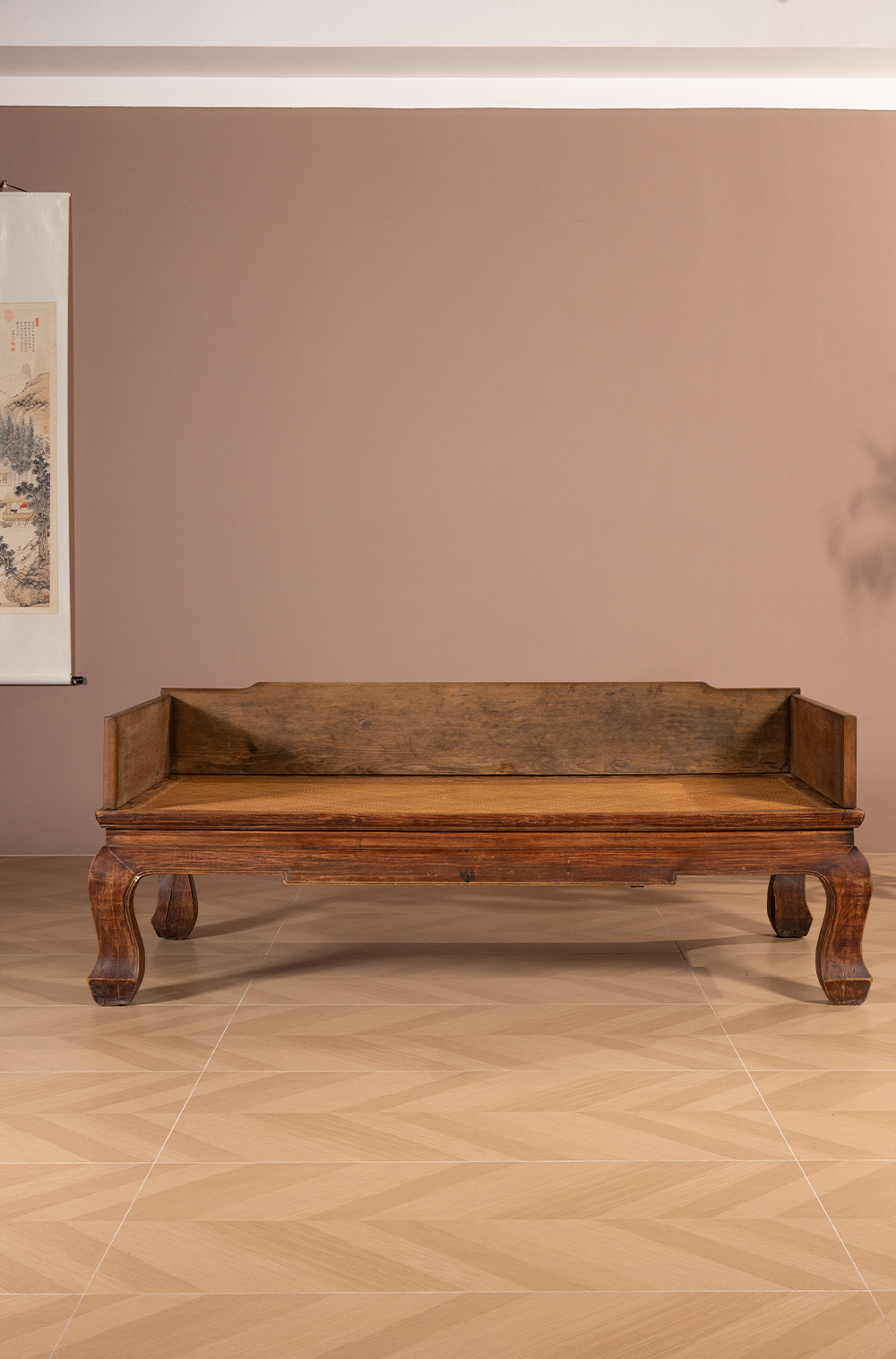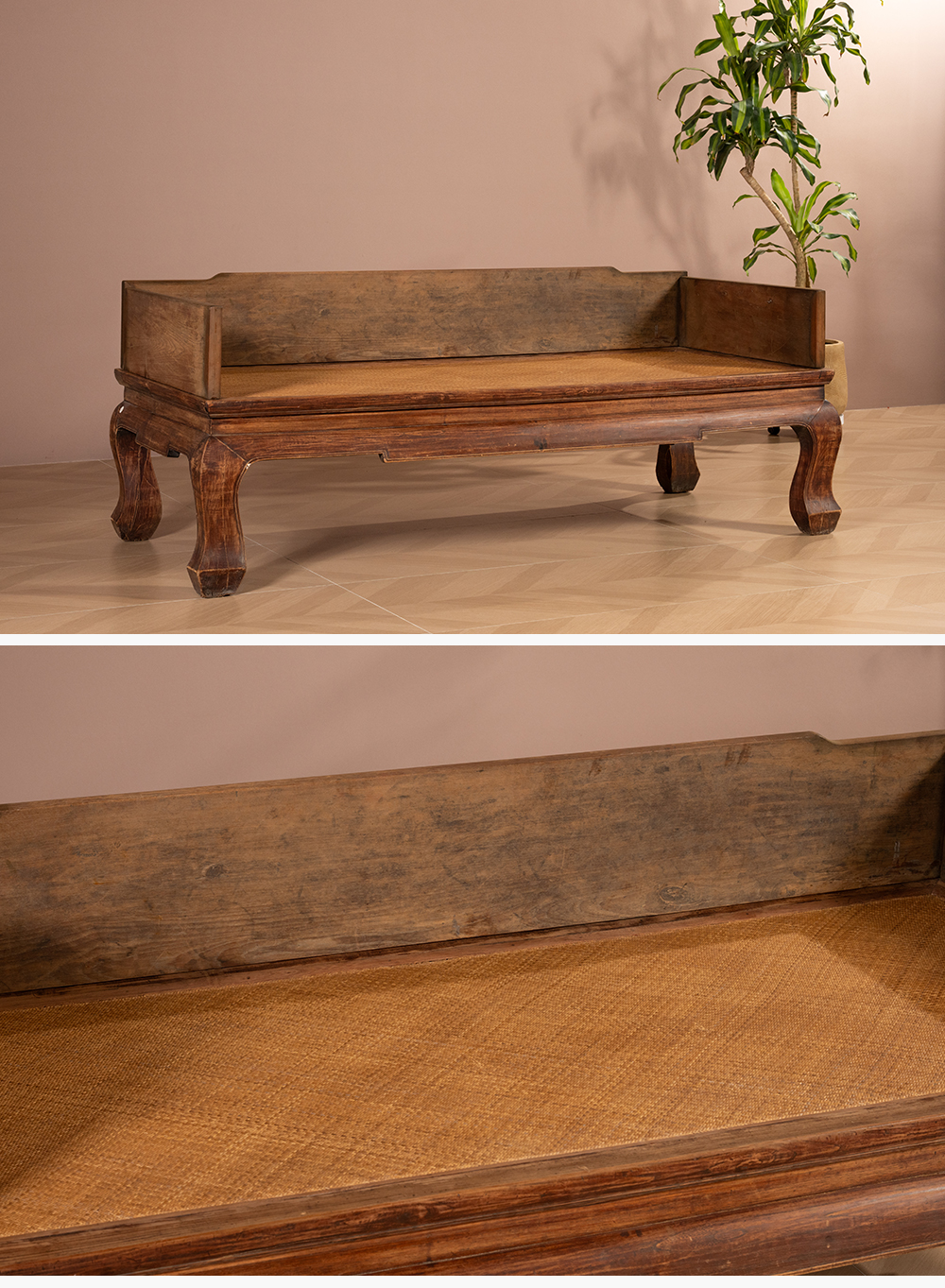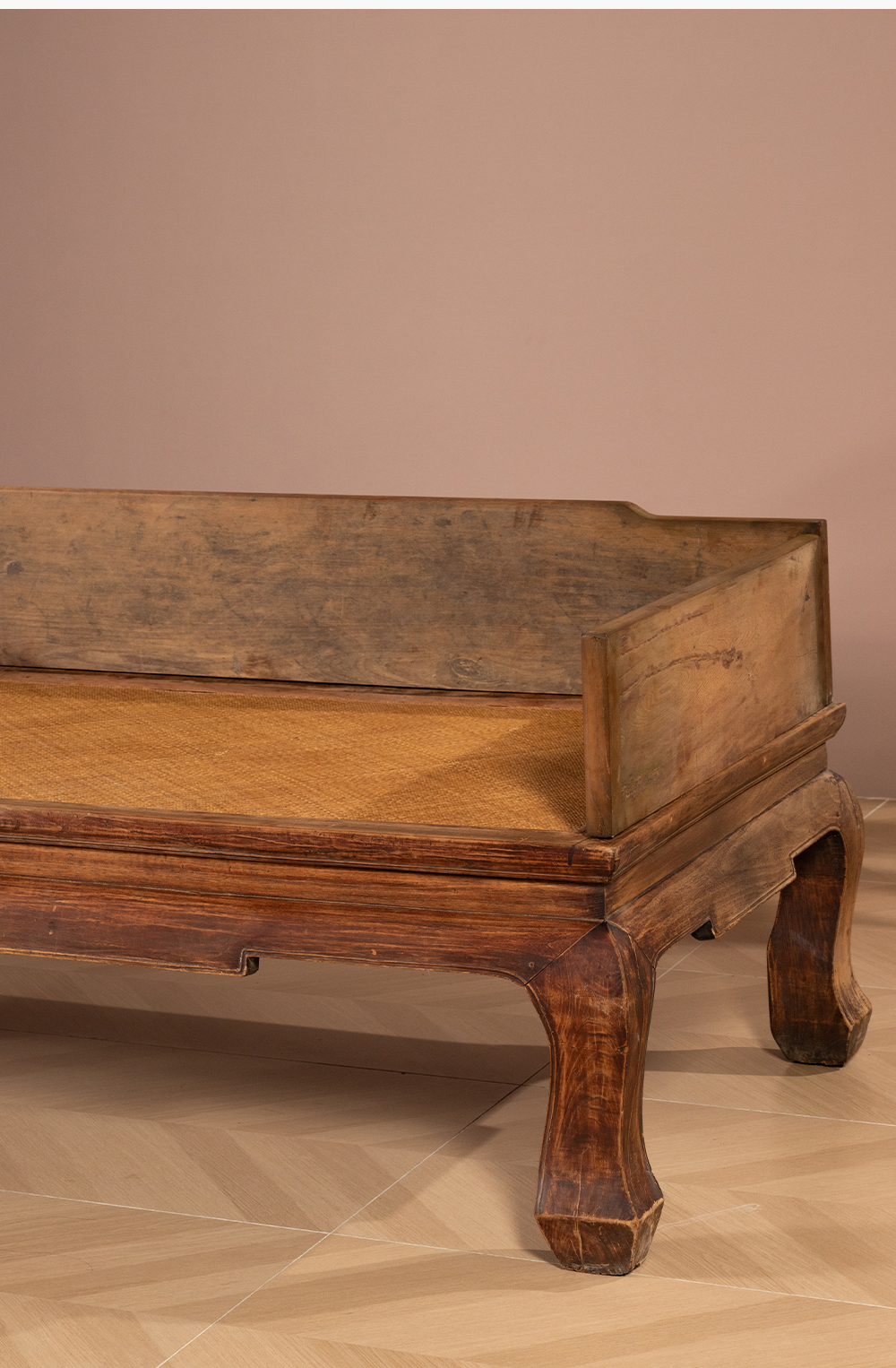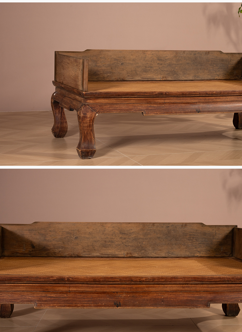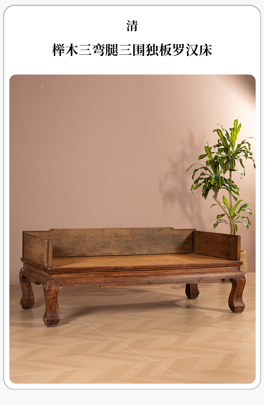 清 榉木三弯腿三围独板罗汉床