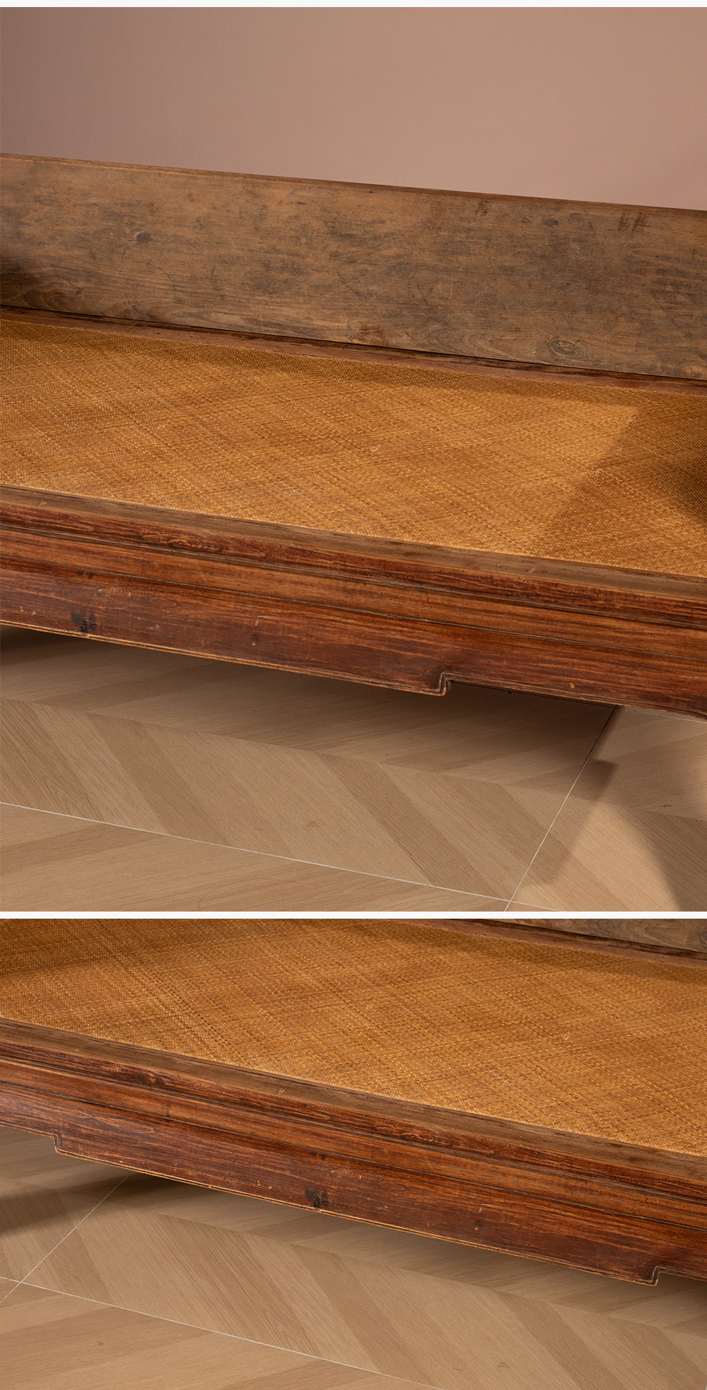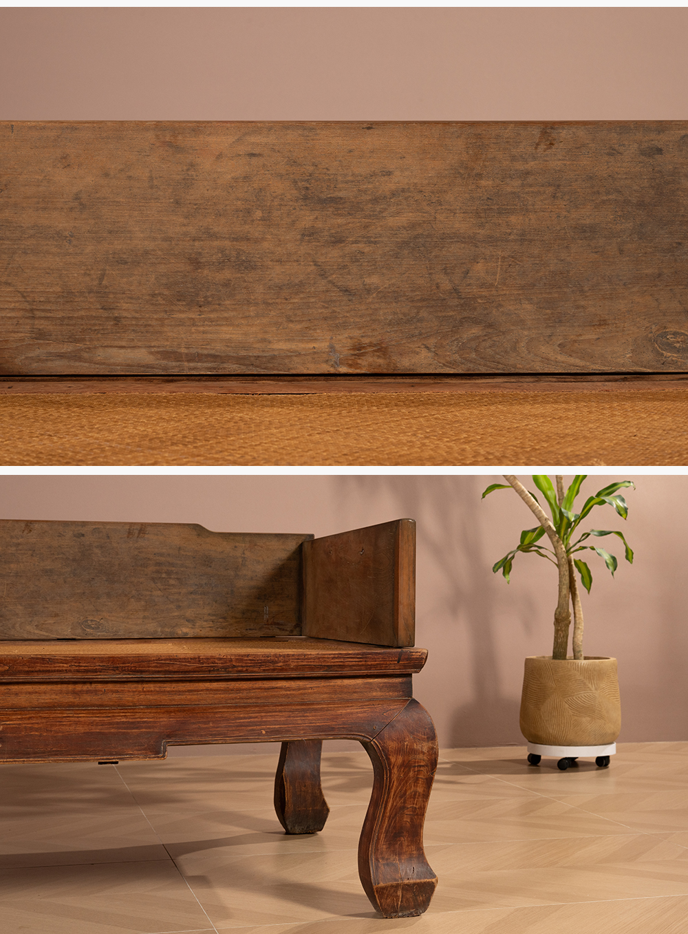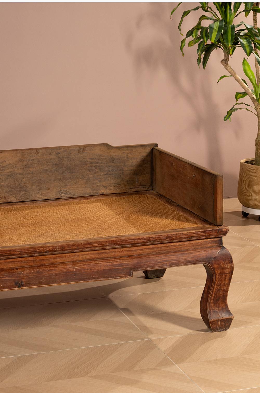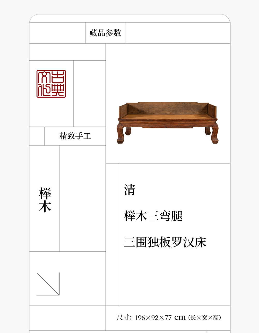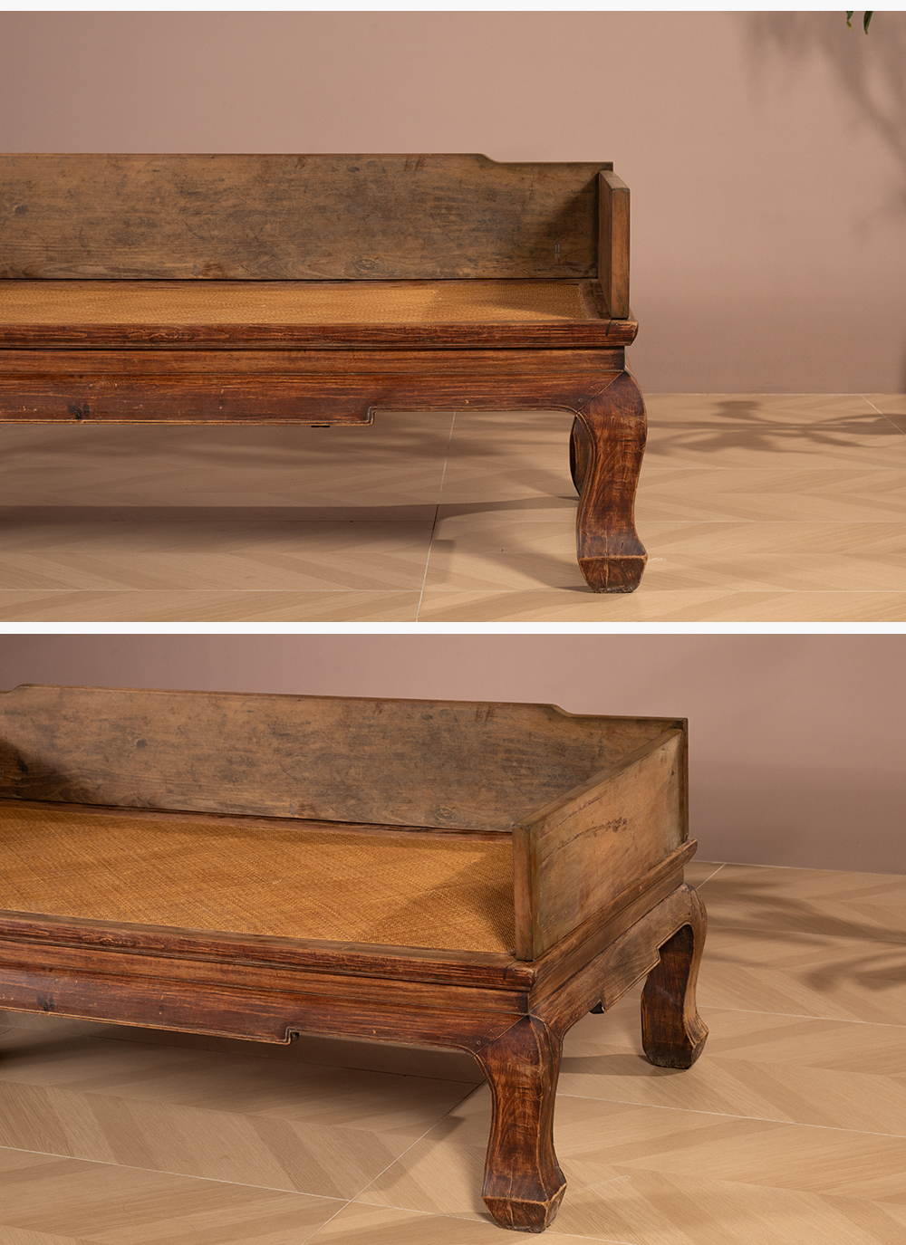 清 榉木三弯腿三围独板罗汉床