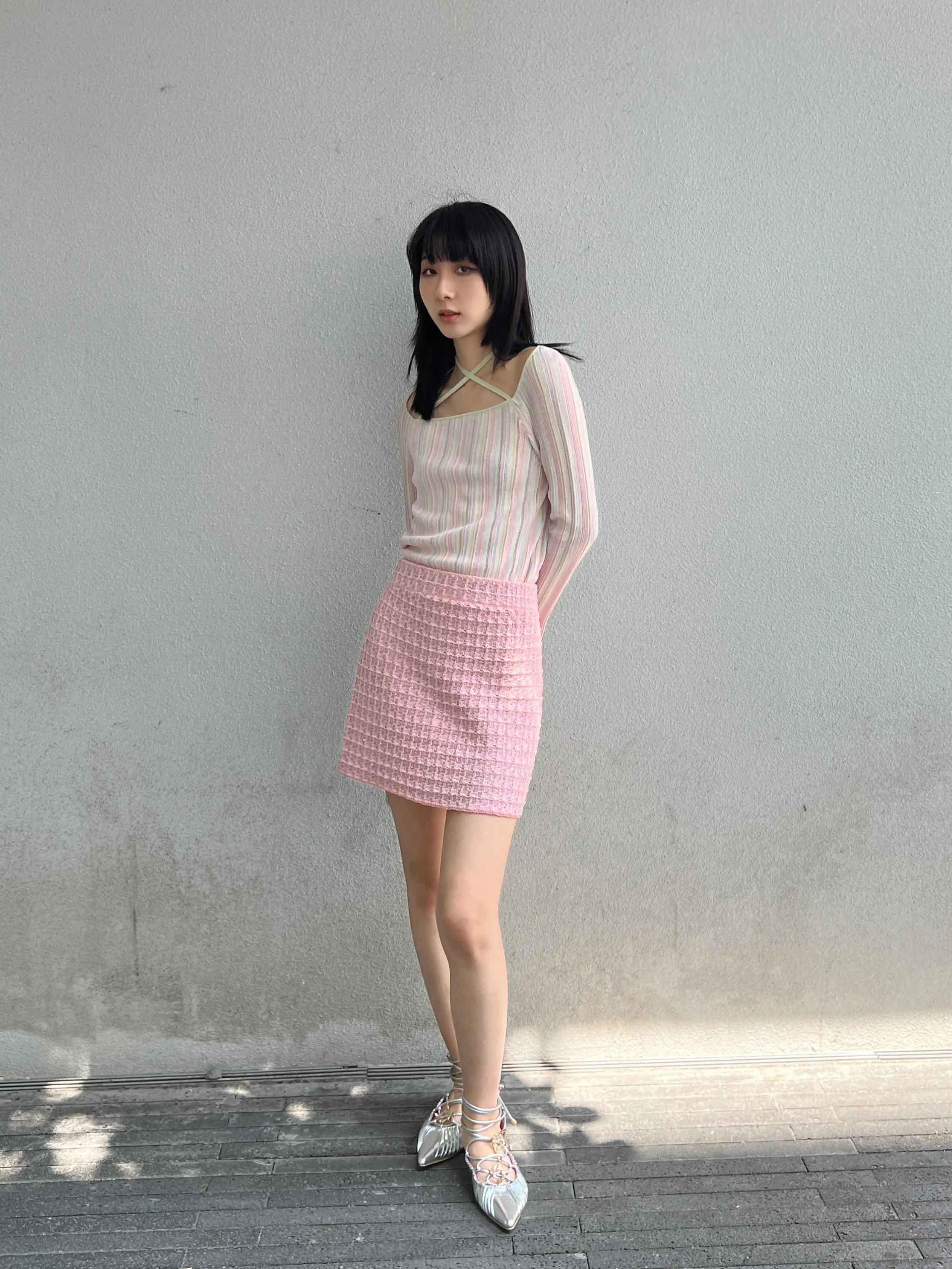 胸前的系绳设计领口设计自带设计亮点,把视觉中新转移到精致的锁骨和脖子