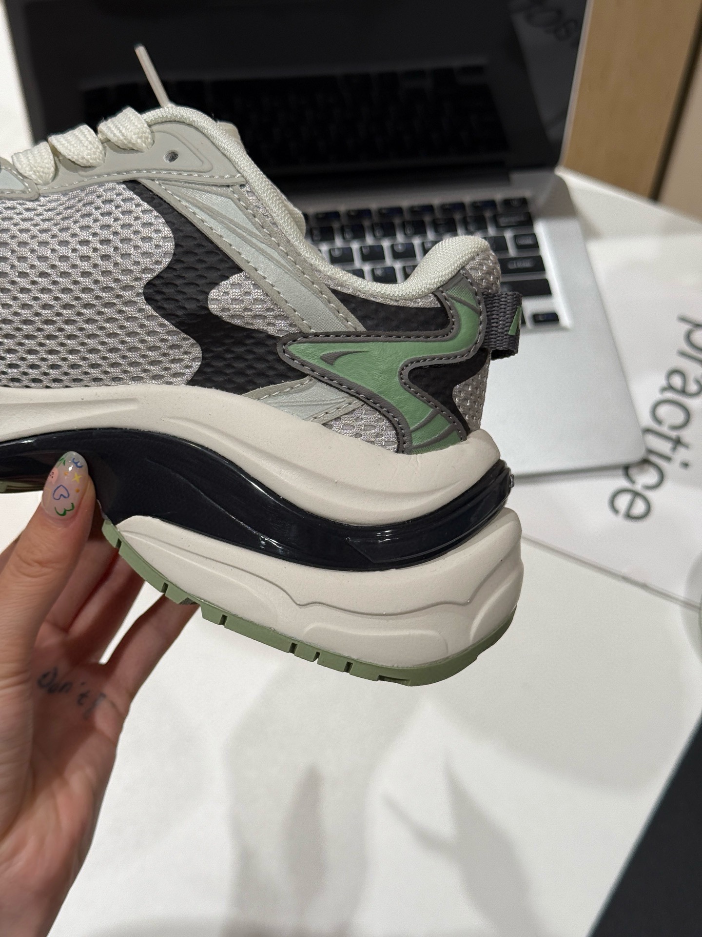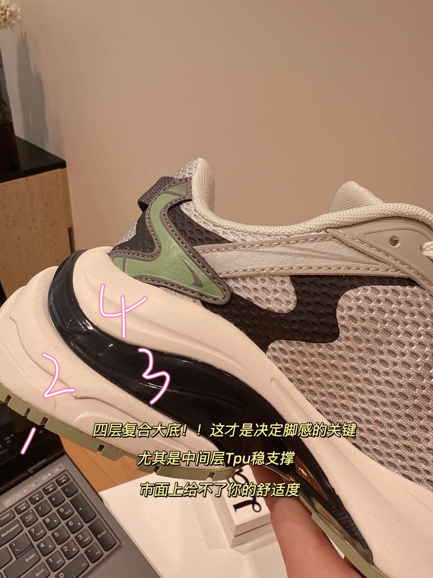 超级轻便,而且有五公分的增高!!上脚显瘦显腿长,一整个超模比例 原装的网面透气又舒服,每一步都仿佛踩在了云朵上 巨巨巨舒服