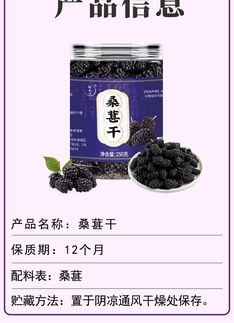 【新货】轩泰医桑葚干 头茬鲜货 大粒无沙桑葚干 升级罐装 250g/罐