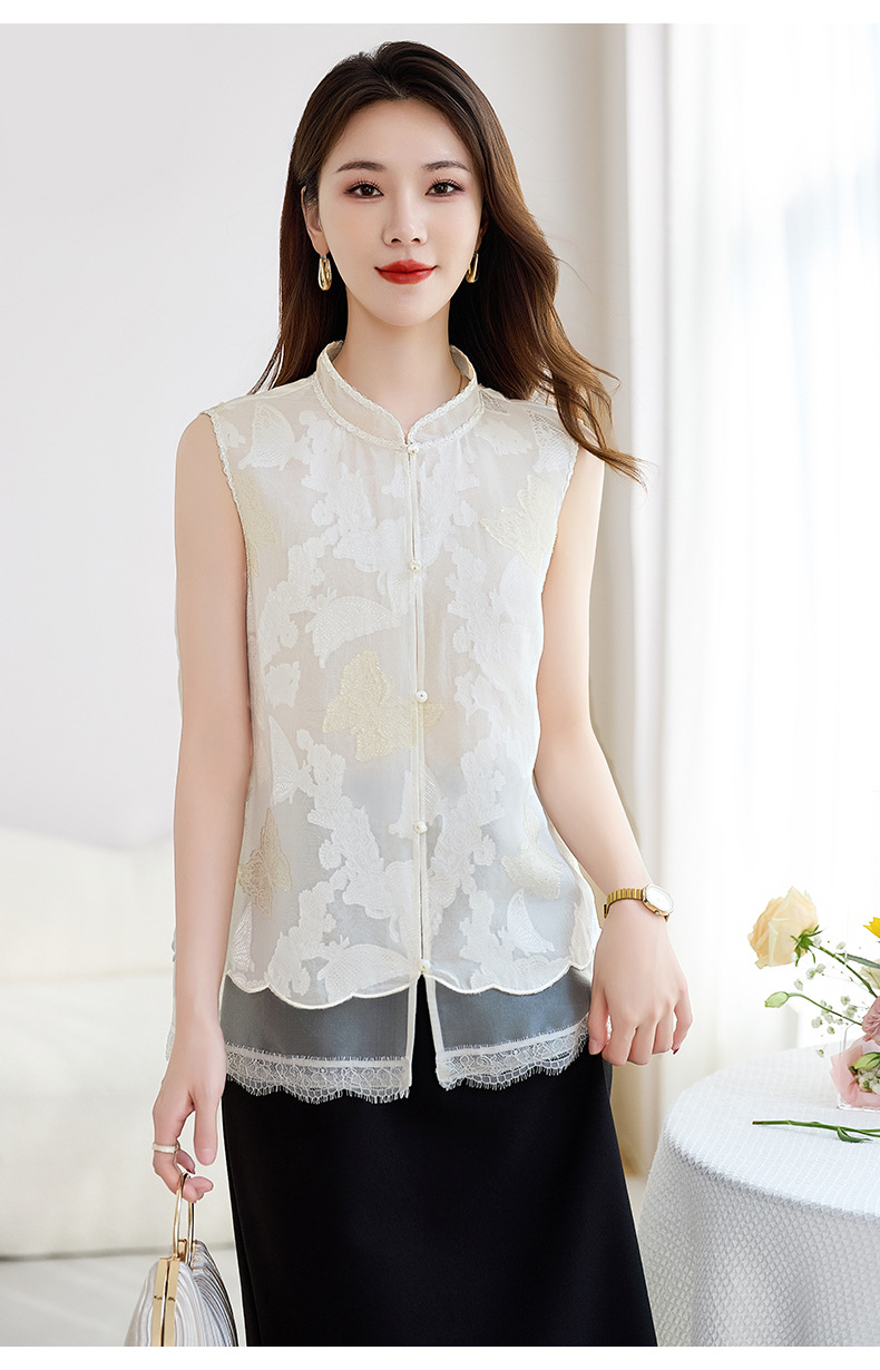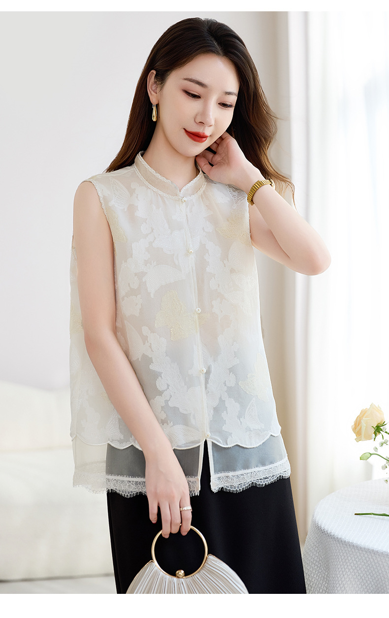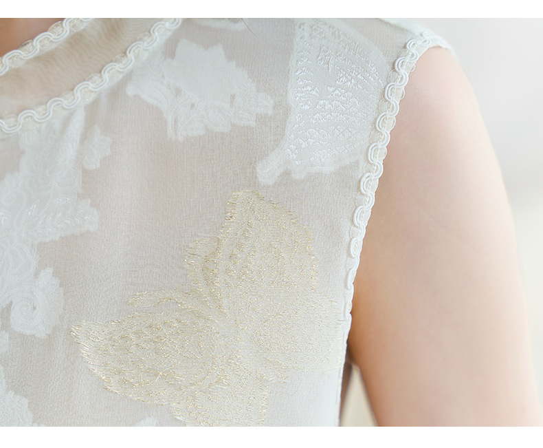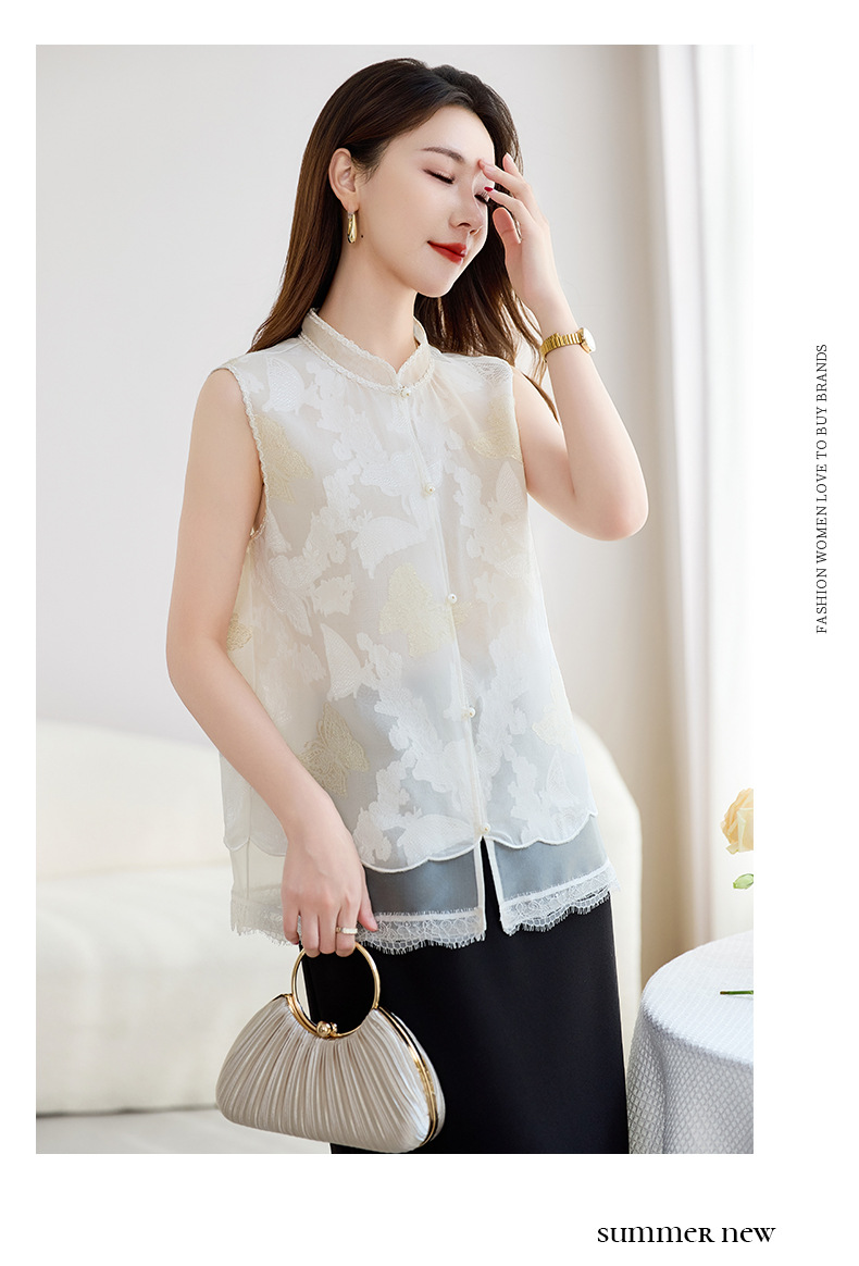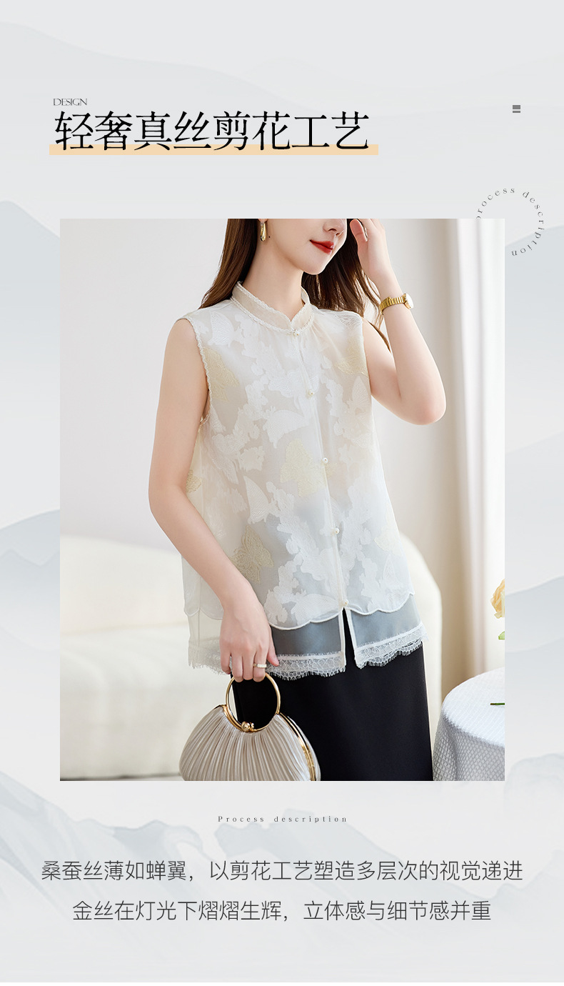 丁摩 【真丝剪花】新中式乔其剪花无袖马甲上衣9262