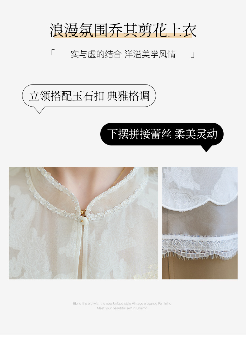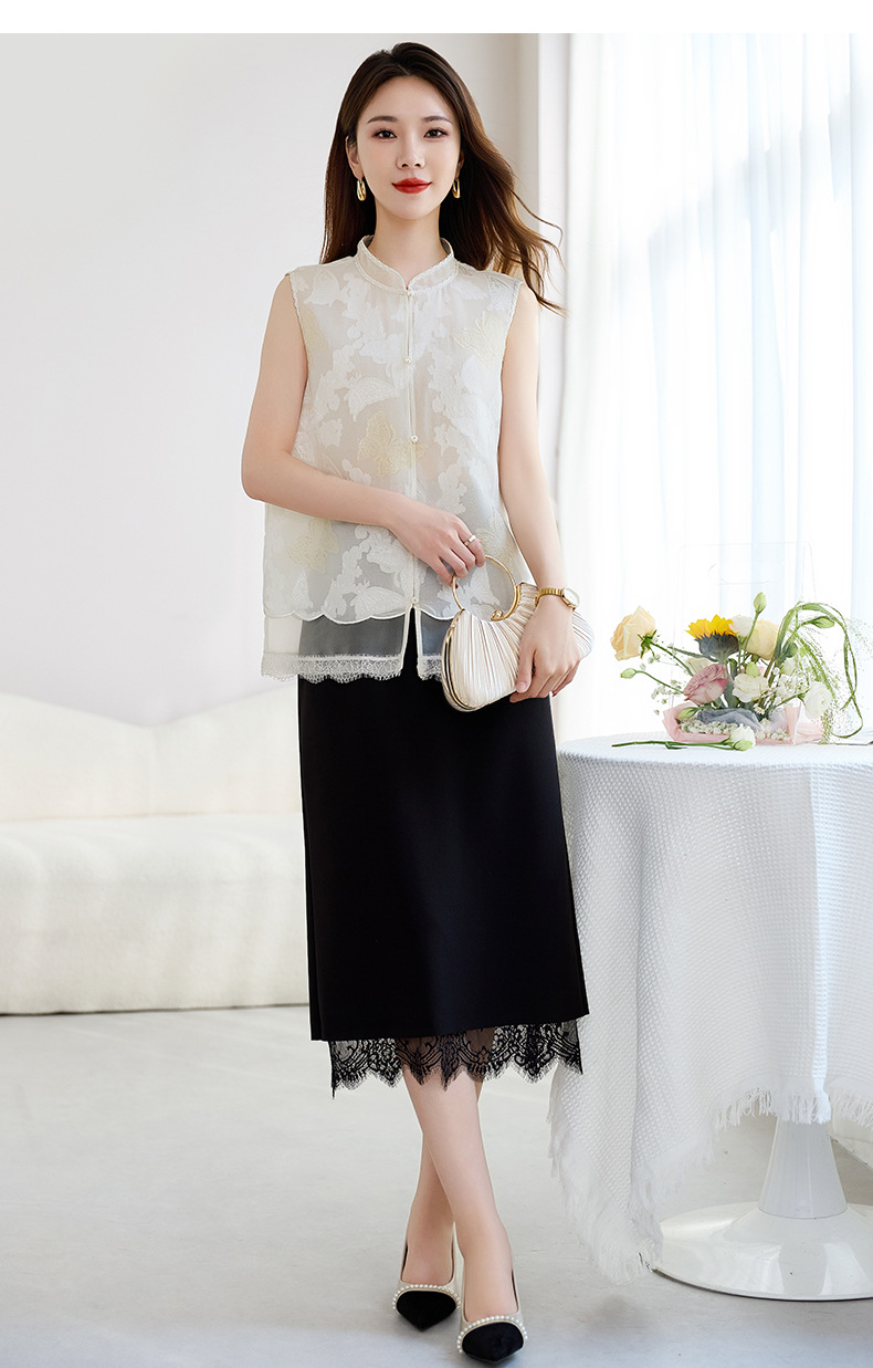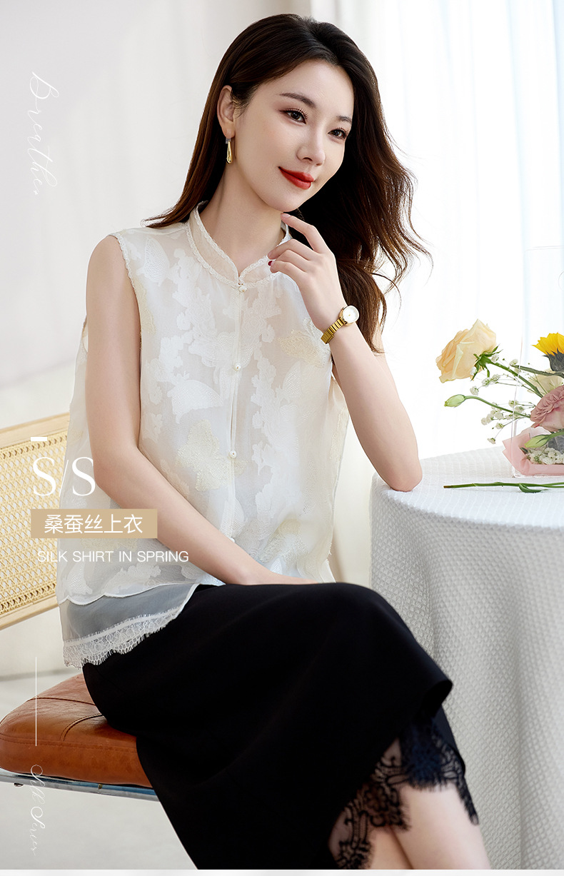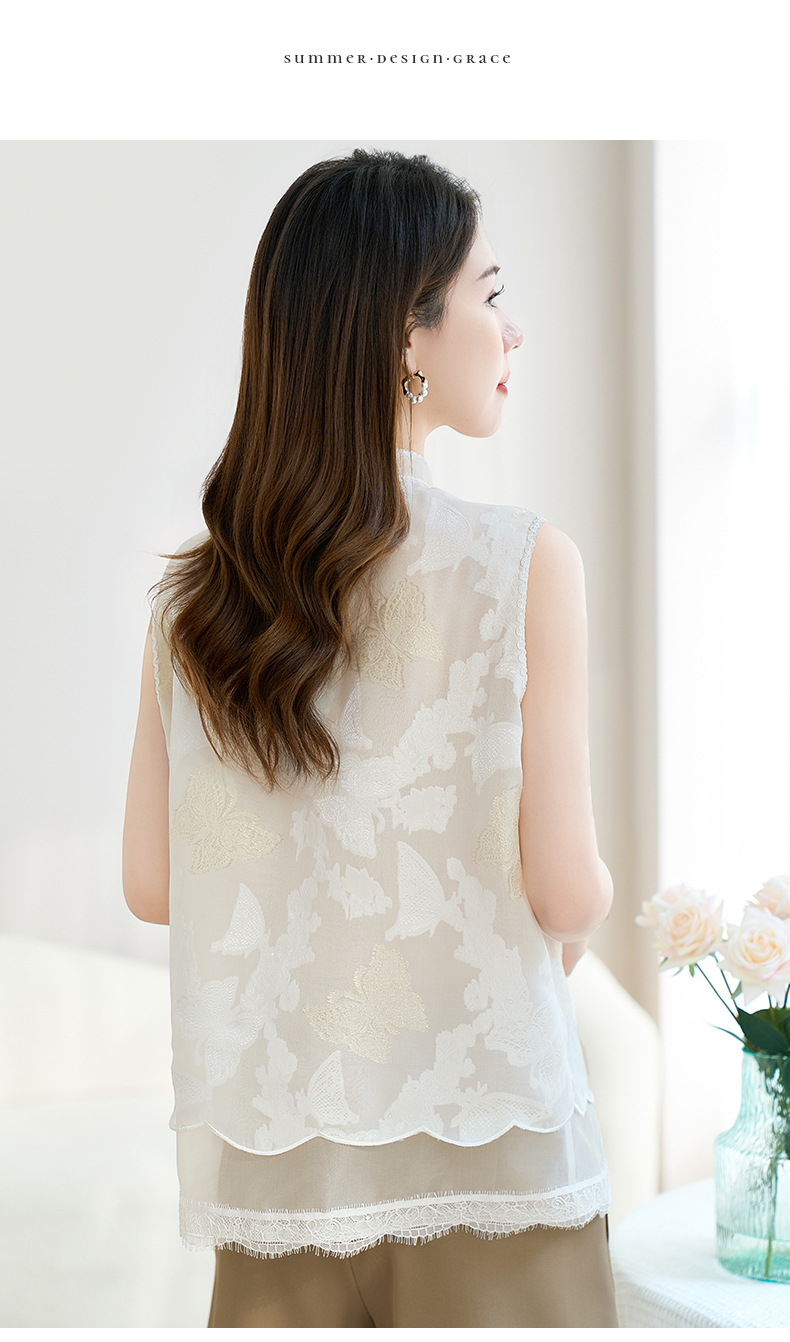 丁摩 【真丝剪花】新中式乔其剪花无袖马甲上衣9262