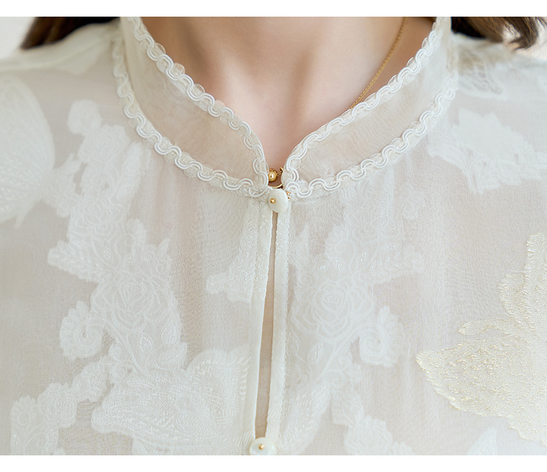 丁摩 提花长袖新中式衬衣上衣女春秋立领复古国风绸缎衬衫6ZF-3368