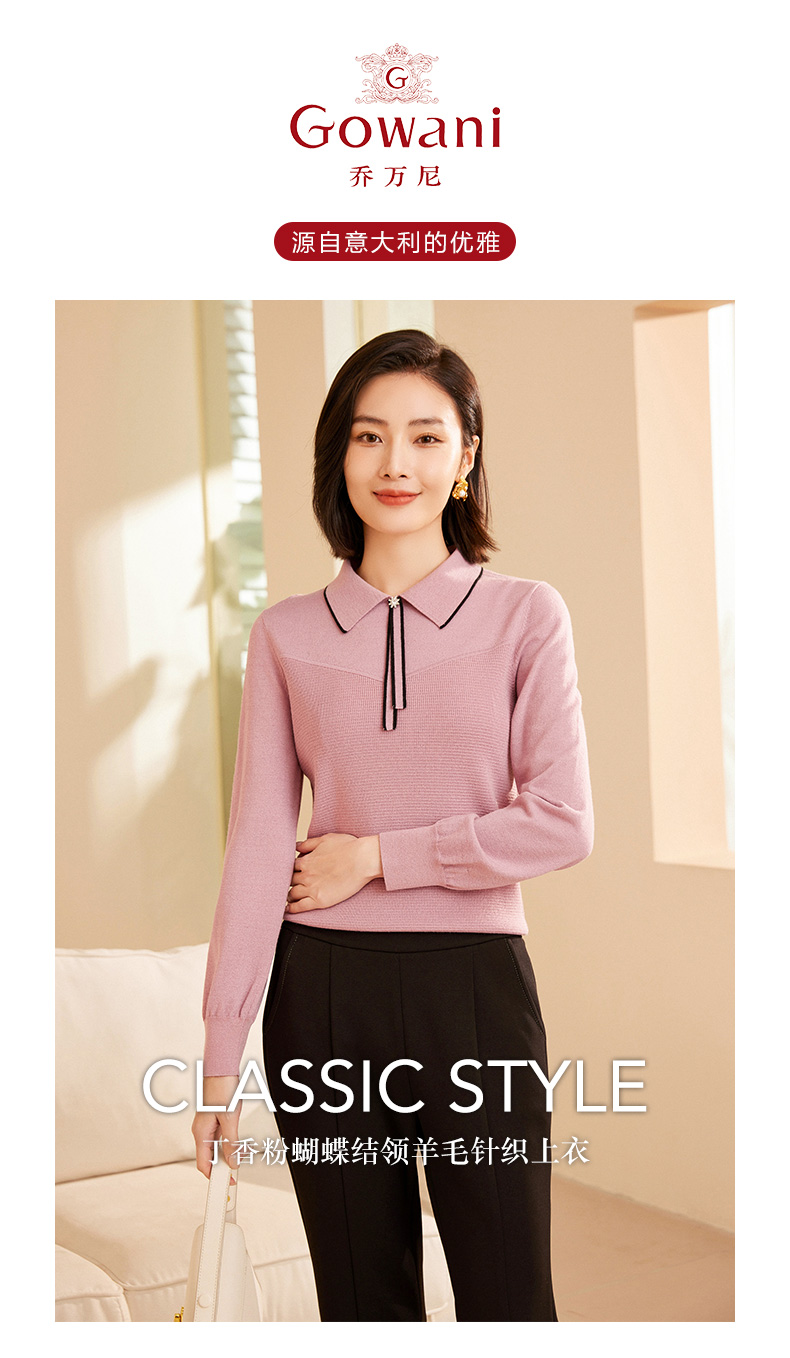乔万尼秋新品羊毛衫衬衫领百搭针织衫ET3M771