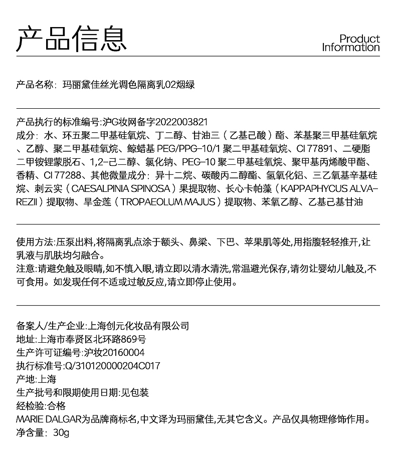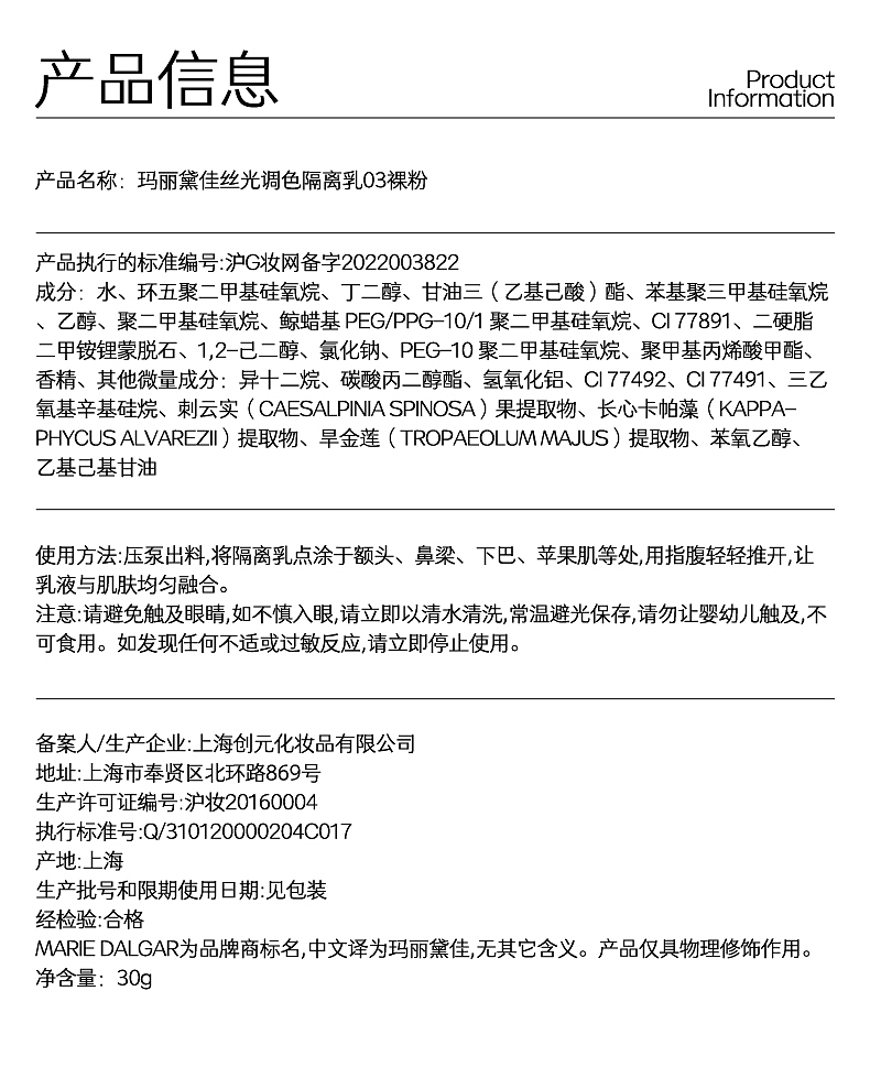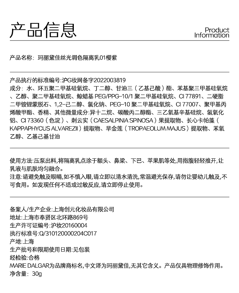 【积分兑换正装】玛丽黛佳 丝光隔离霜妆前乳定妆隐形毛孔遮瑕提亮肤色
