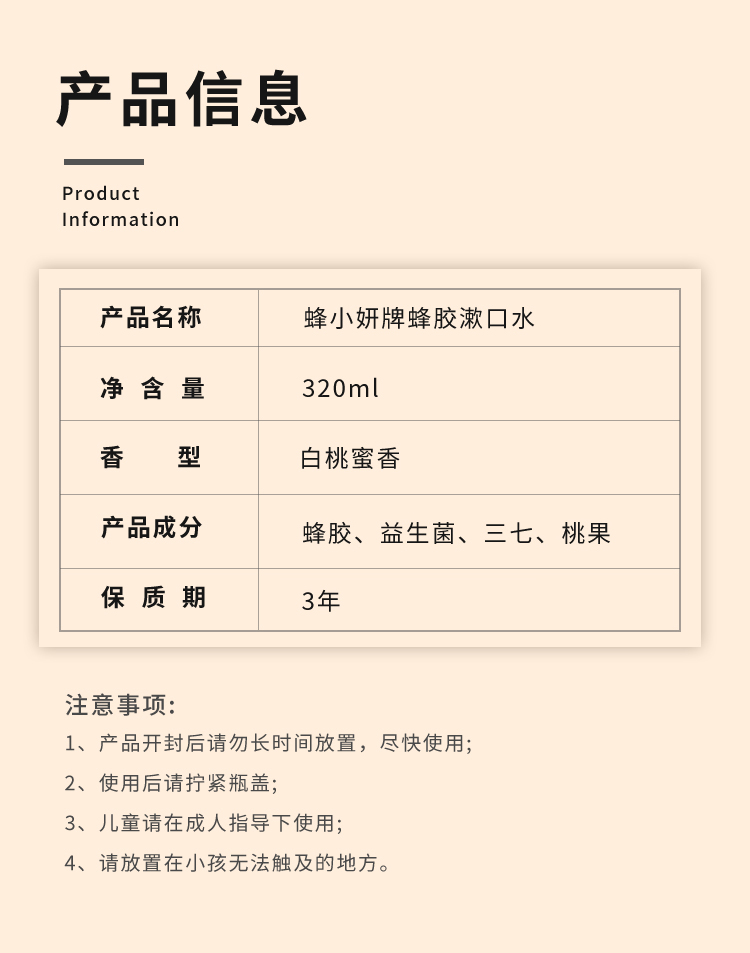 【口腔清洁清新怡人】蜂小妍牌蜂胶漱口水(中国农科院蜜蜂研究所品牌)自然蜂胶植物精萃高纯度原材精心制作匠人工艺