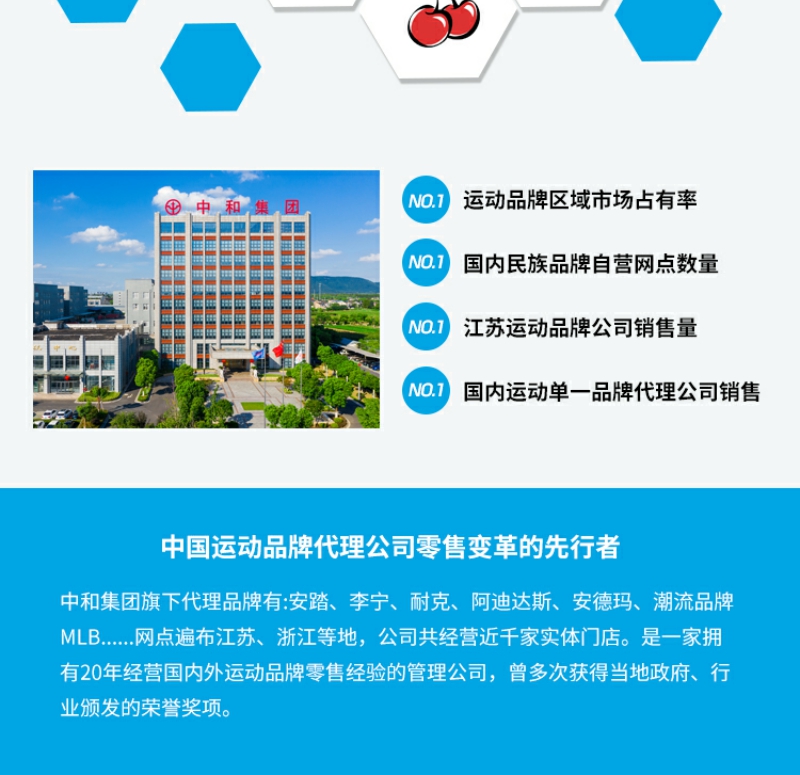 中和集团旗下代理安踏、李宁、耐克、安德玛、耐克、中国李宁、MIB等运动时尚品牌,网点遍布江苏、浙江、湖北等身份