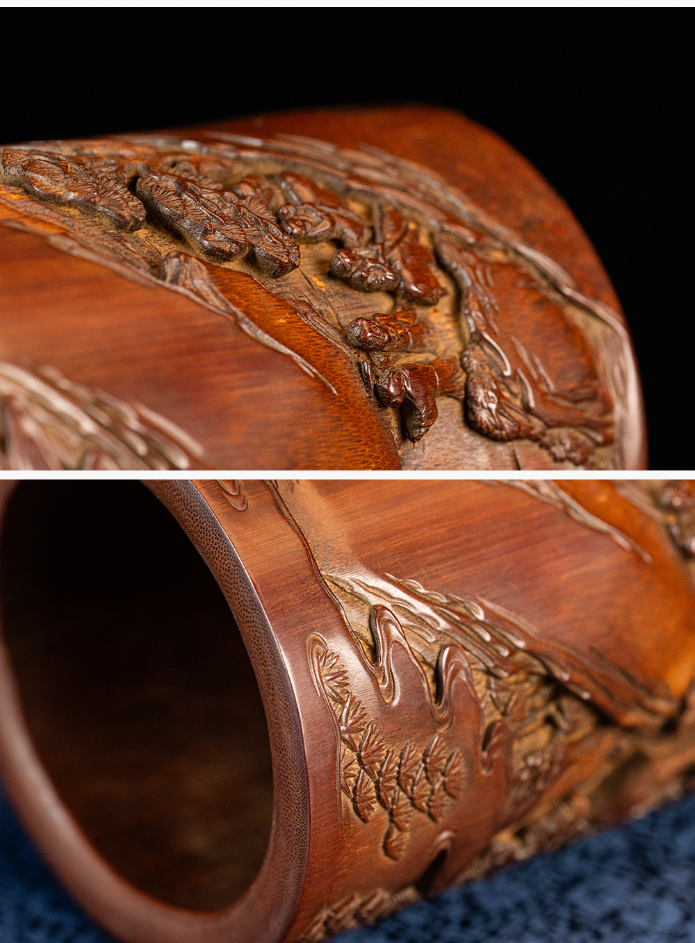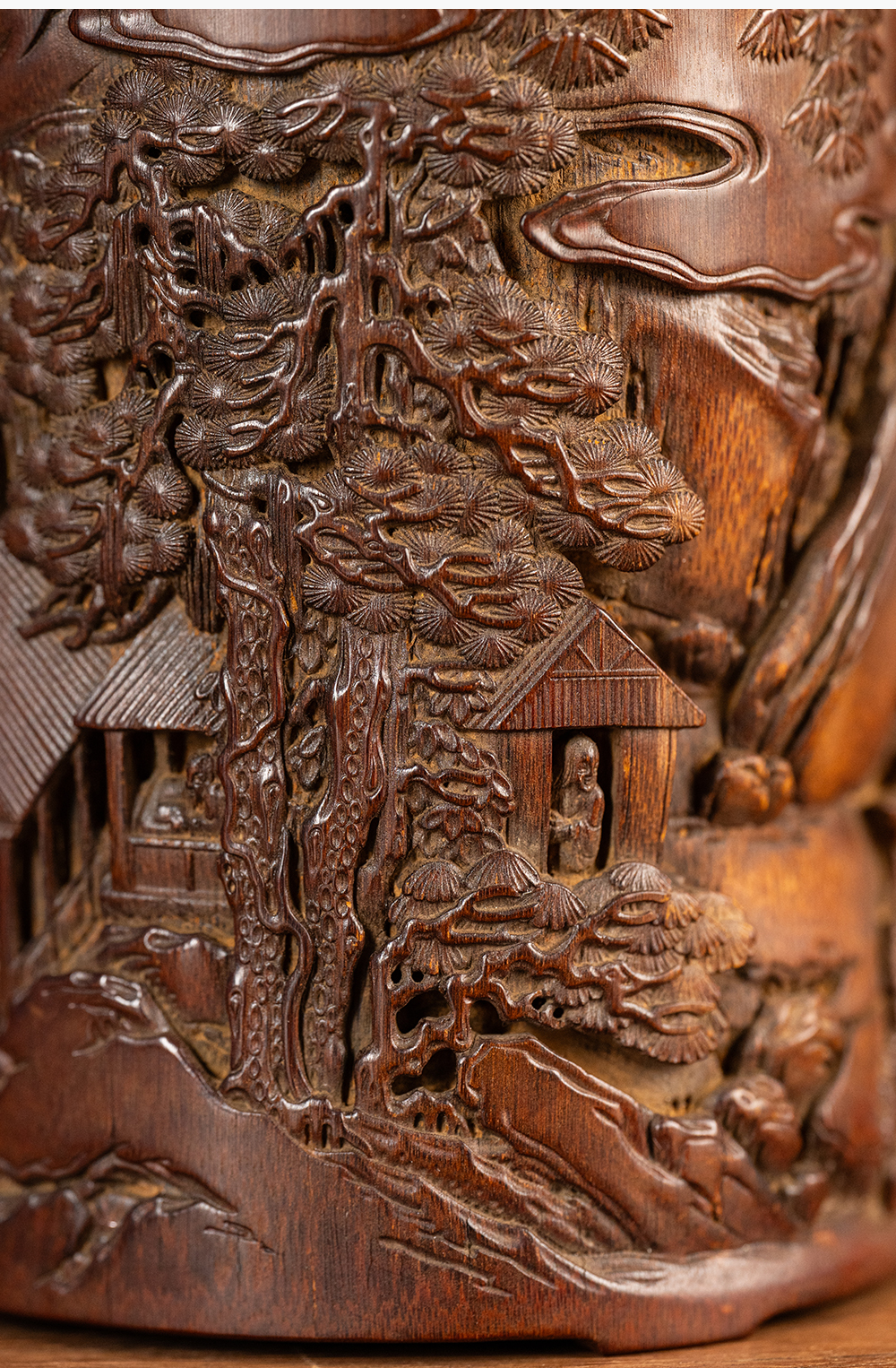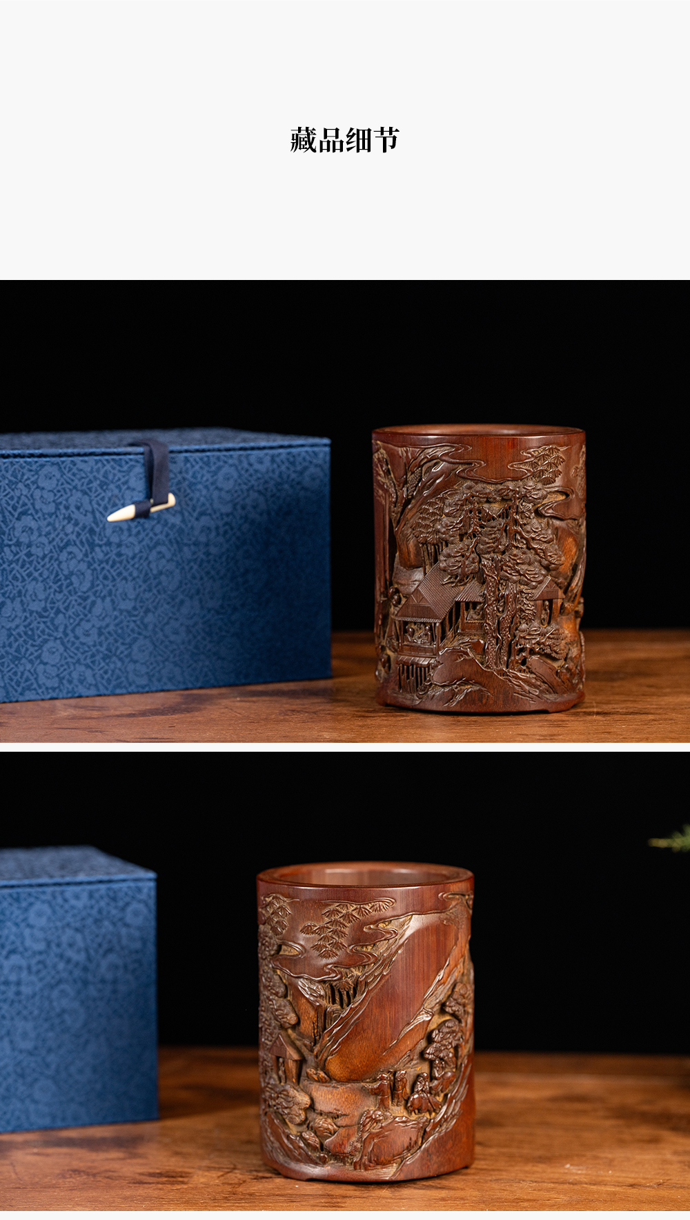 清 黄花梨百宝嵌花鸟诗文笔筒