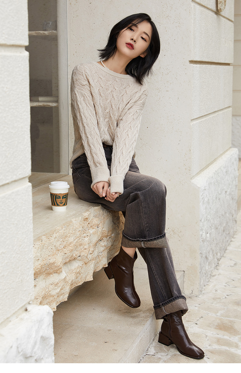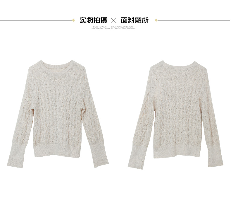 秋季复古麻花毛衣女 宽松慵懒风圆领套头针织衫 温柔风软糯上衣