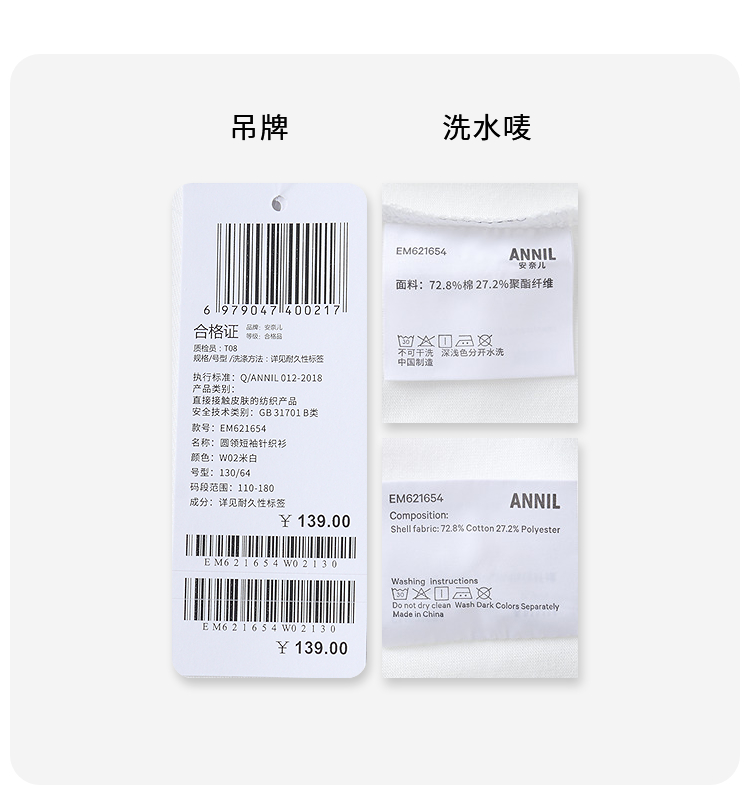 男女童圆领短袖针织衫夏季新款安奈儿童装EM621654