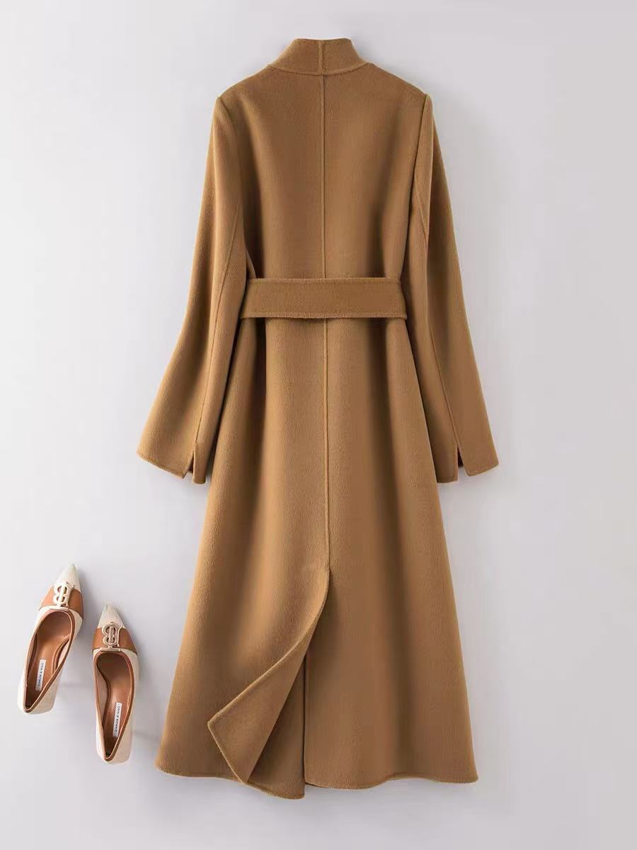 【高端系列】手工定制2313款70.8%羊毛高级感翻领系带双面尼大衣-喜出