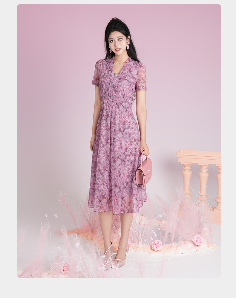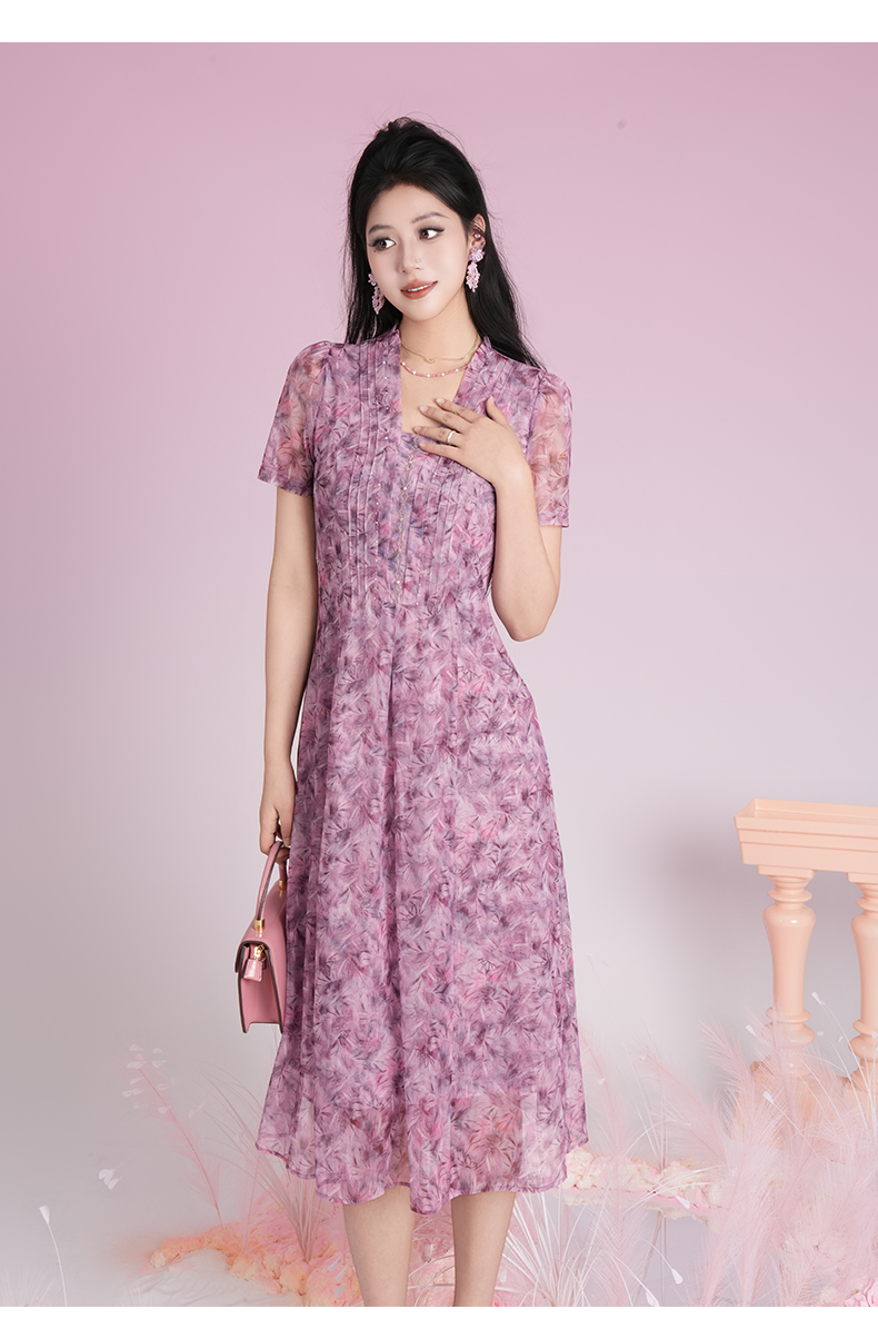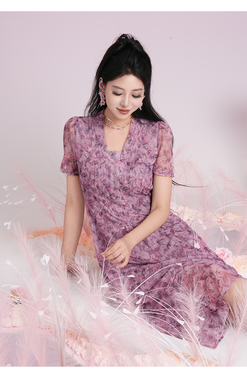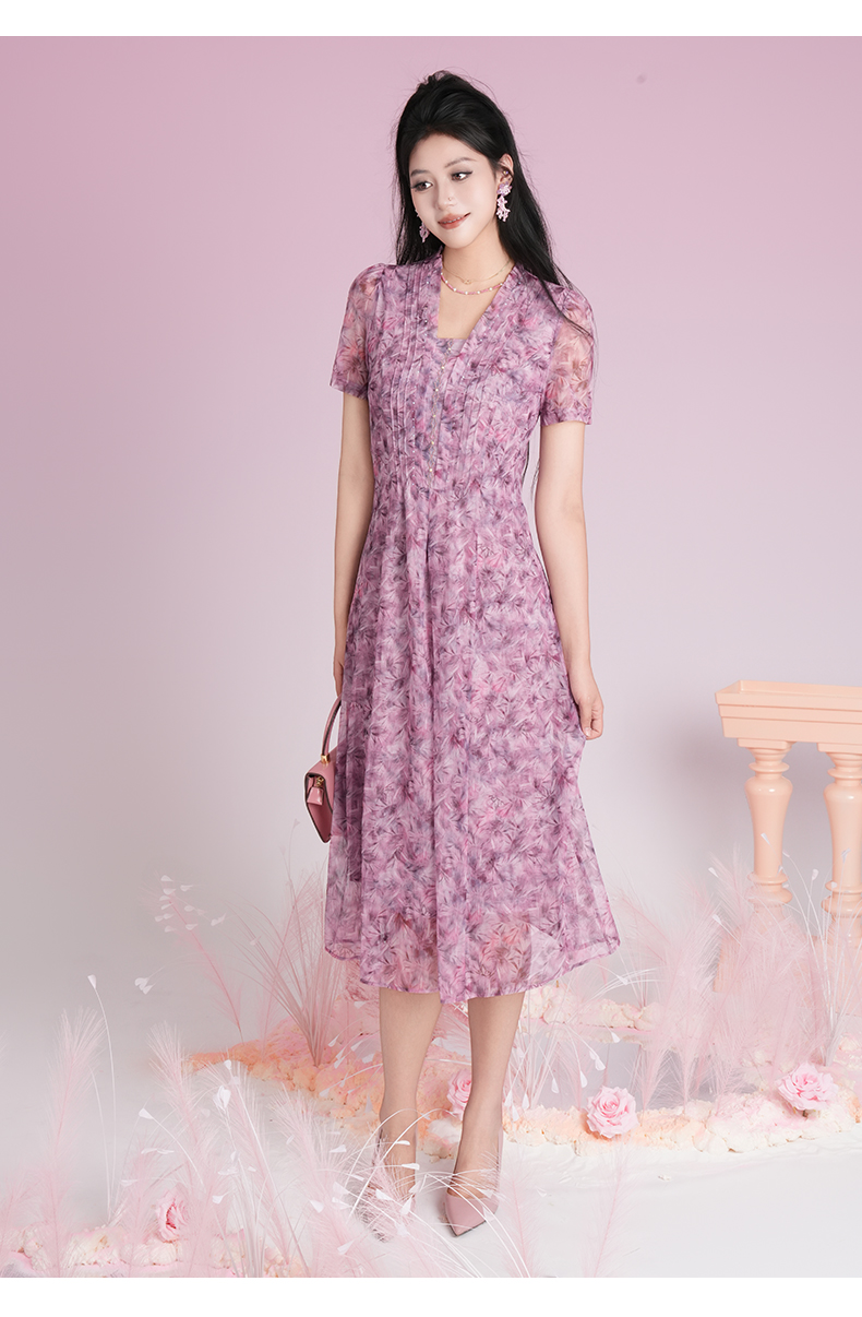 乔万尼2025夏季新品印花收腰南法风情连衣裙ED2E532