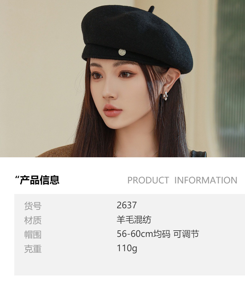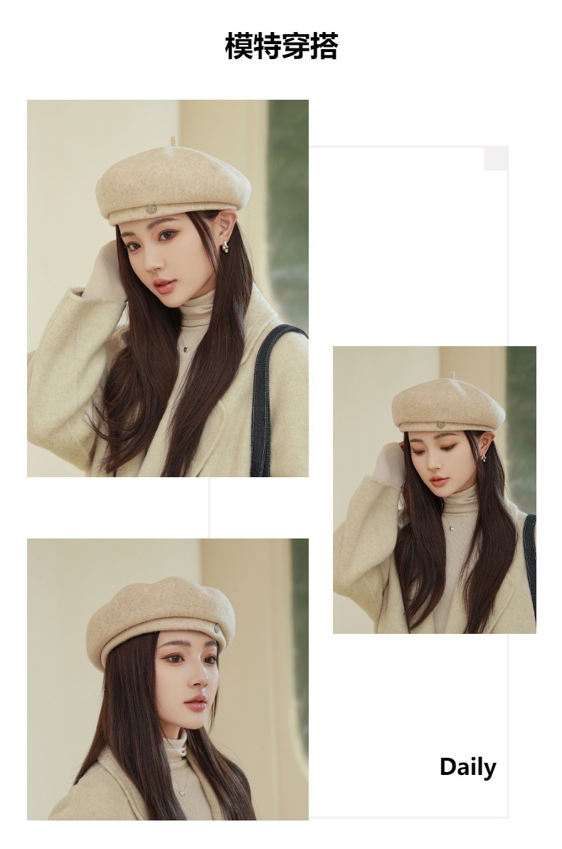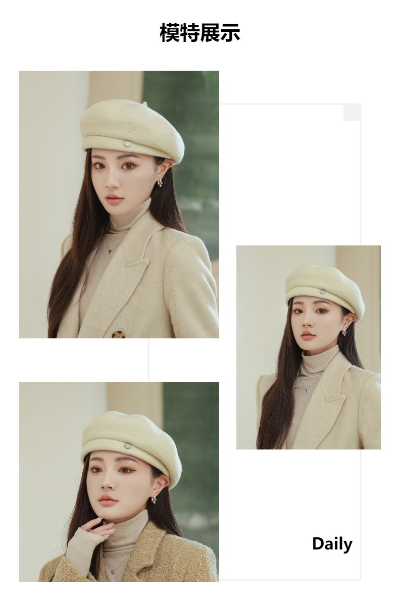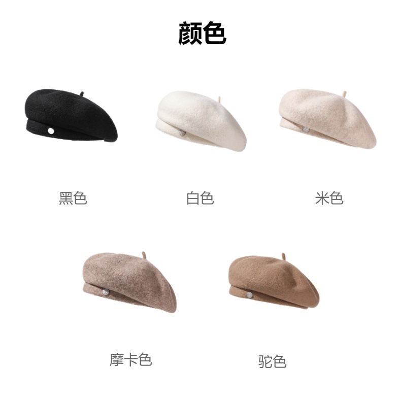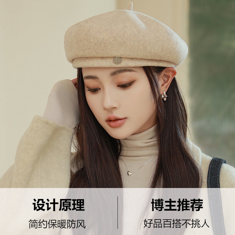 雀说 轻奢高档羊毛八角贝雷帽子显脸小画家帽M2637