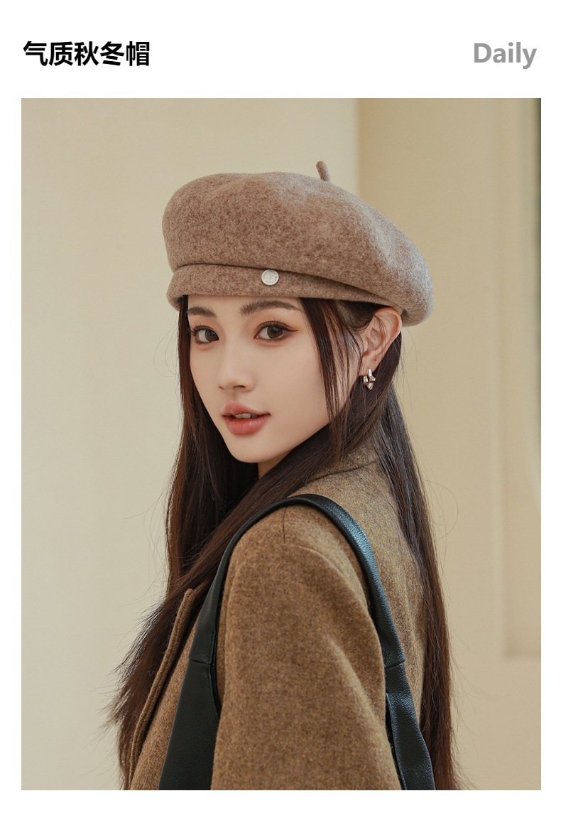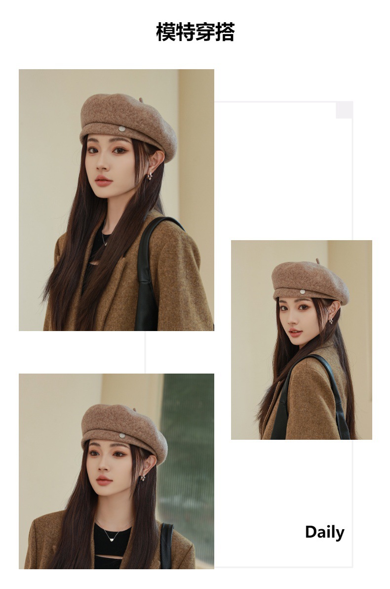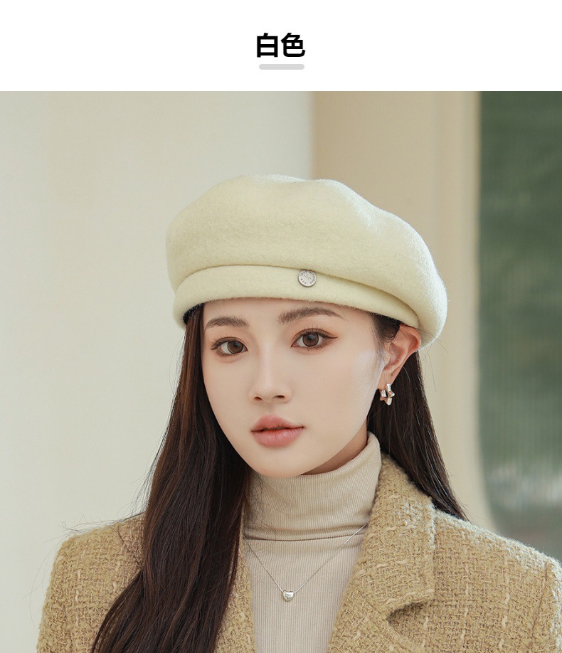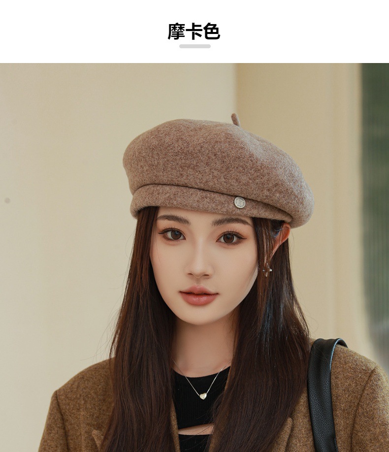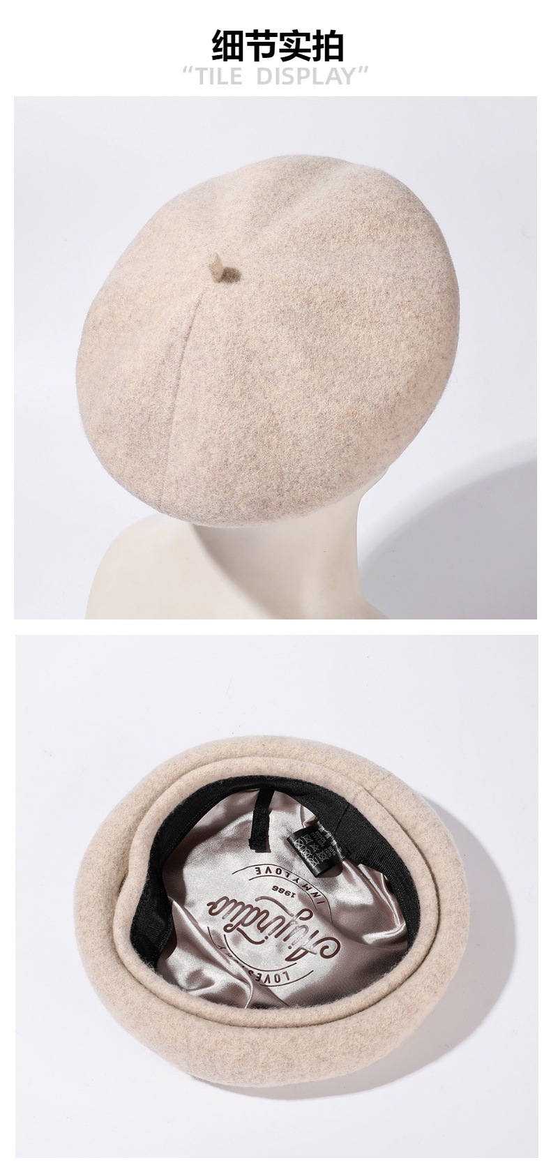 雀说 轻奢高档羊毛八角贝雷帽子显脸小画家帽M2637