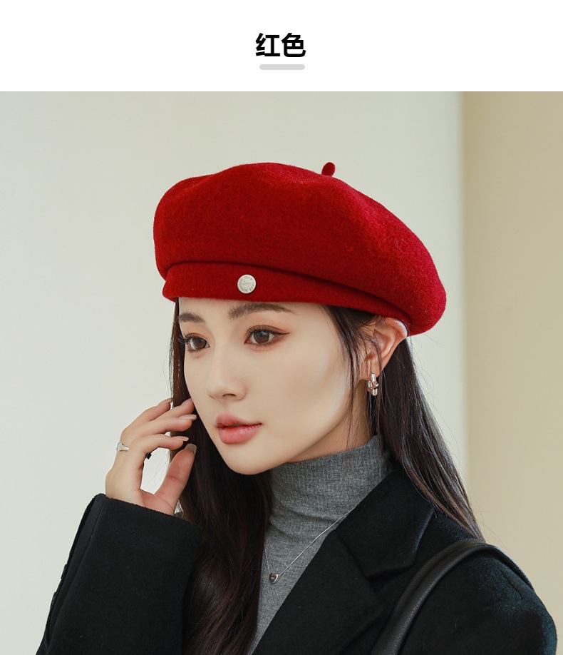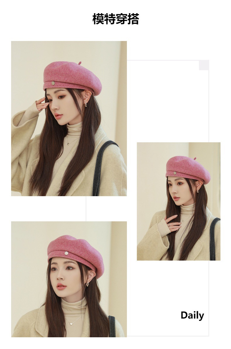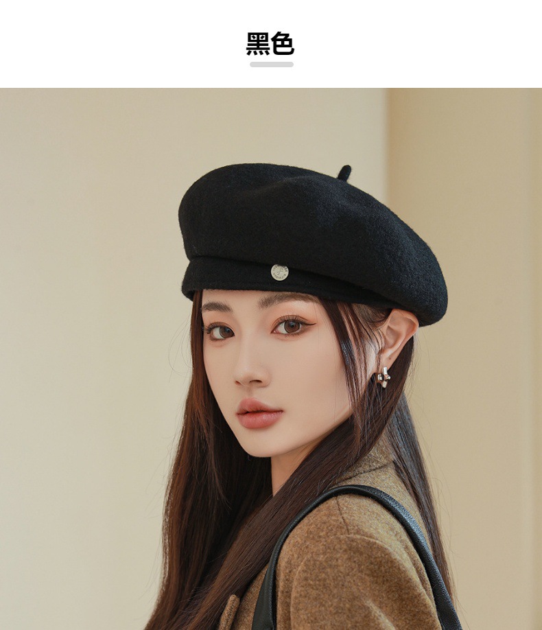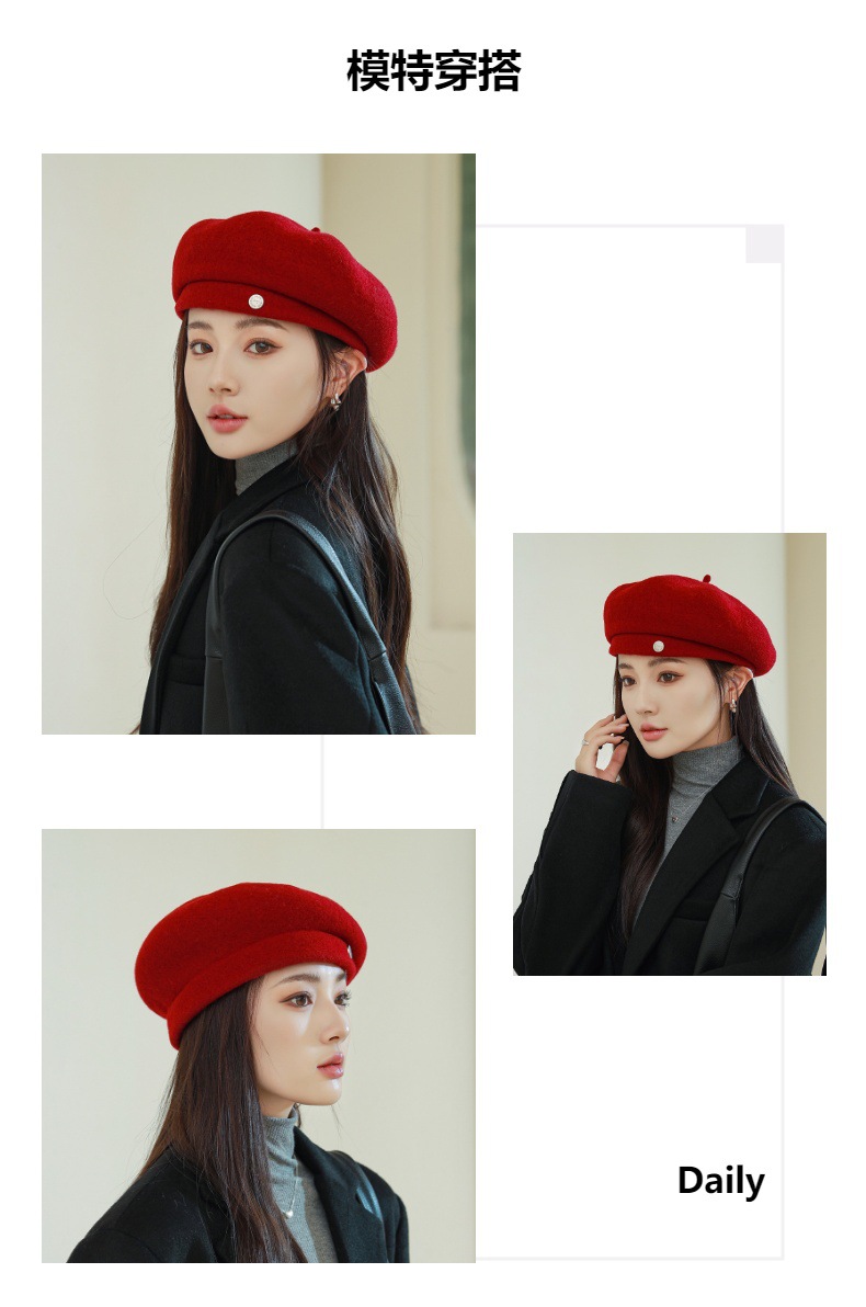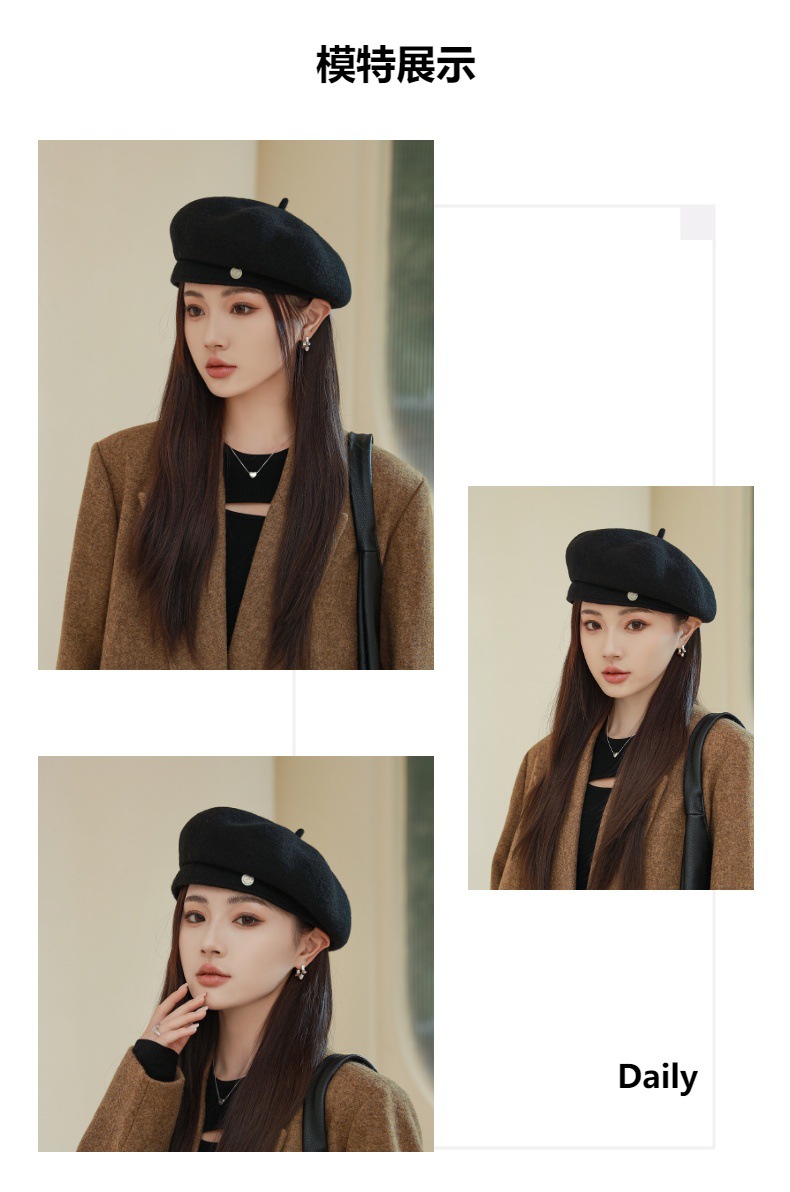 雀说 轻奢高档羊毛八角贝雷帽子显脸小画家帽M2637