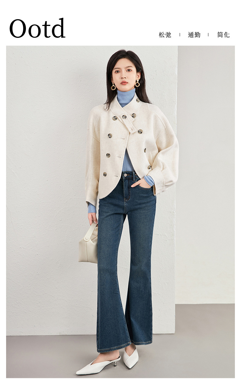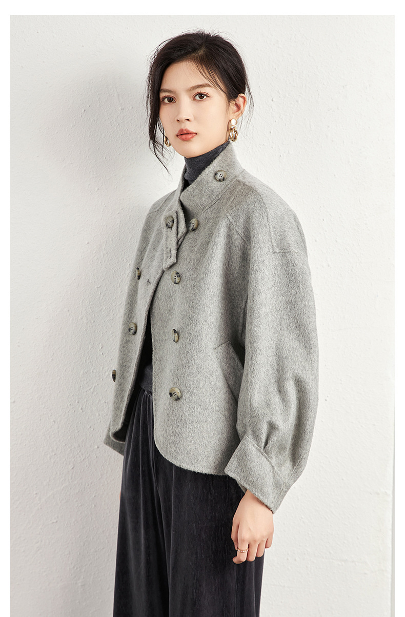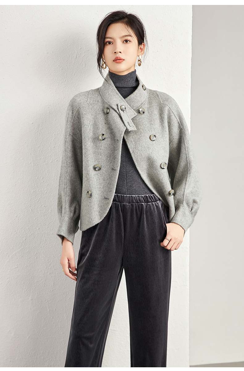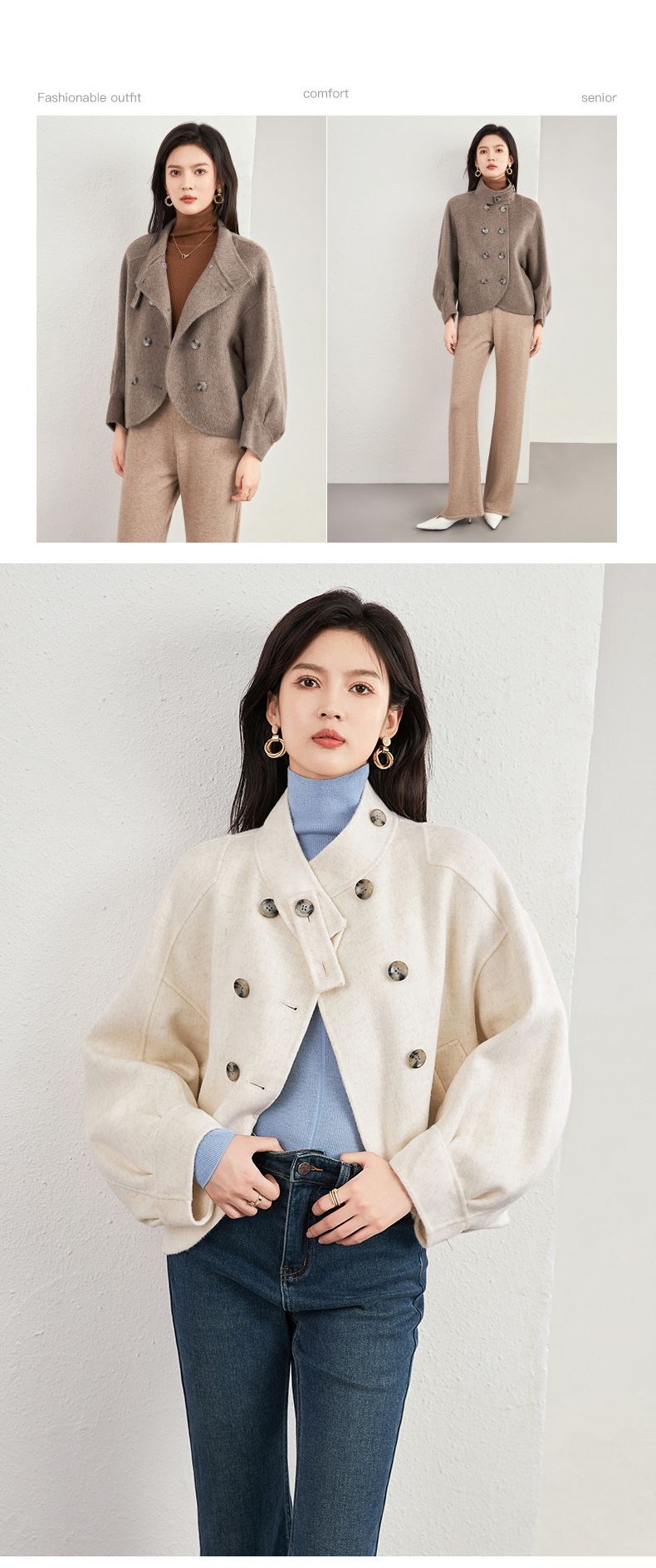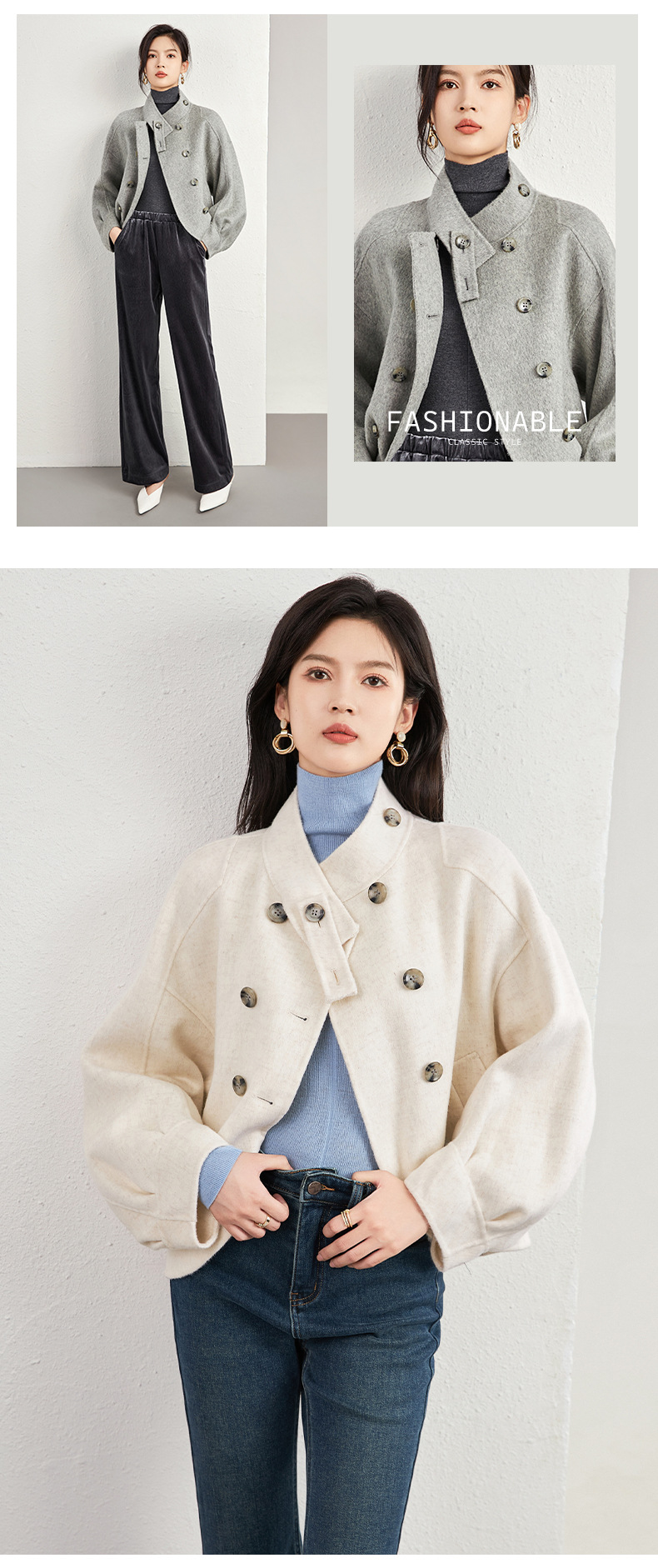 冬季棉羊毛双面呢短款大衣,立领设计感时髦美拉德外套WLZD-2323905