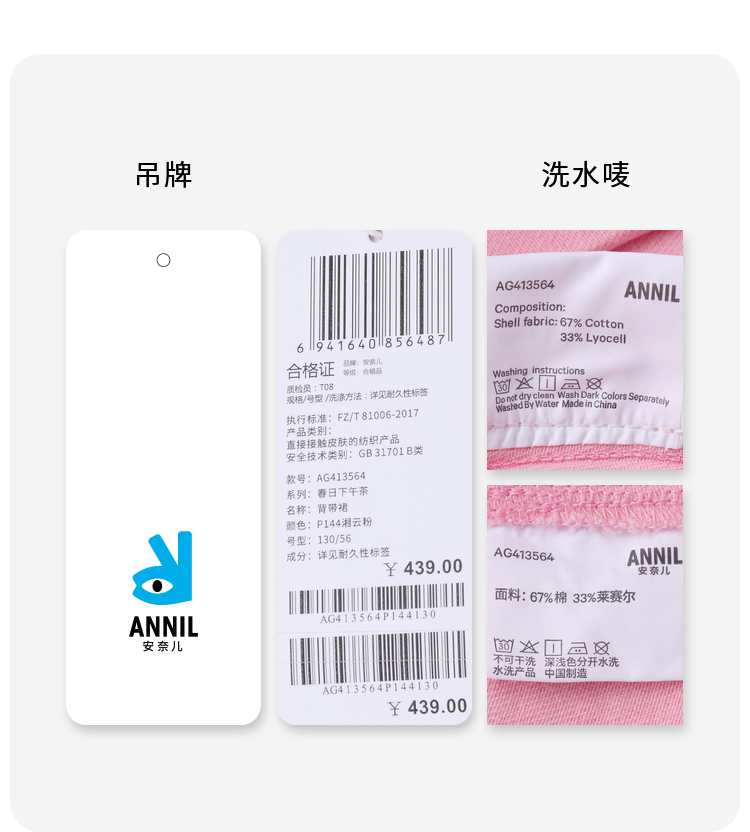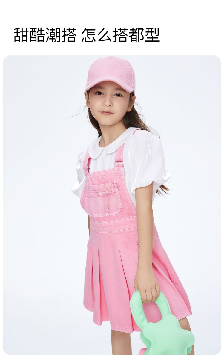 女童泡芙牛仔背带裙新款安奈儿童装实体店同款AG413564