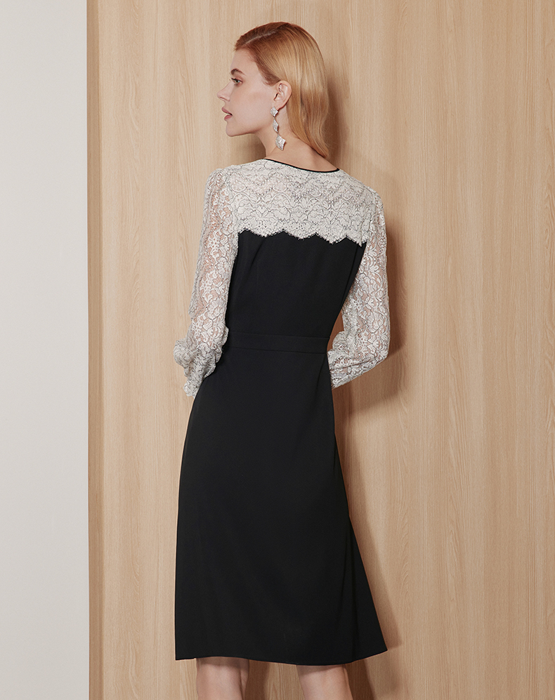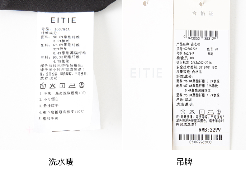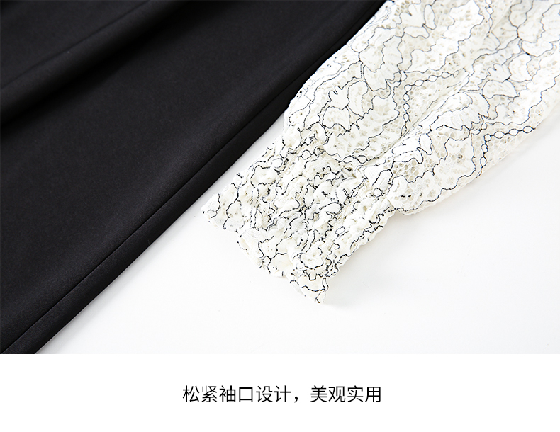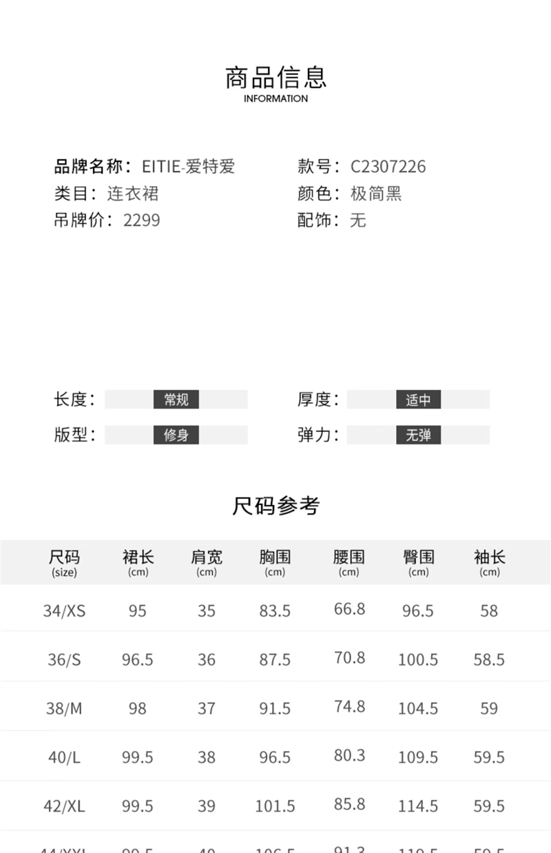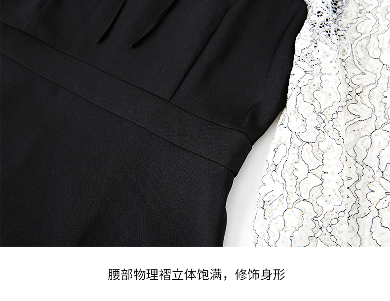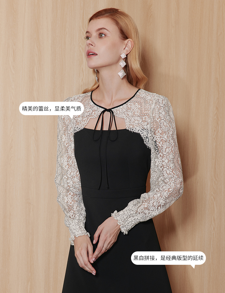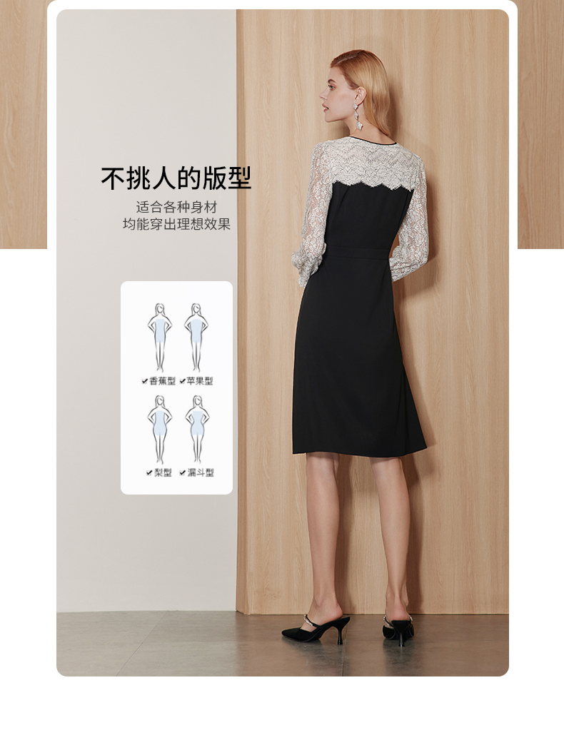 EITIE爱特爱法式蕾丝拼接假两件系带抹胸收腰黑色连衣裙秋新款C2307226