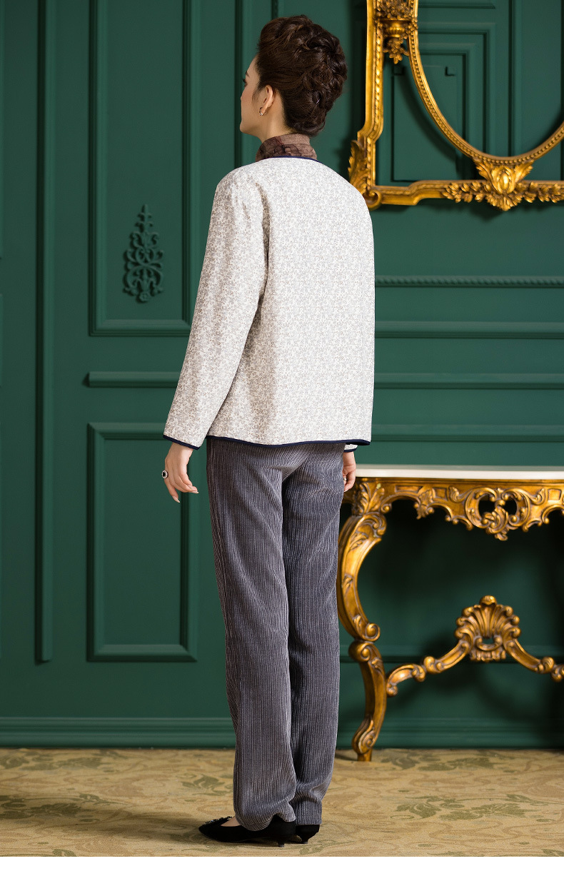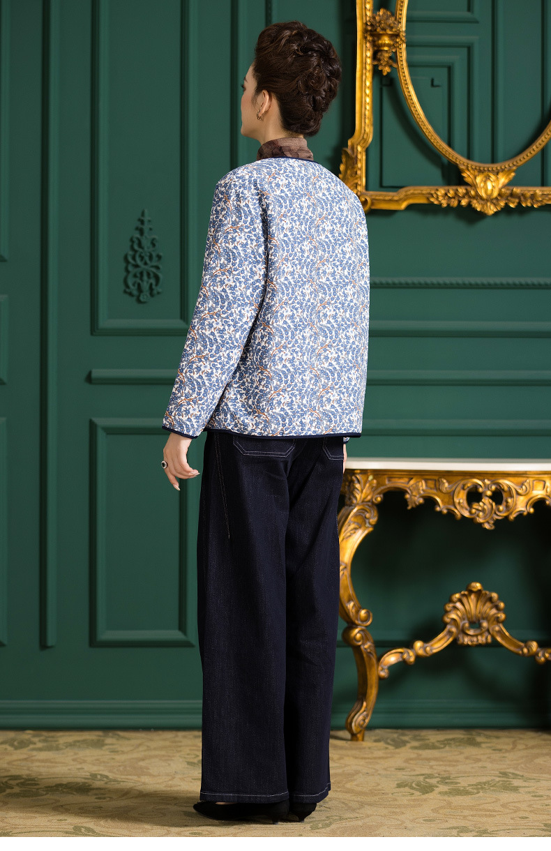 雀说桑蚕丝填充棉服女圆领妈妈装秋冬保暖外穿棉衣外套ALAYN02A 商品图3