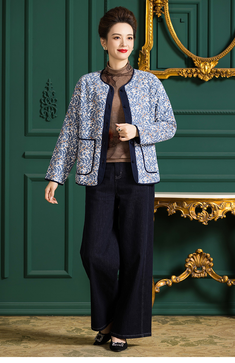 雀说桑蚕丝填充棉服女圆领妈妈装秋冬保暖外穿棉衣外套ALAYN02A 商品图0
