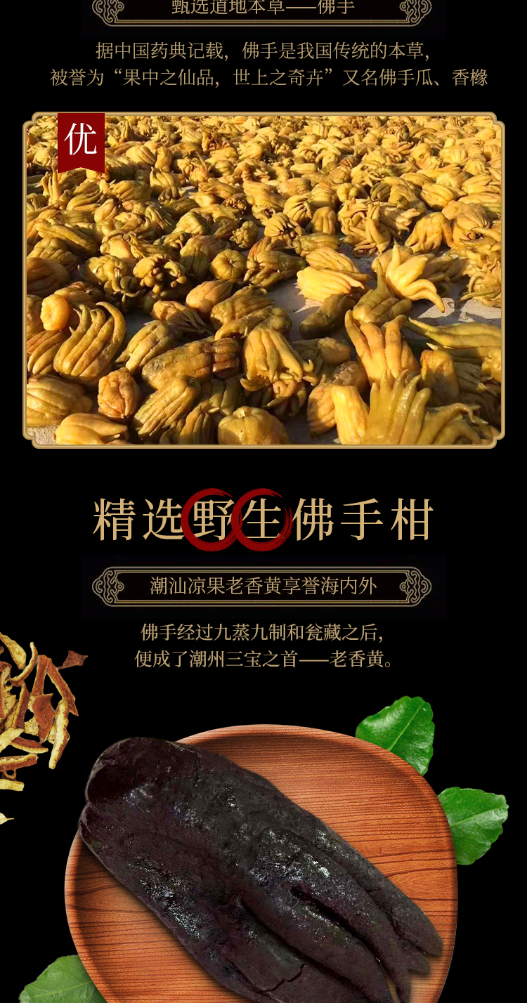 正安莊·老香黄 存放近20年,精挑潮汕深山野生老枞优质佛手柑,严遵古法,九蒸九制(因商品特殊性,此产品不支持无理由退货)