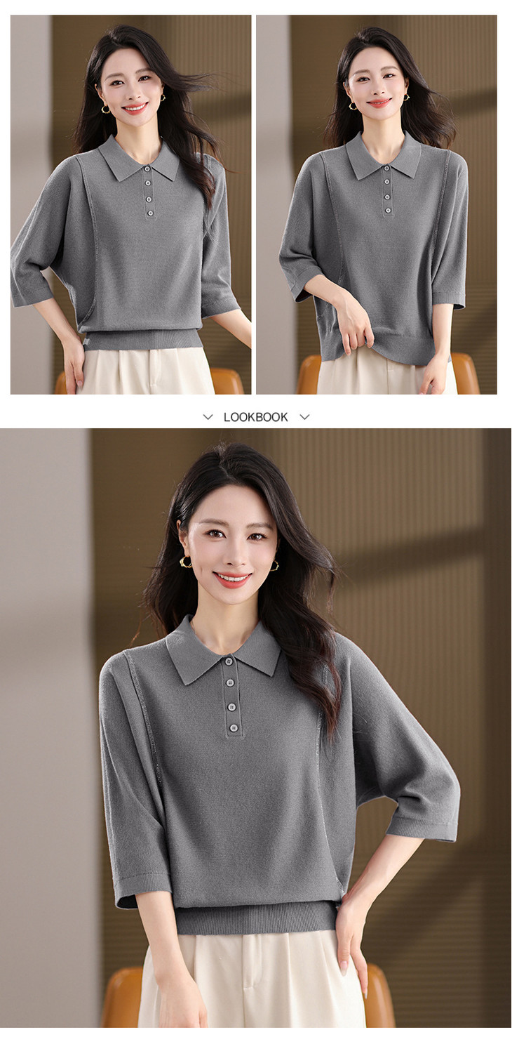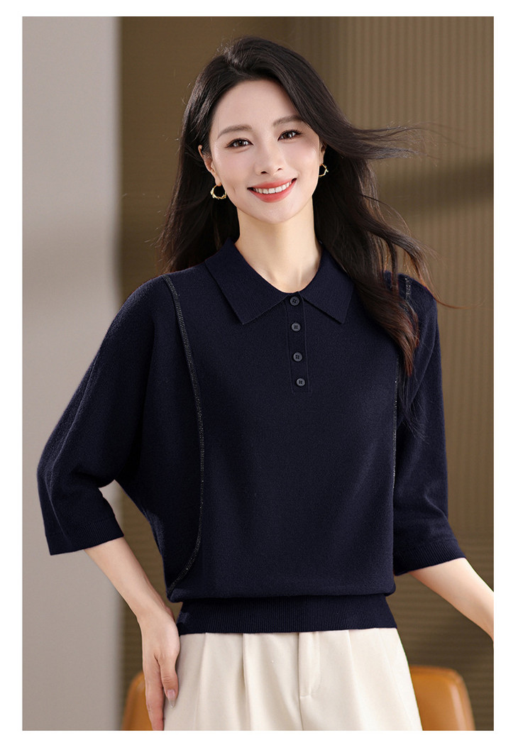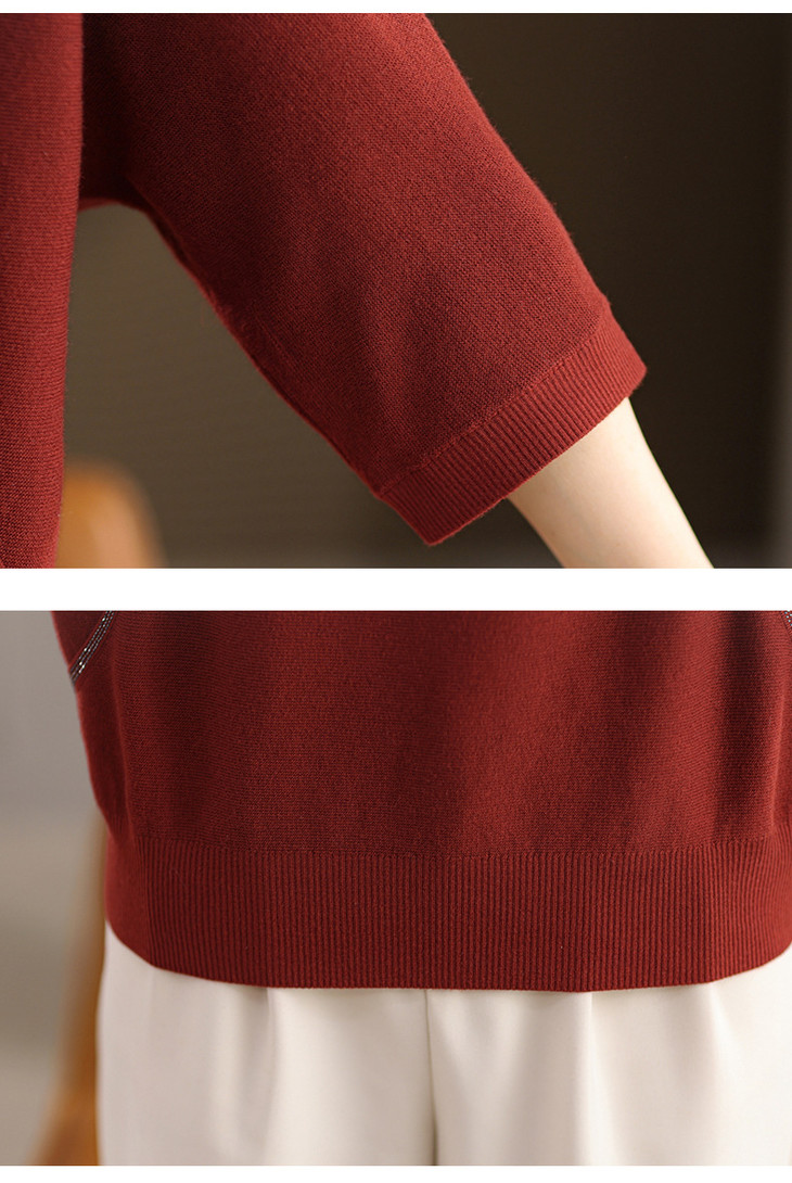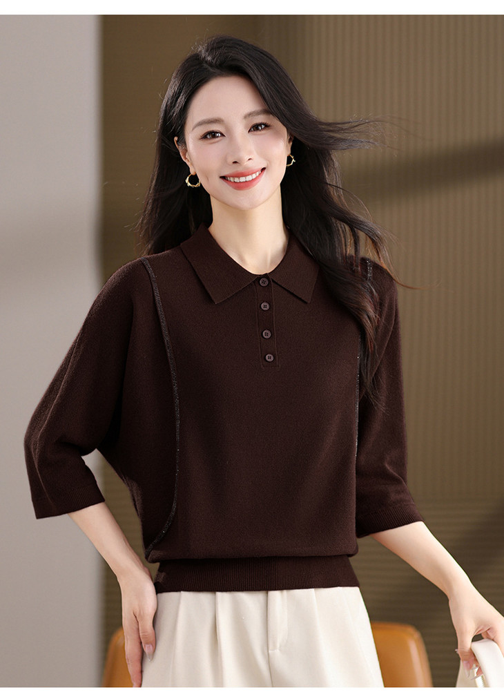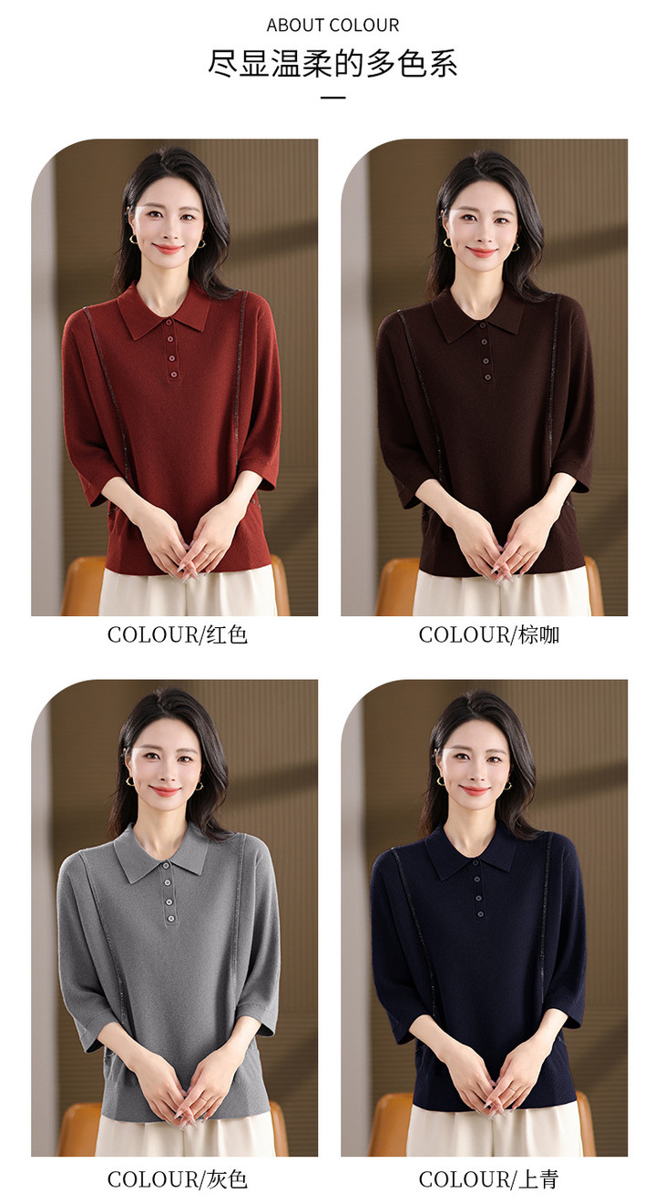 蝙蝠袖上衣高级感秋装娃娃领打底衫,轻奢减龄洋气大码毛衣女七分袖CC-tbrk-2553