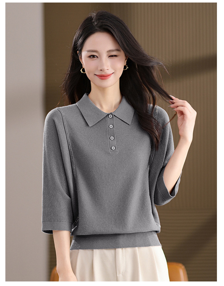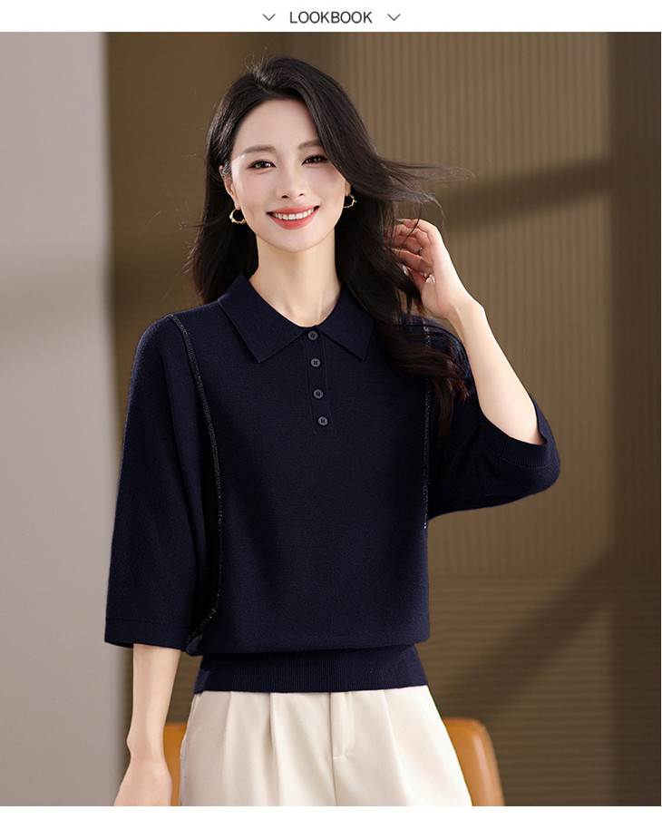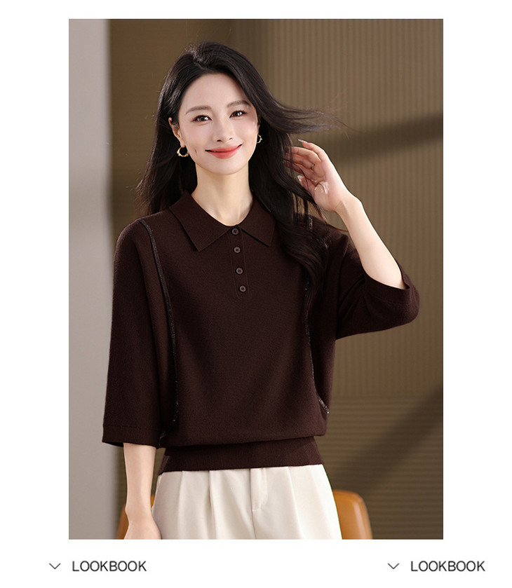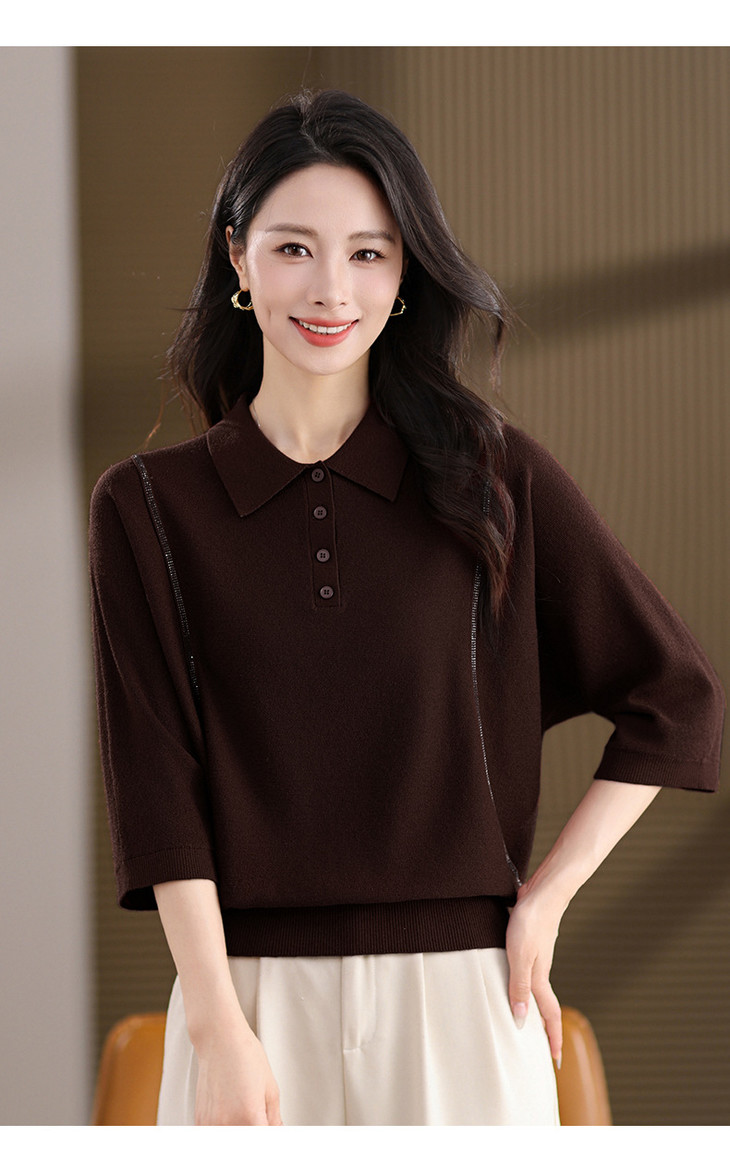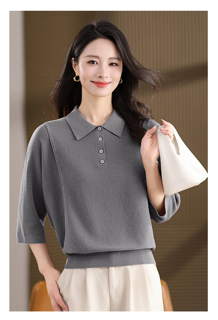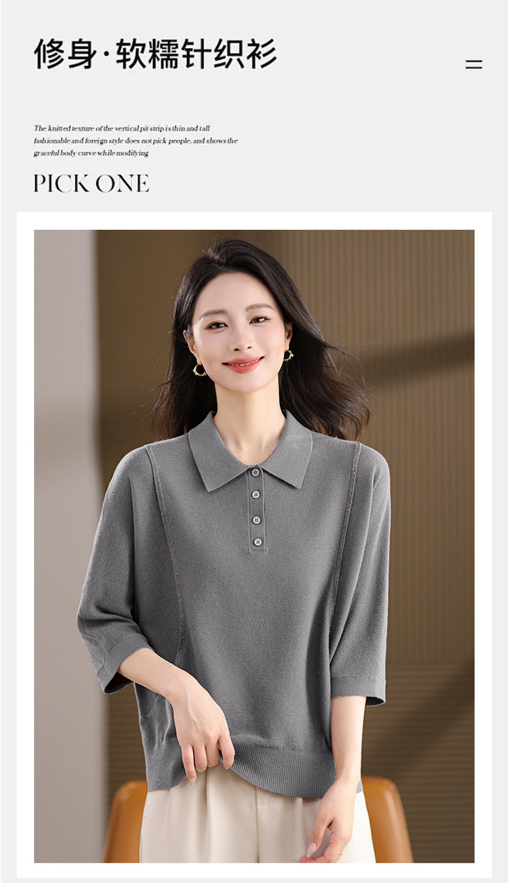 蝙蝠袖上衣高级感秋装娃娃领打底衫,轻奢减龄洋气大码毛衣女七分袖CC-tbrk-2553