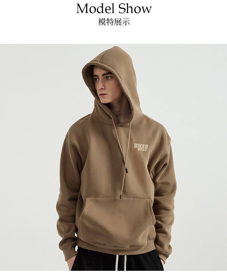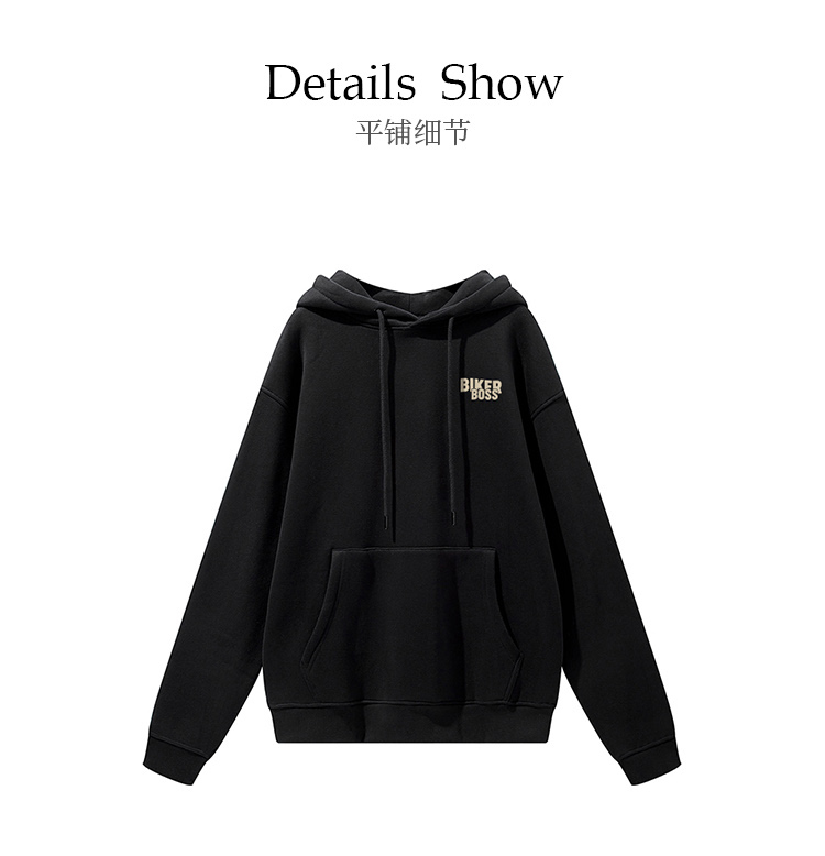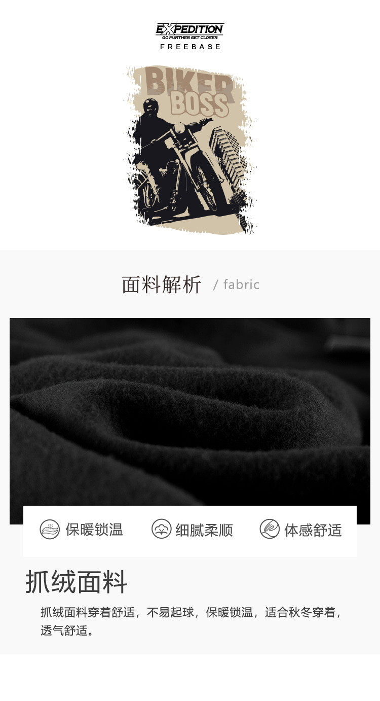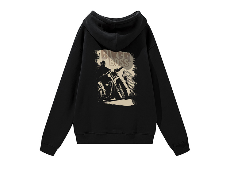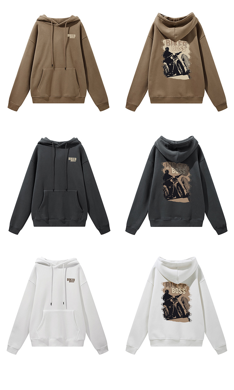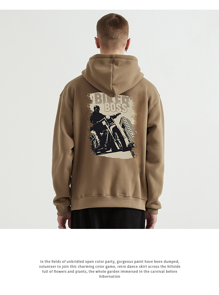 自由基地男新款废土机车风印花图案保暖卫衣抓绒落肩宽松带帽外套 NMT-2198