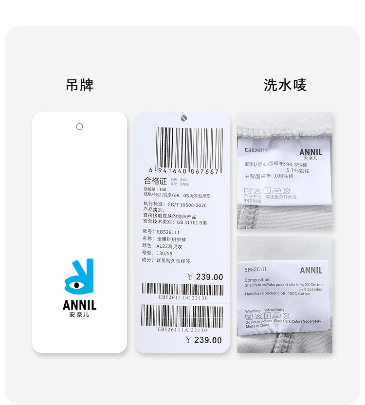男童全腰针织中裤夏季新款安奈儿童装EB526111