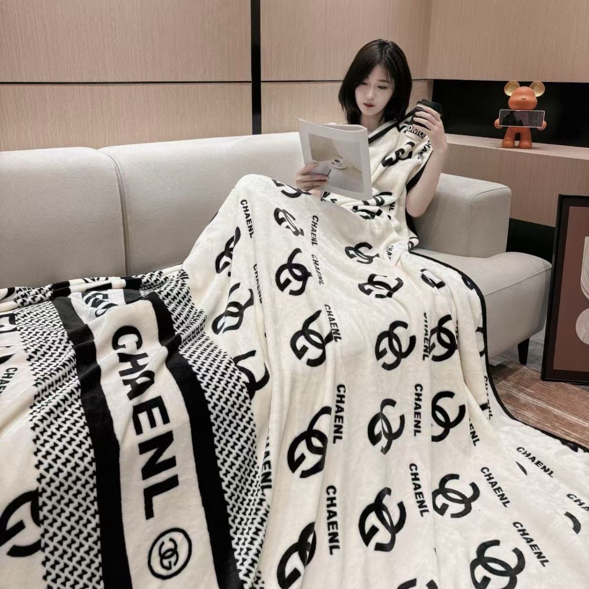 【轻奢小香风双面绒毯】送手提袋 暖暖ins风绒毯 经典高奢双面印花 居家必备单品