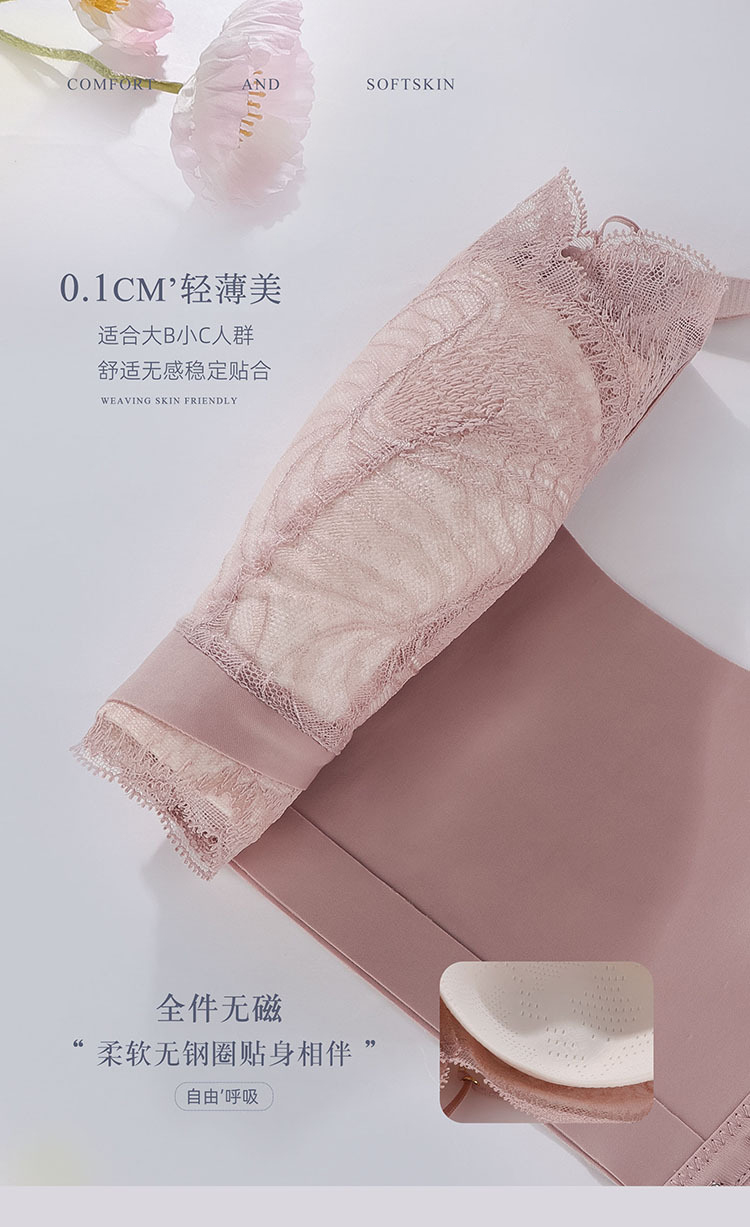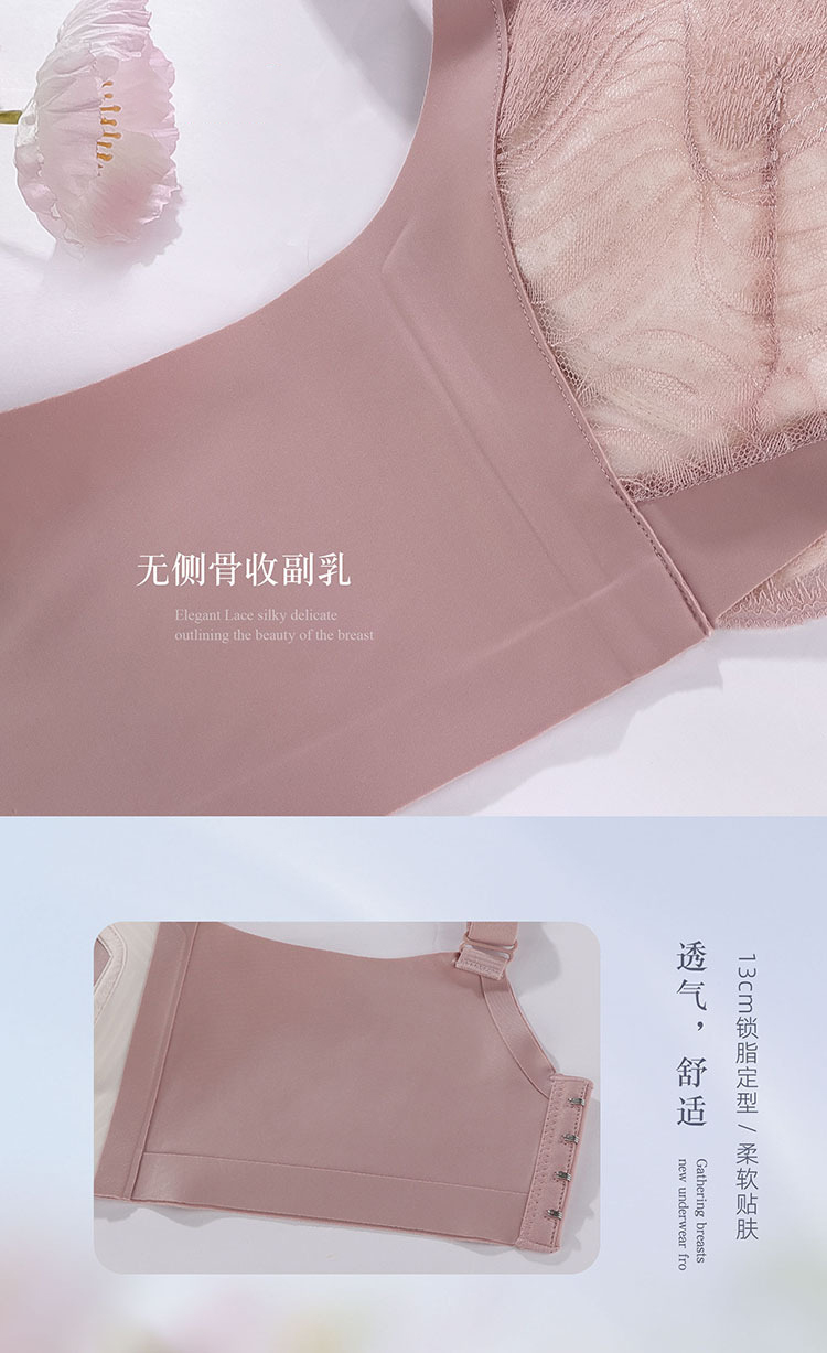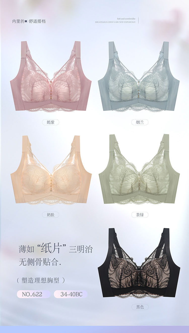 ZYQ-622 高档内衣薄款透气蕾丝性感美胸调整型纸片杯舒适收副乳无侧骨文胸(单件)