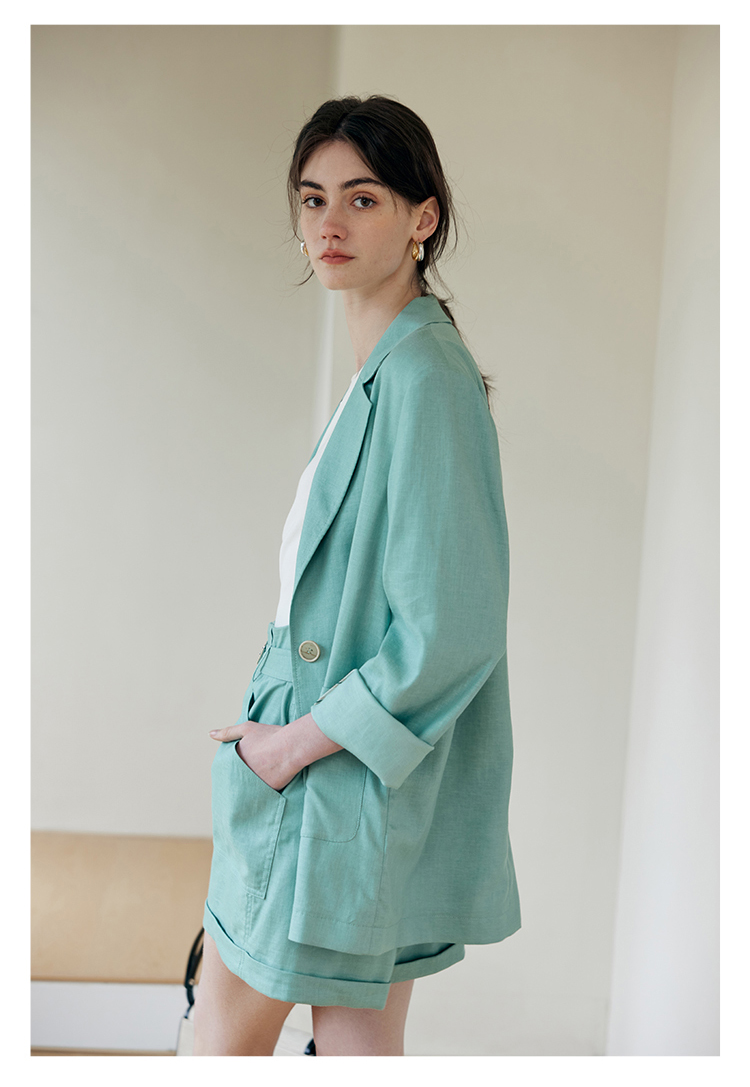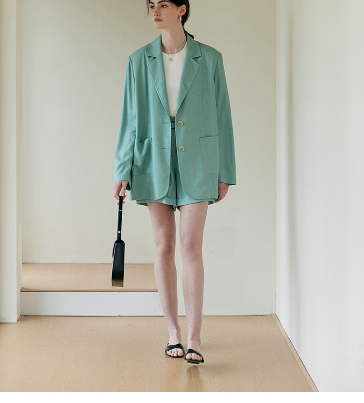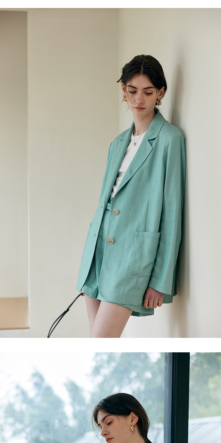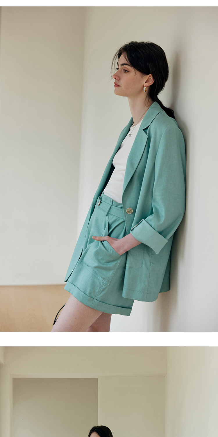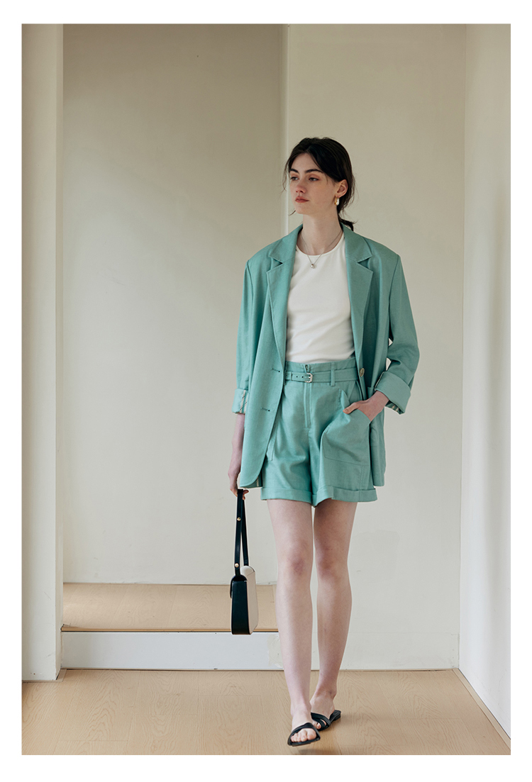 HeyDress亚麻西装外套女春夏法式宽松高级肌理感套装高腰显瘦短裤